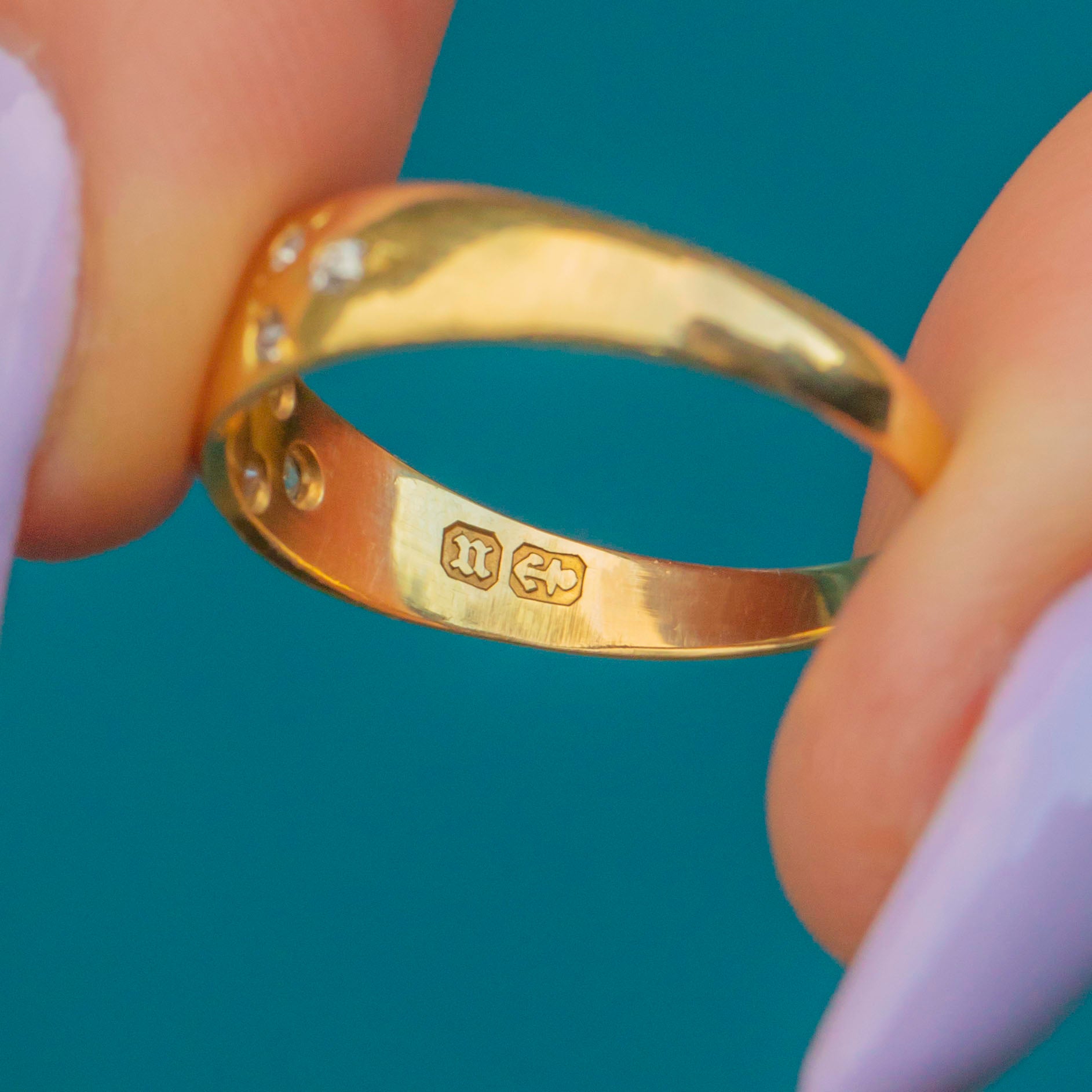 VERY GOOD-EXCELLENT. This Victorian 18ct Gold Diamond gypsy ring is in superb condition. The Diamonds are firmly set and are free from fleabites, retaining their sensational sparkle. Her luxurious 18ct Gold is gloriously glossy, with only a couple of very subtle scratches on the back of the band. There is also some evidence of resizing from the past, this is subtle, however, and does not impact the overall impression of the ring. With so much wear potential, this antique gypsy ring is set to become a staple in your collection!