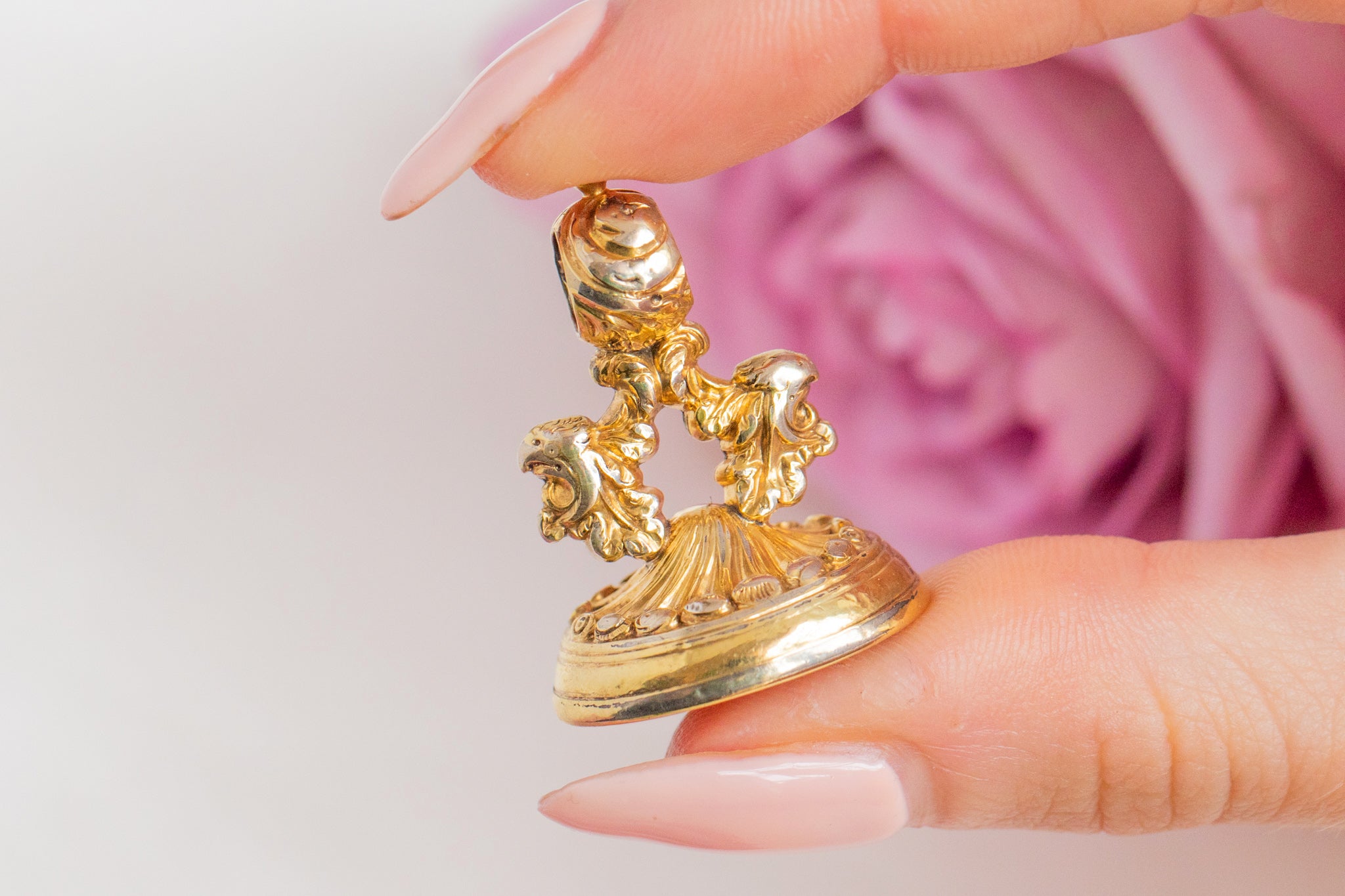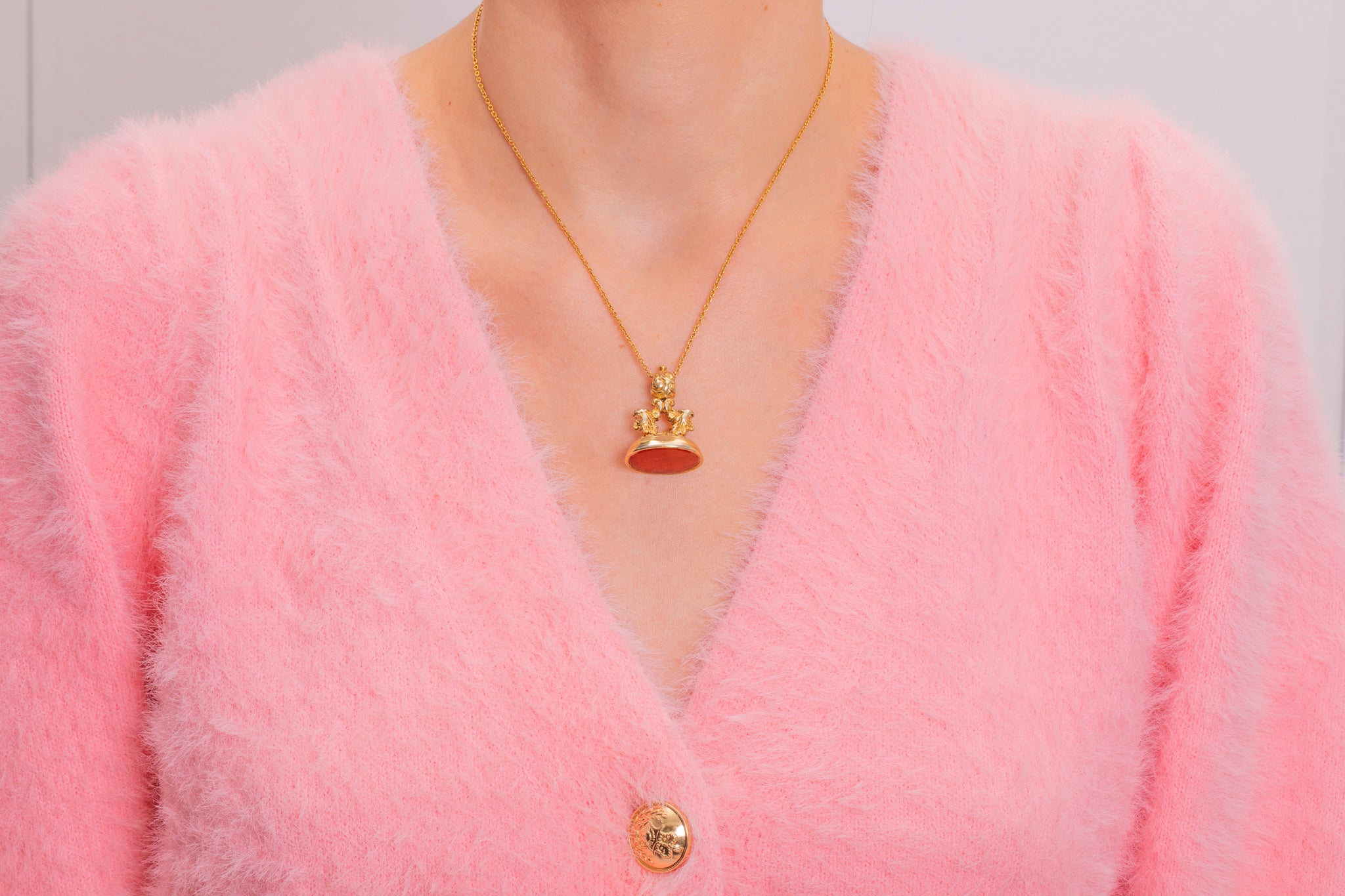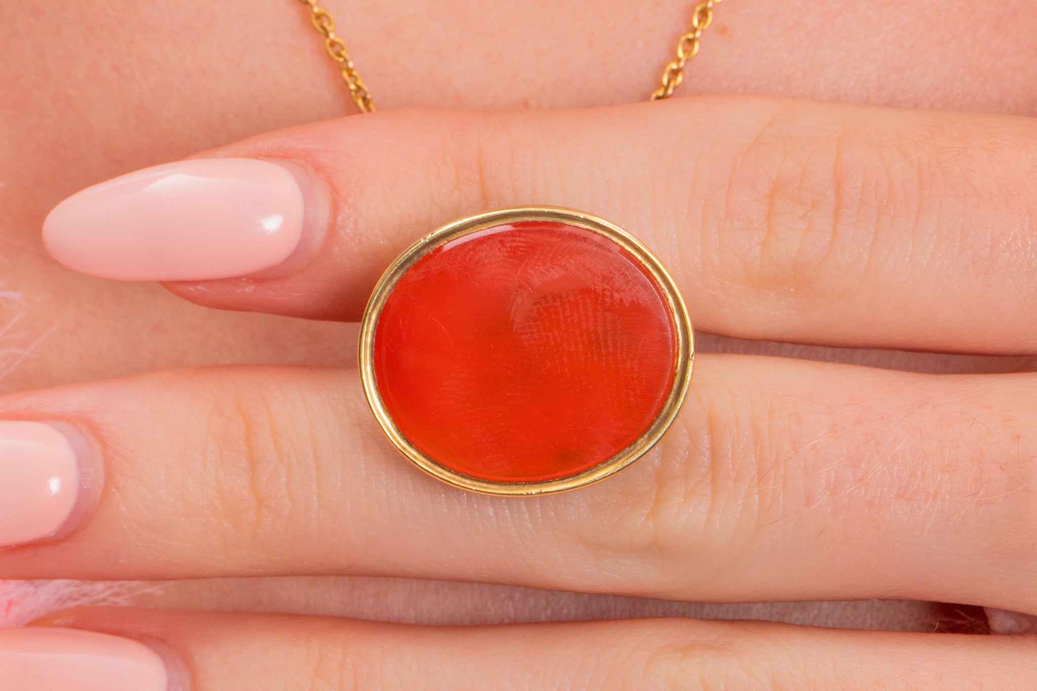 At the base of this antique Gold fob lies a smooth, burnt orange Carnelian, whose smooth surface could even be personalised with your very own intaglio.