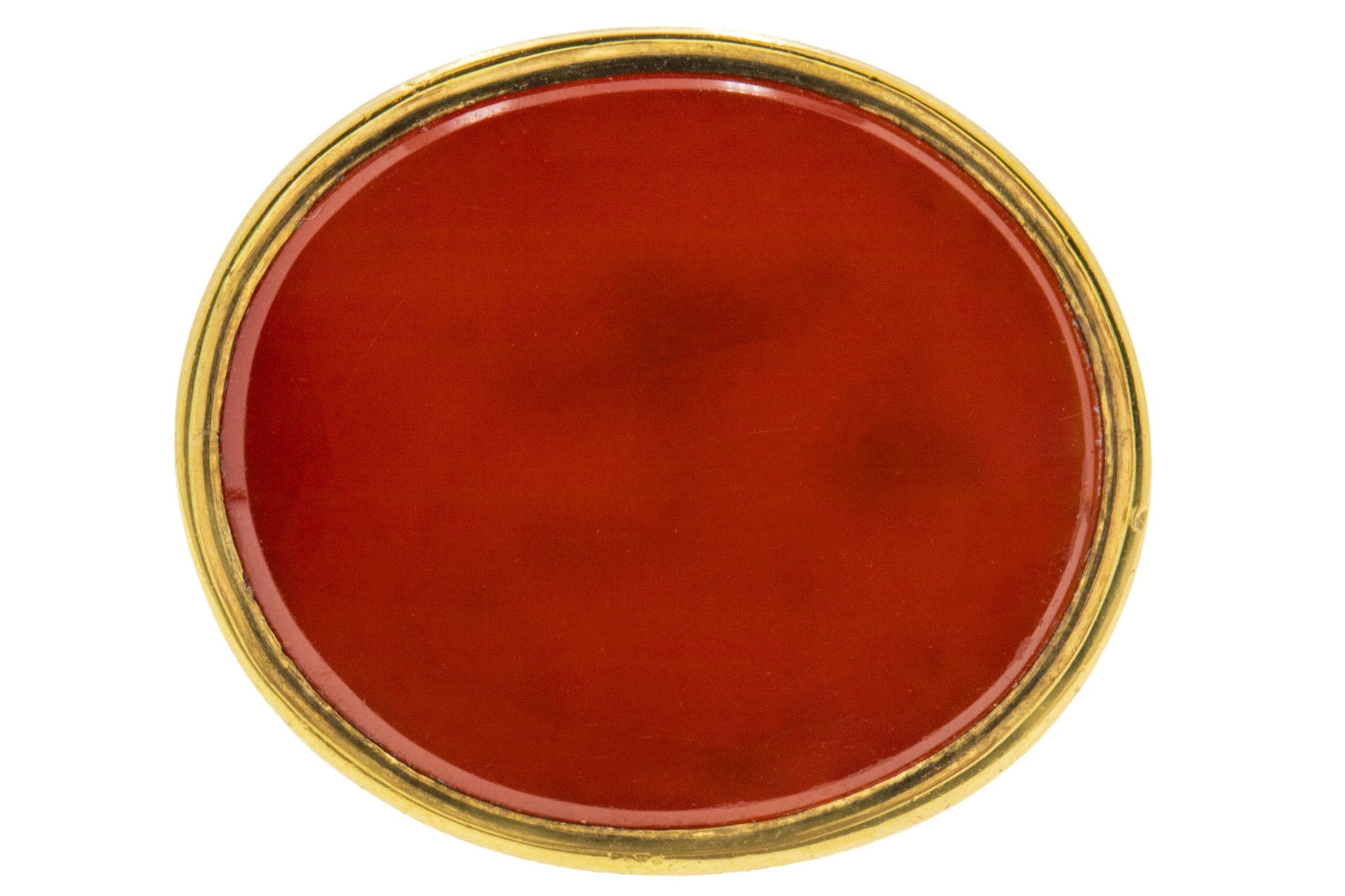 MATERIALS: Tests as 9ct Gold cased body, Carnelian.