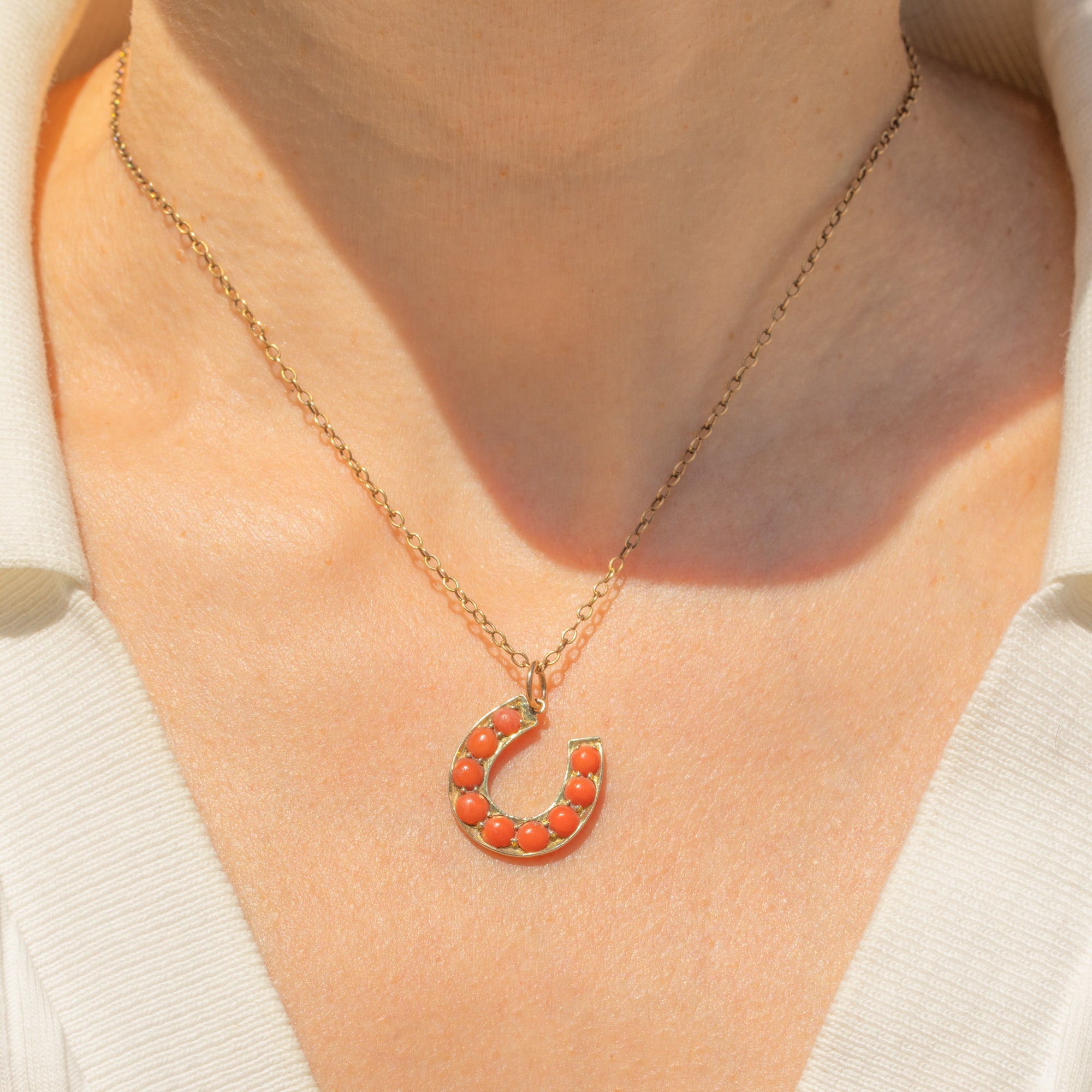 Victorian 9ct Gold Coral Horseshoe Pendant