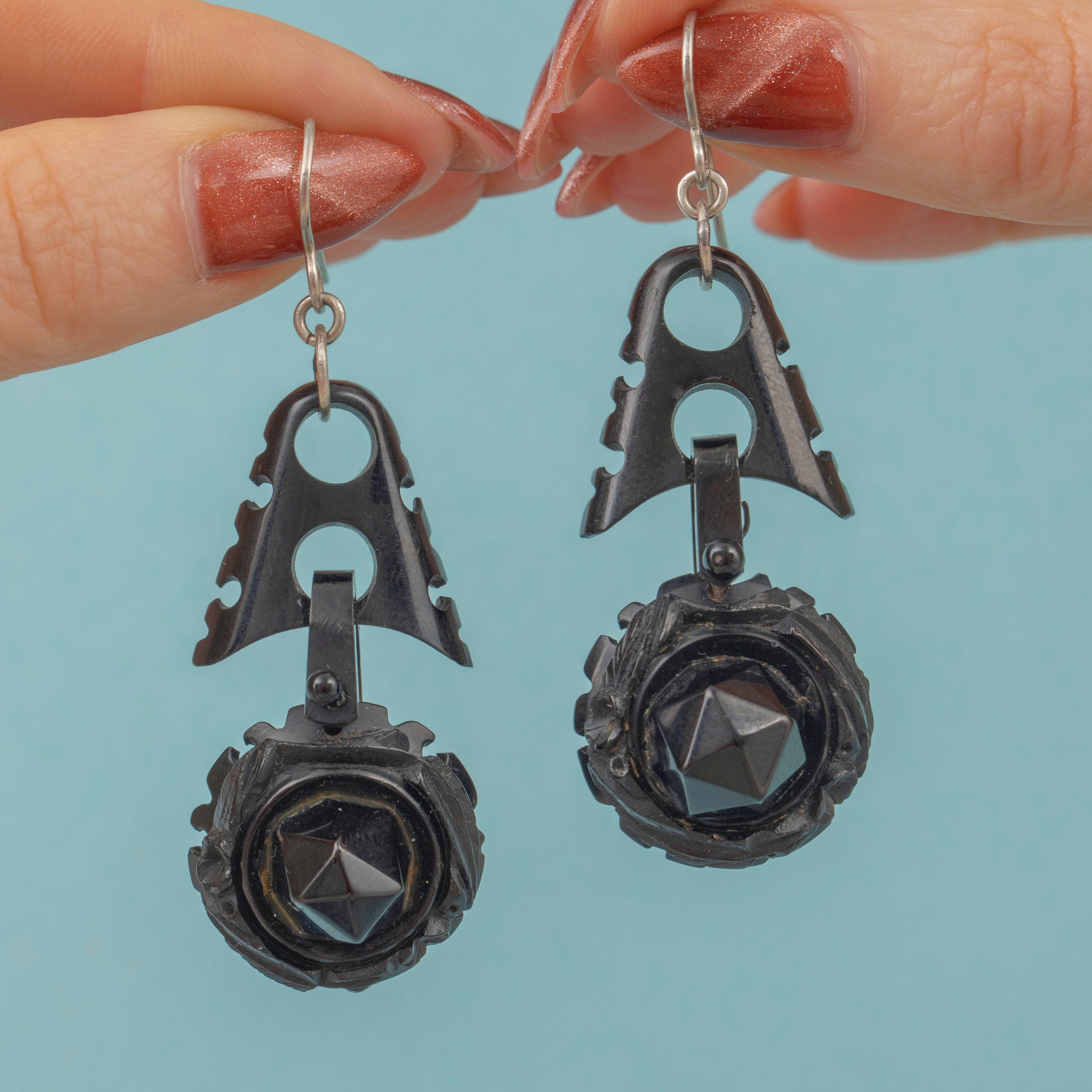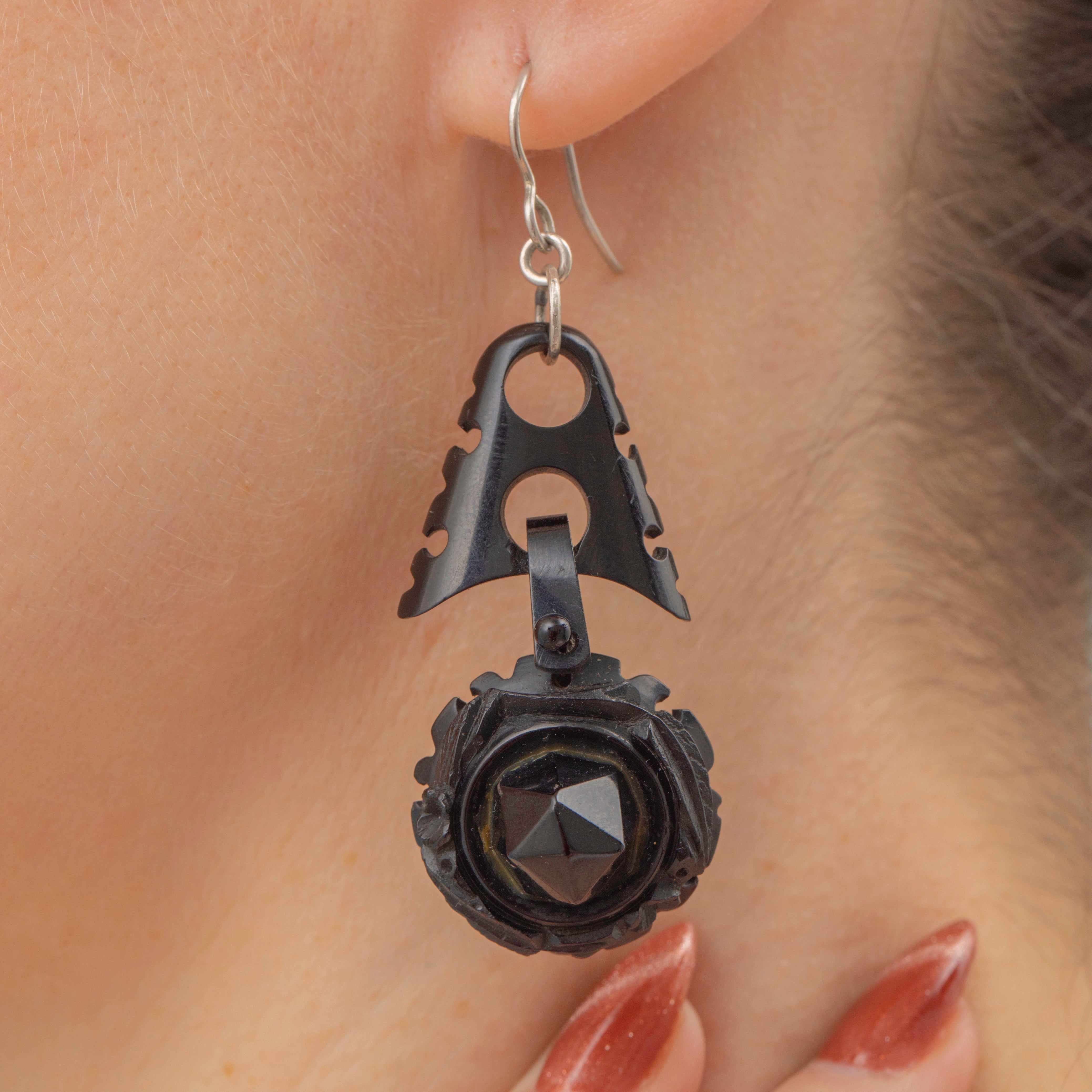 These Victorian carved Whitby Jet drop earrings are packed with character!