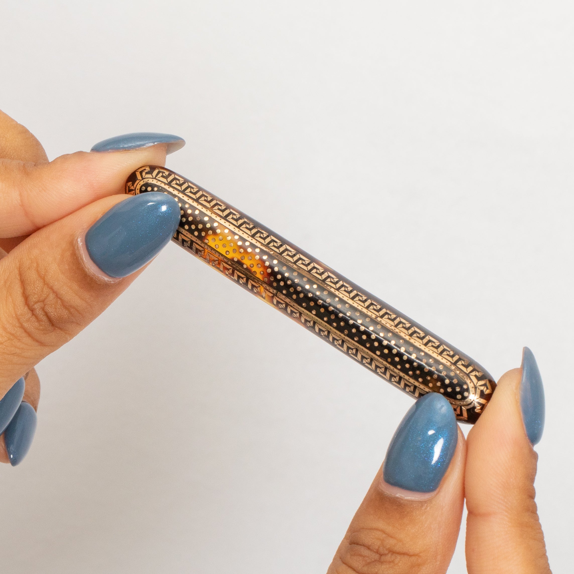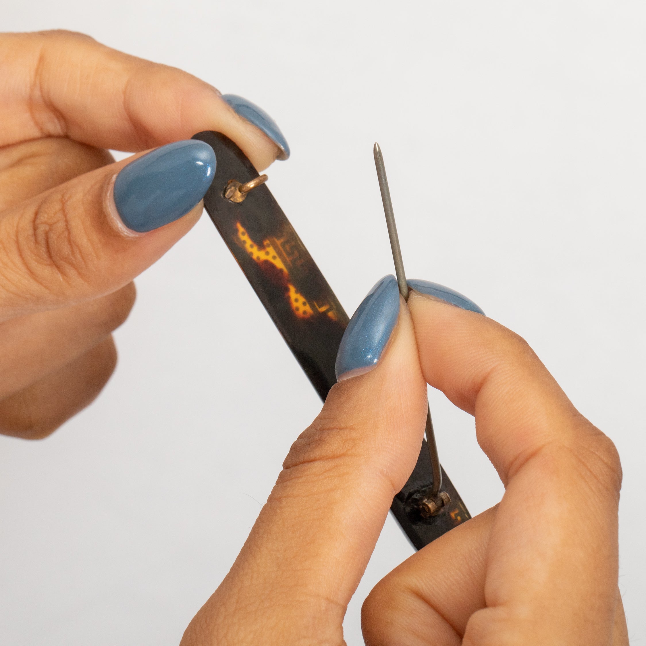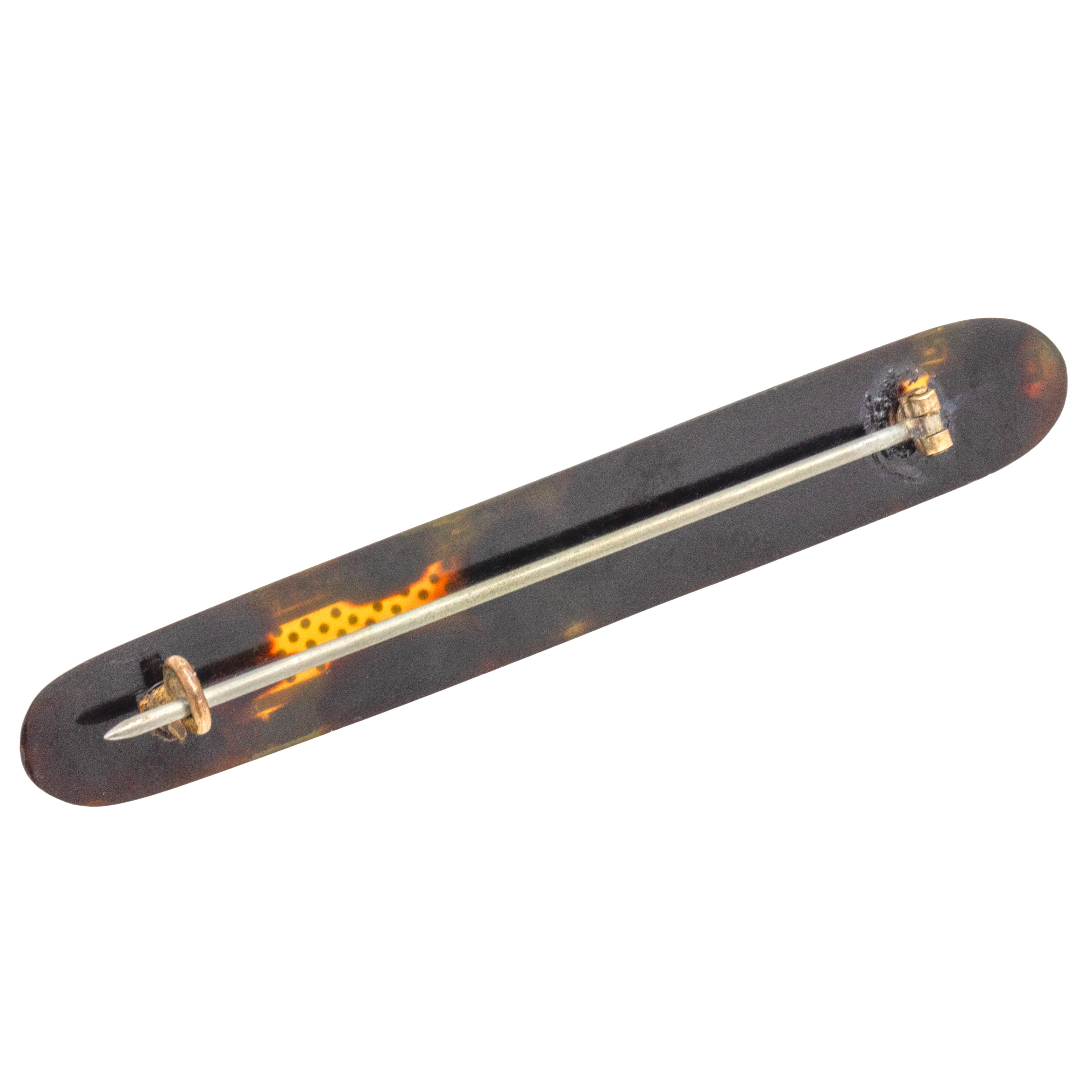 MATERIALS: Tests as Pique with Gold inlay, Metal pin and C-clasp for strength and durability.