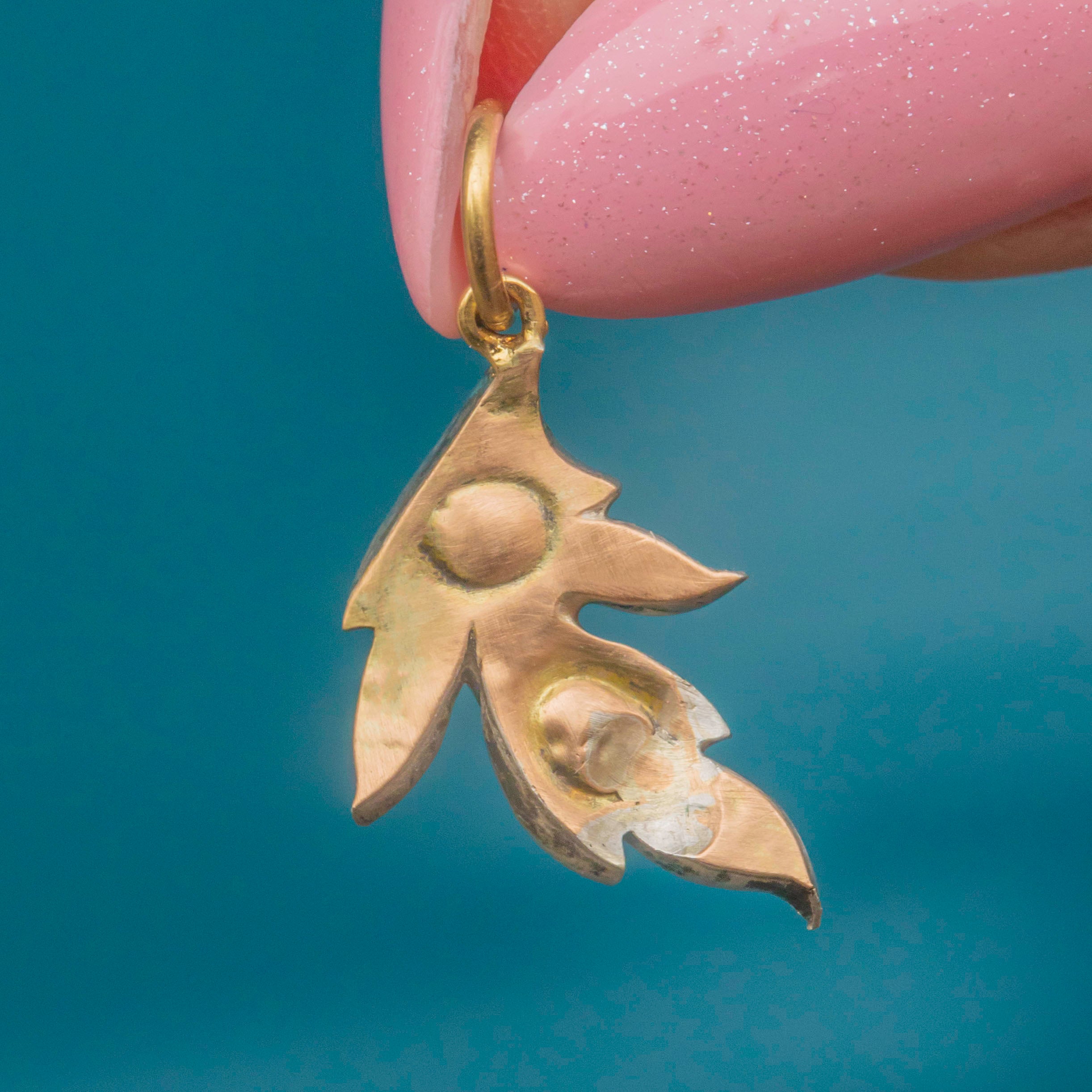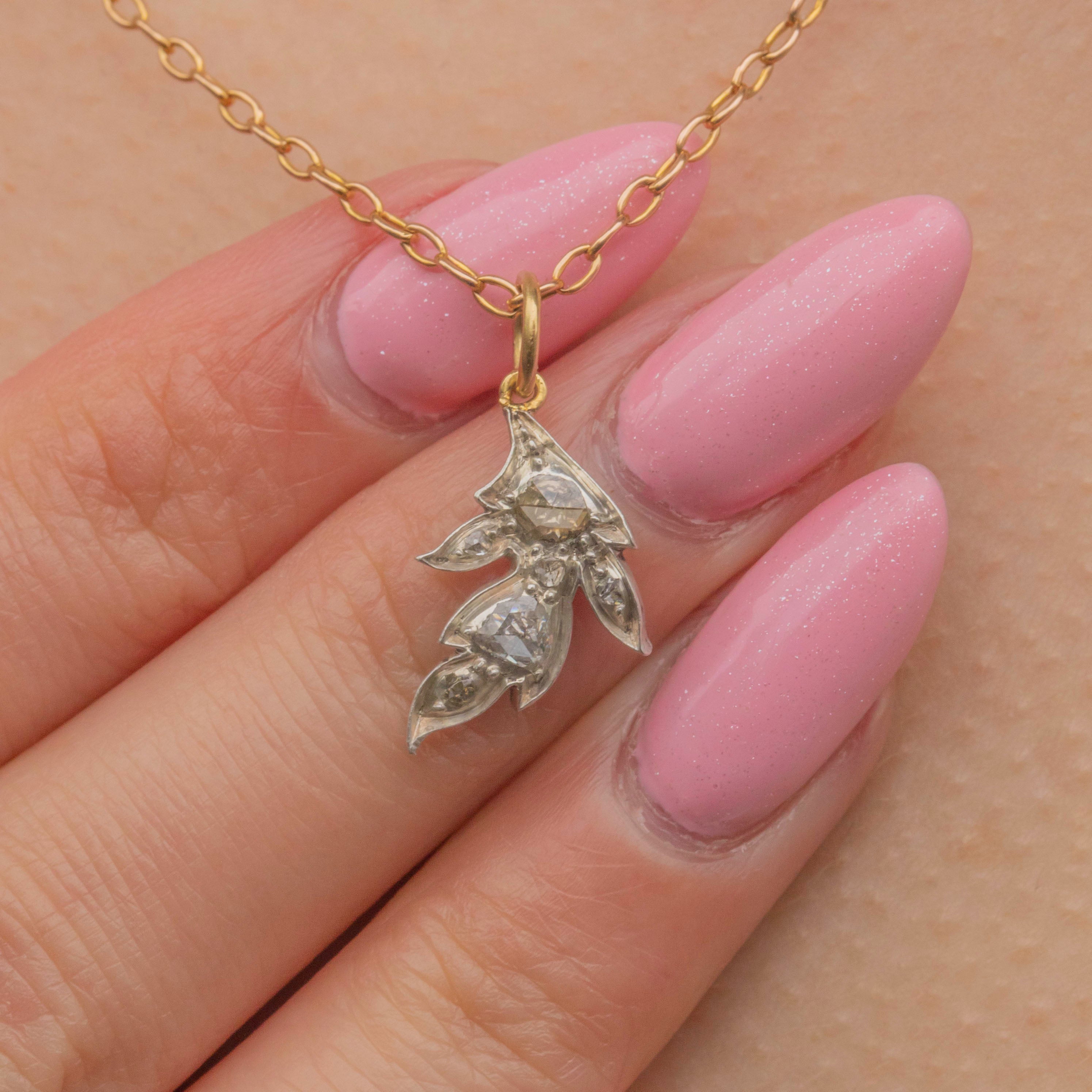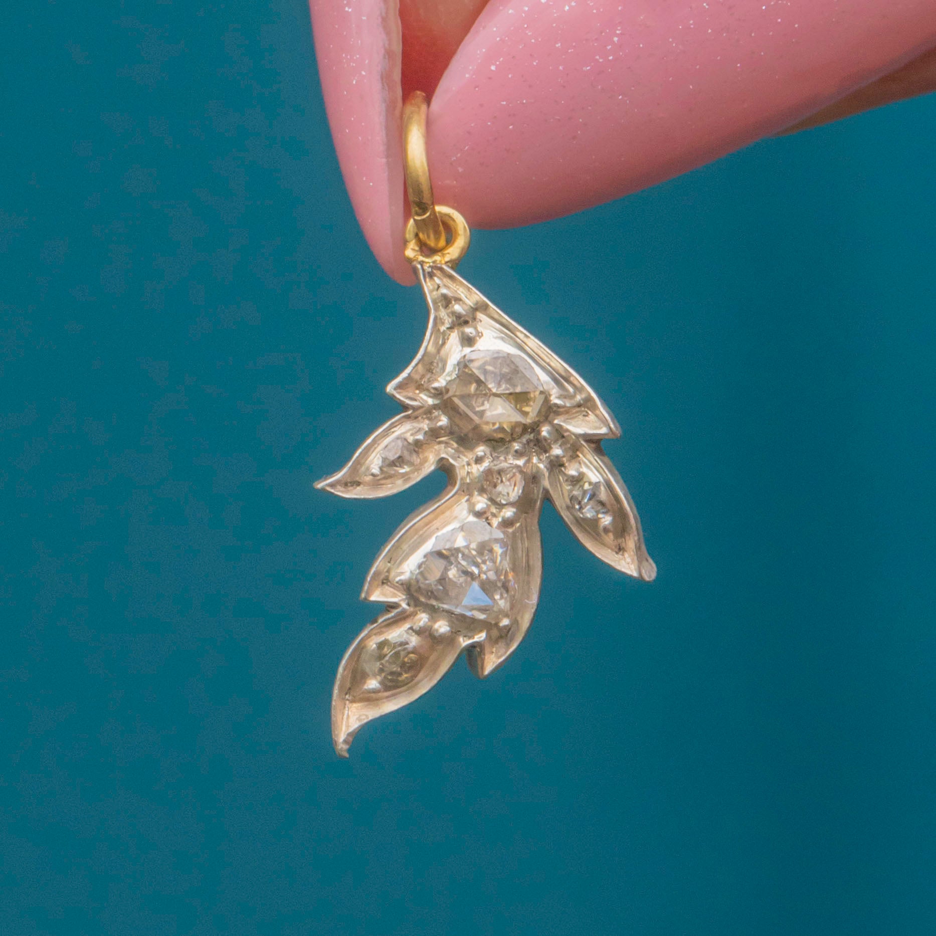 Add an elegant sparkle to your attire with this Victorian rose-cut Diamond leaf pendant!