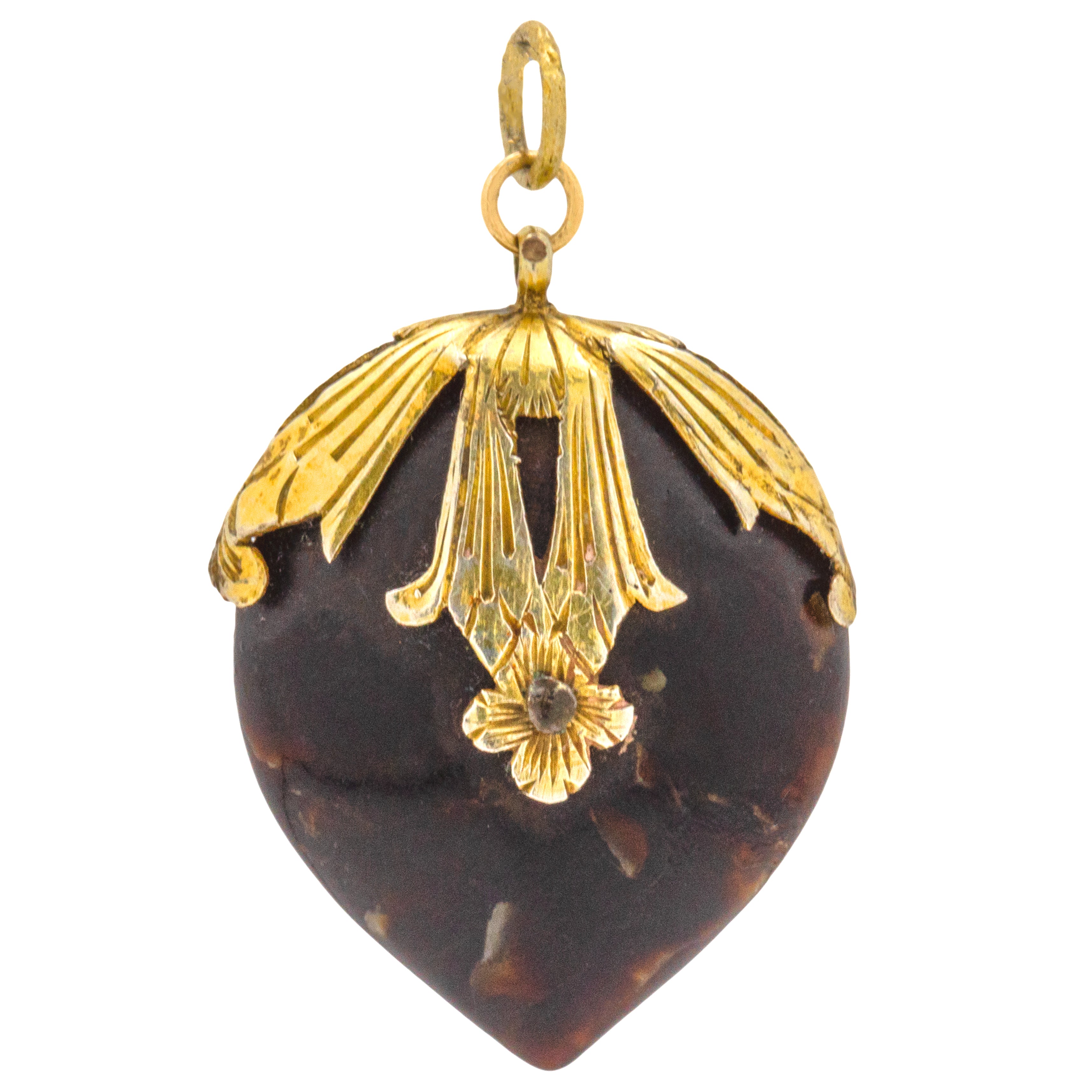 This Victorian Silver Gilt Piqué heart pendant is a striking piece! The dark chocolate tones of the skillfully hand-carved Piqué are beautifully complimented by 18ct Gold gilded floral details, creating a mesmerising pendant for your collection.