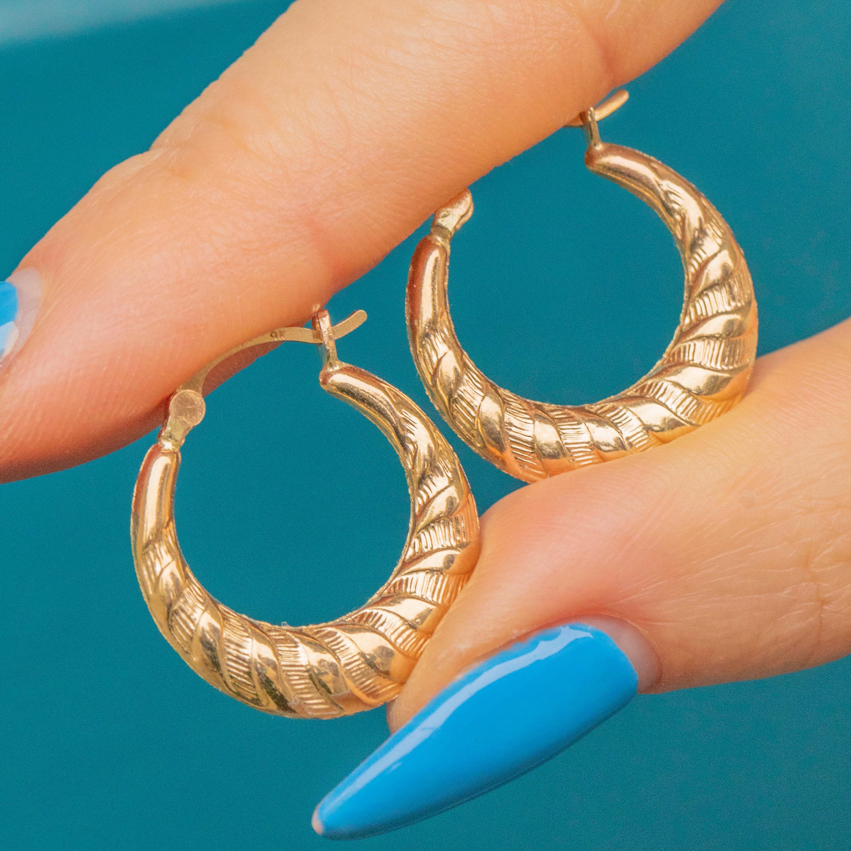 A pair of 9ct Gold croissant hoop earrings are a timeless addition to any Vintage jewellery collection. We can understand why their twisted and curvaceous form has been admired for many years, especially when the light bounces off of their buttery 9ct Gold!