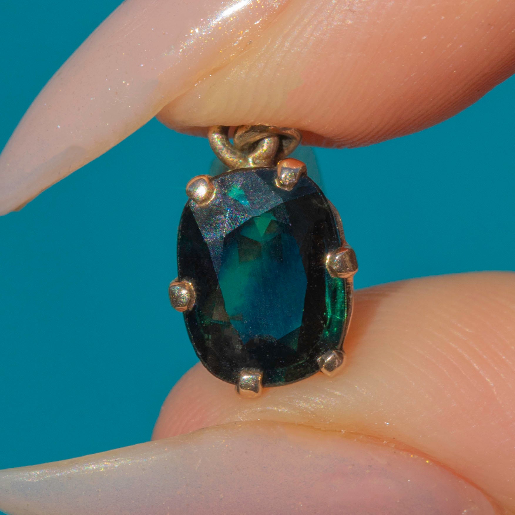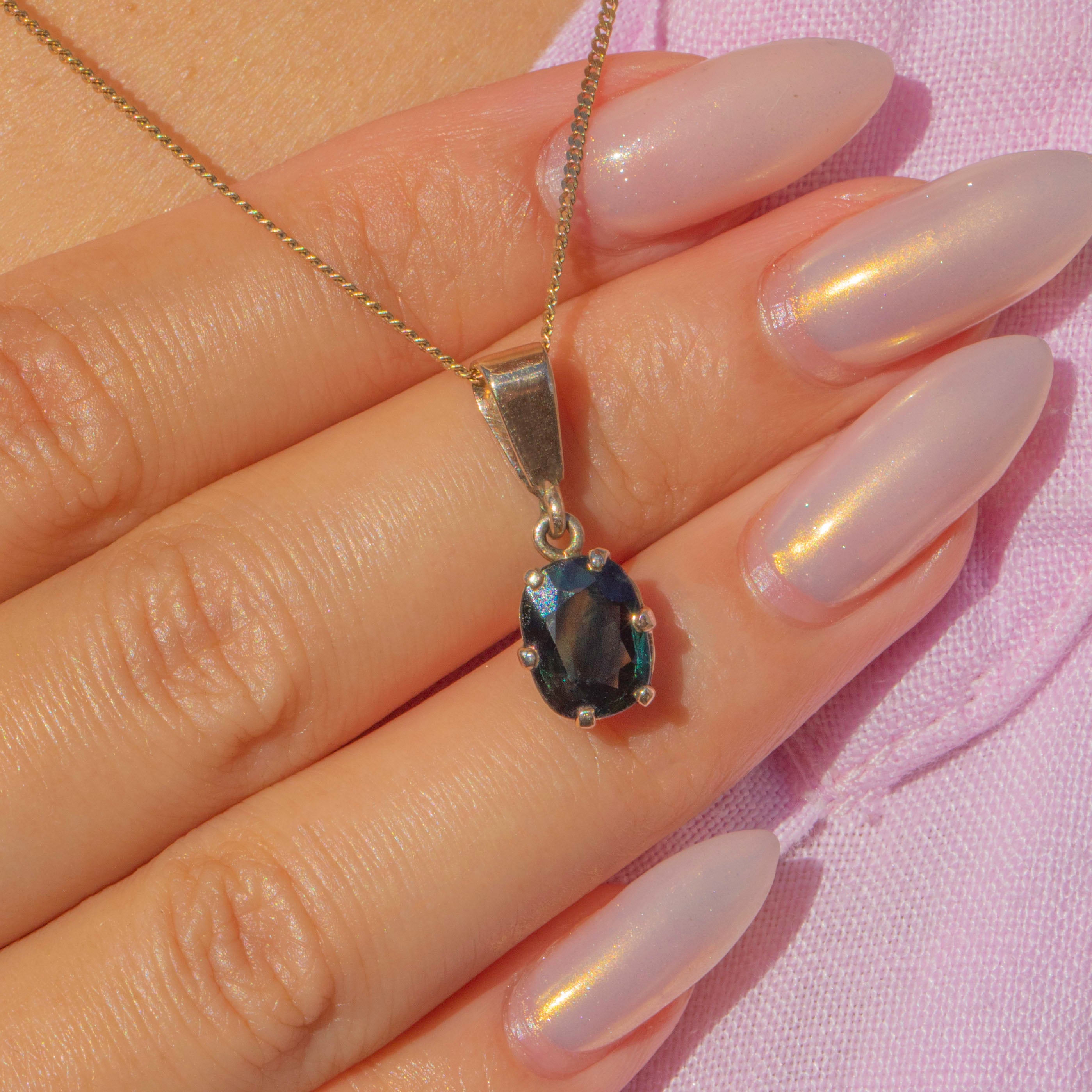 A classic Vintage pendant showcasing a 1.50ct deep blue natural Sapphire in a traditional claw setting. The gemstone shows attractive natural colour zoning, a hallmark of earth-mined Sapphires, and sits beneath a simple 9ct Gold bale for easy everyday wear.