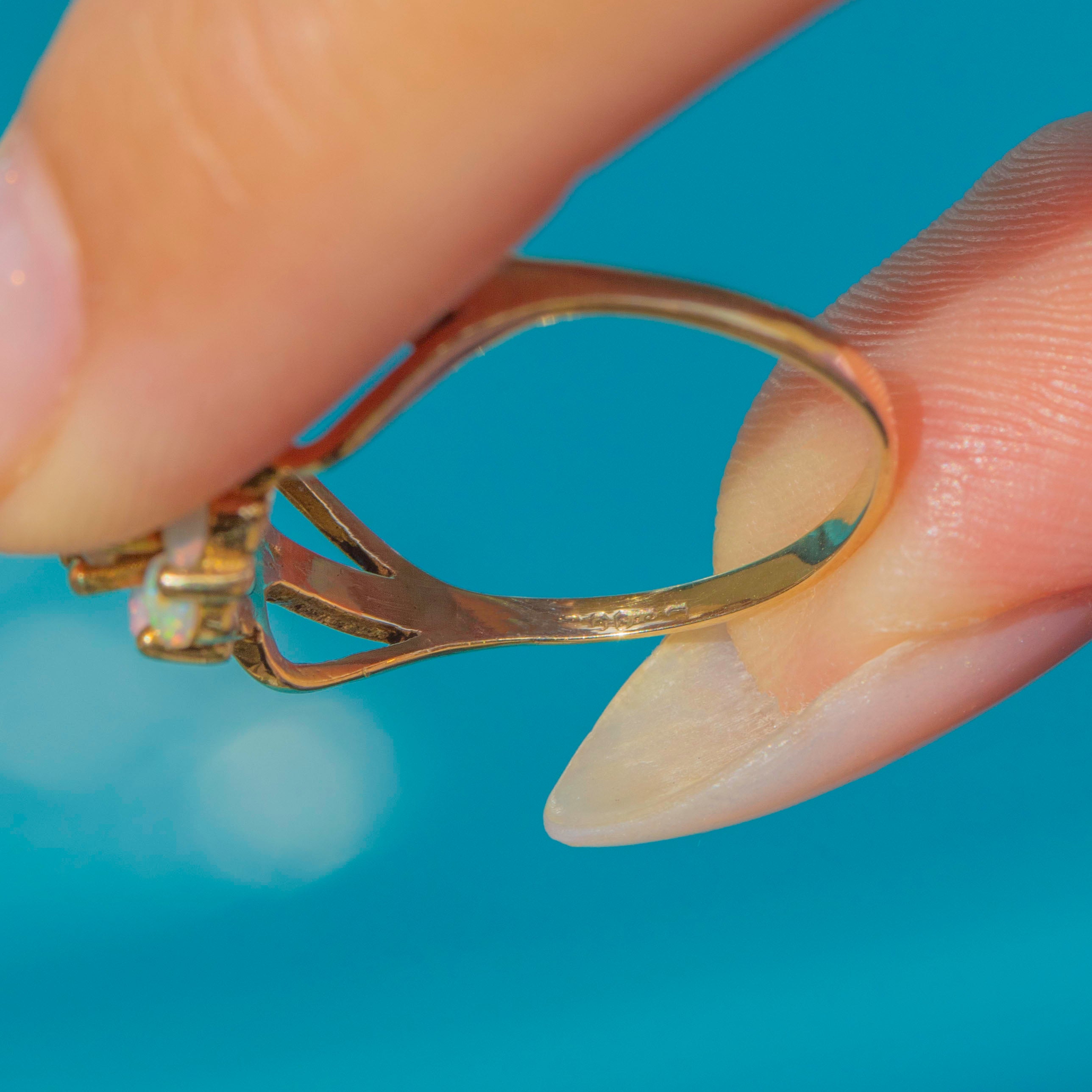 A lovely everyday ring for those who adore the soft iridescence of Opal, this piece has a delicate yet eye-catching presence and is full of 1990s charm.