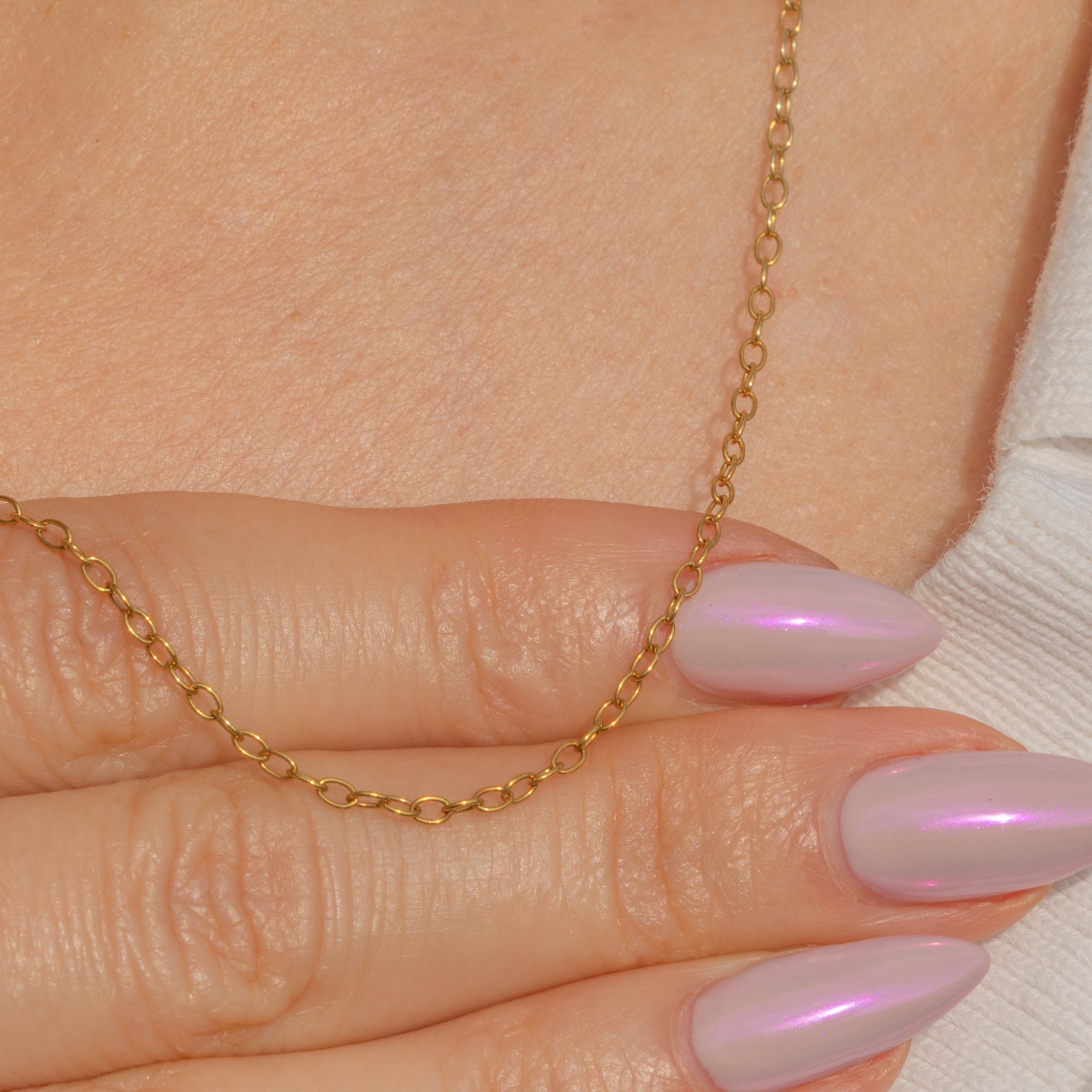 Ideal for showcasing a favourite charm or locket, this sleek vintage staple layers beautifully with other chains and adds an elegant golden glow to any neckline.