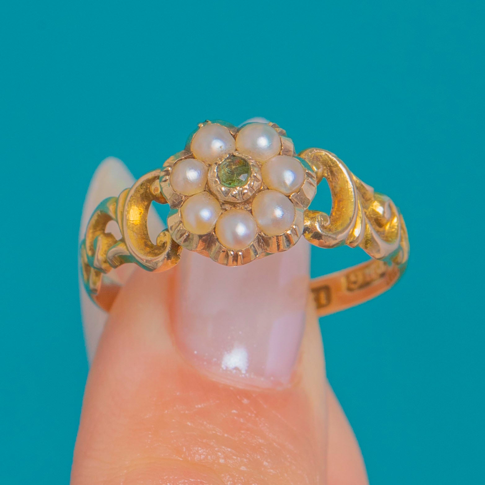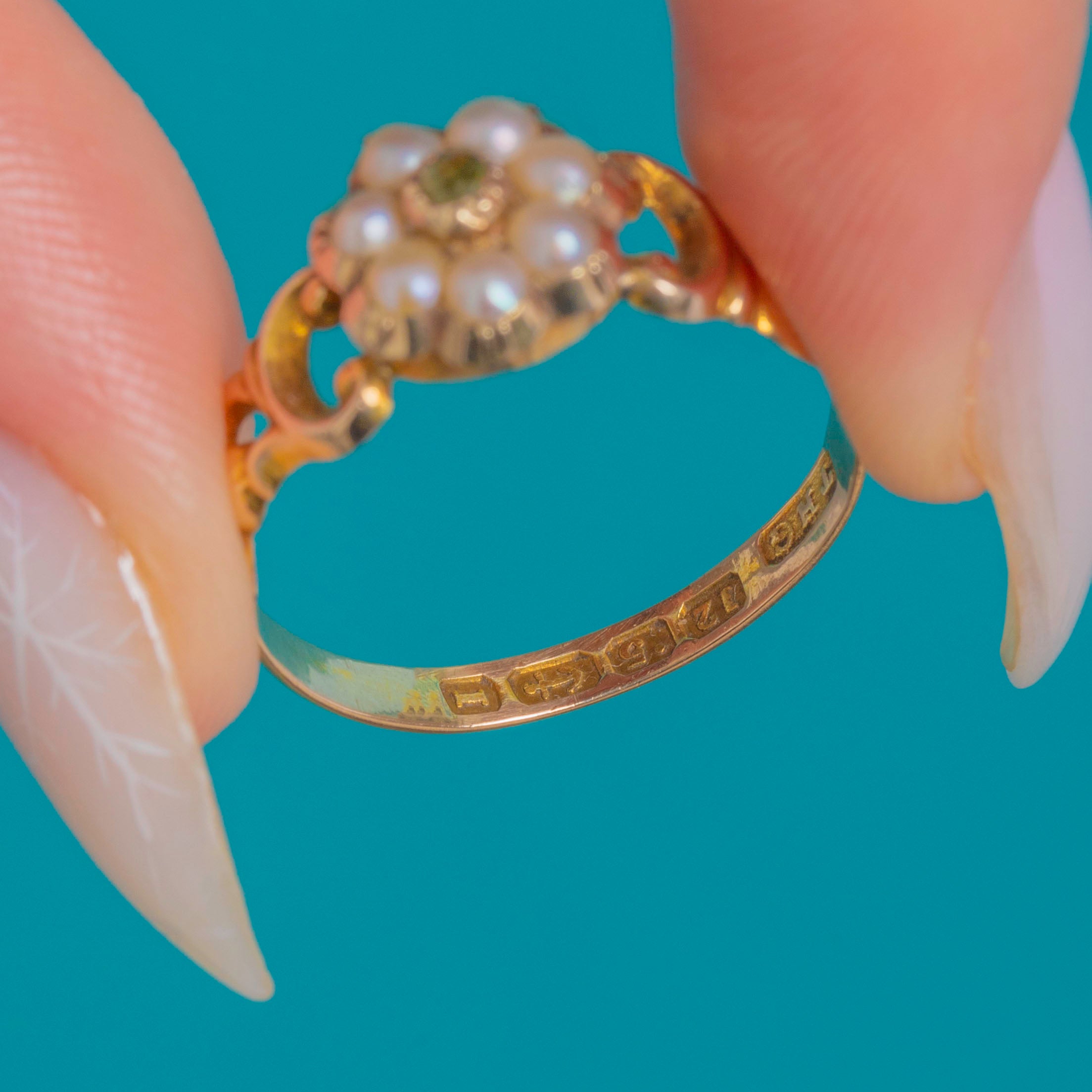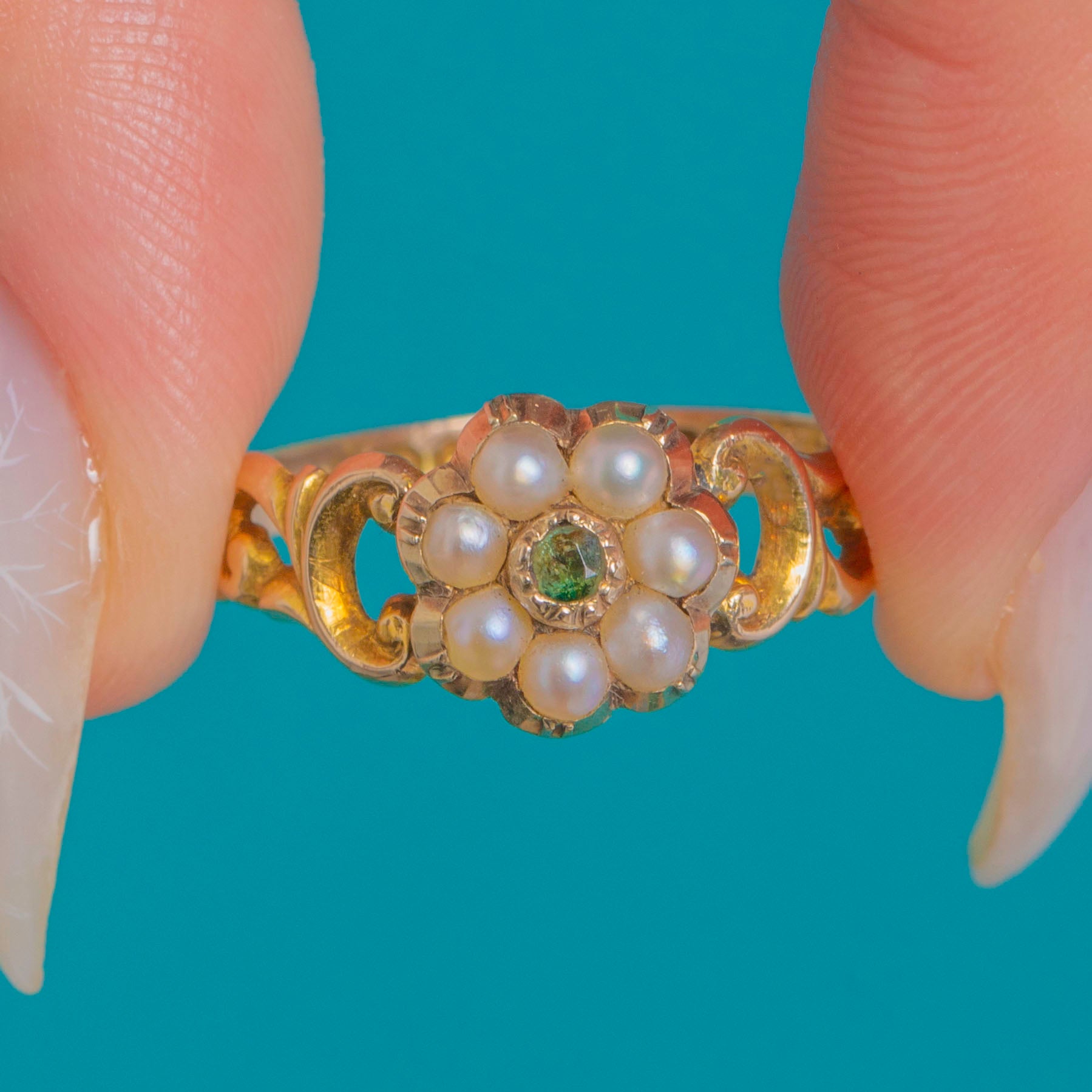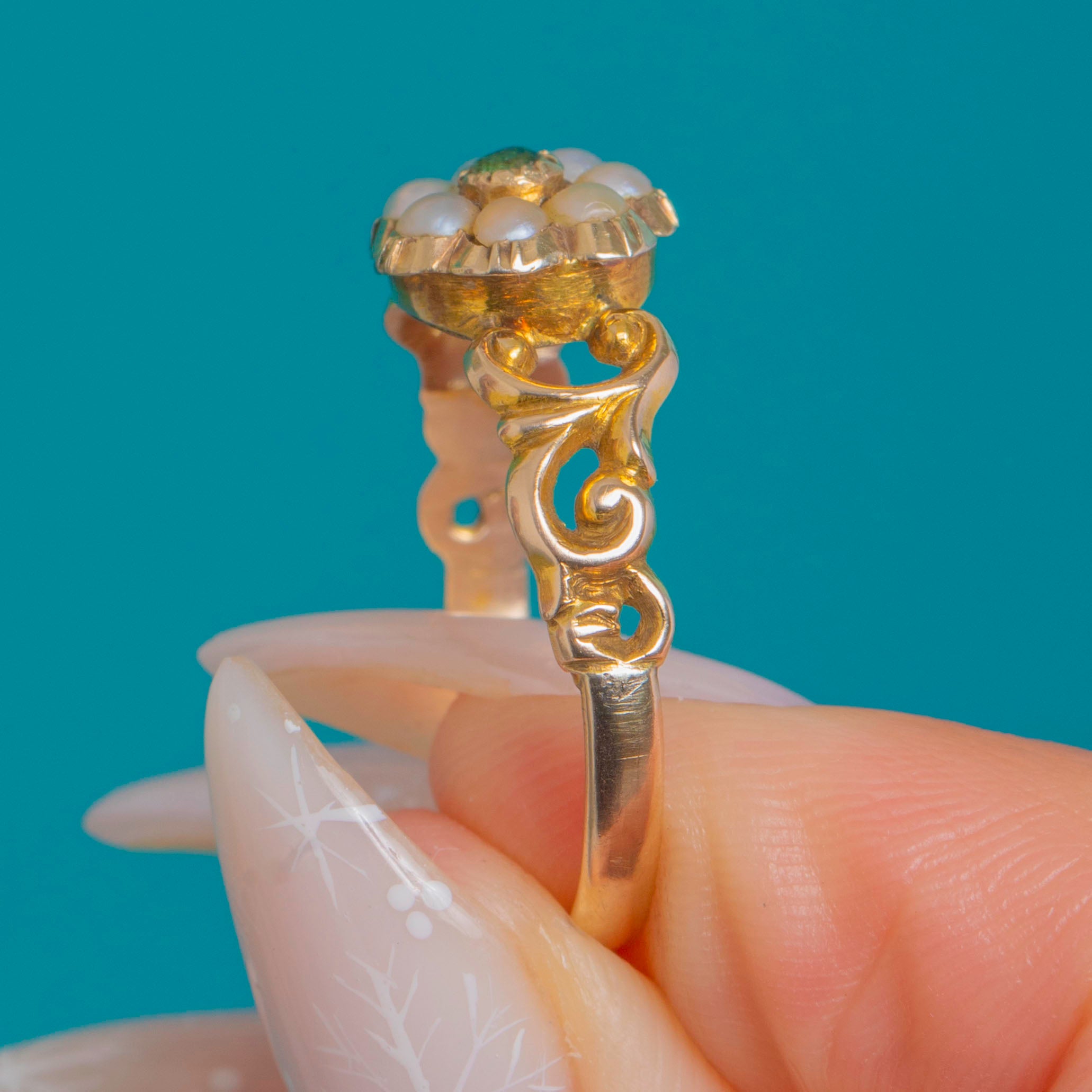 12ct Gold Emerald Pearl Cluster Ring c.1857