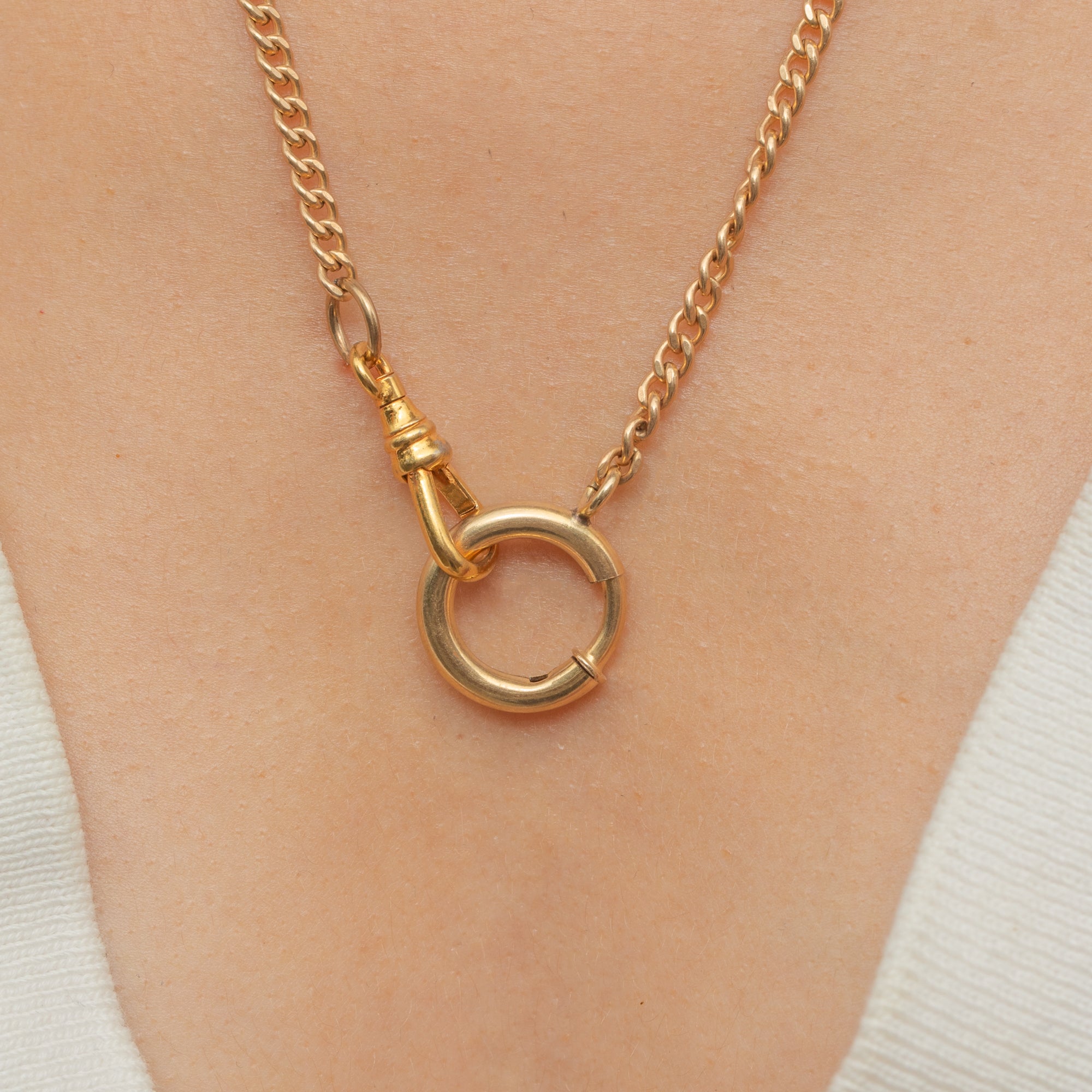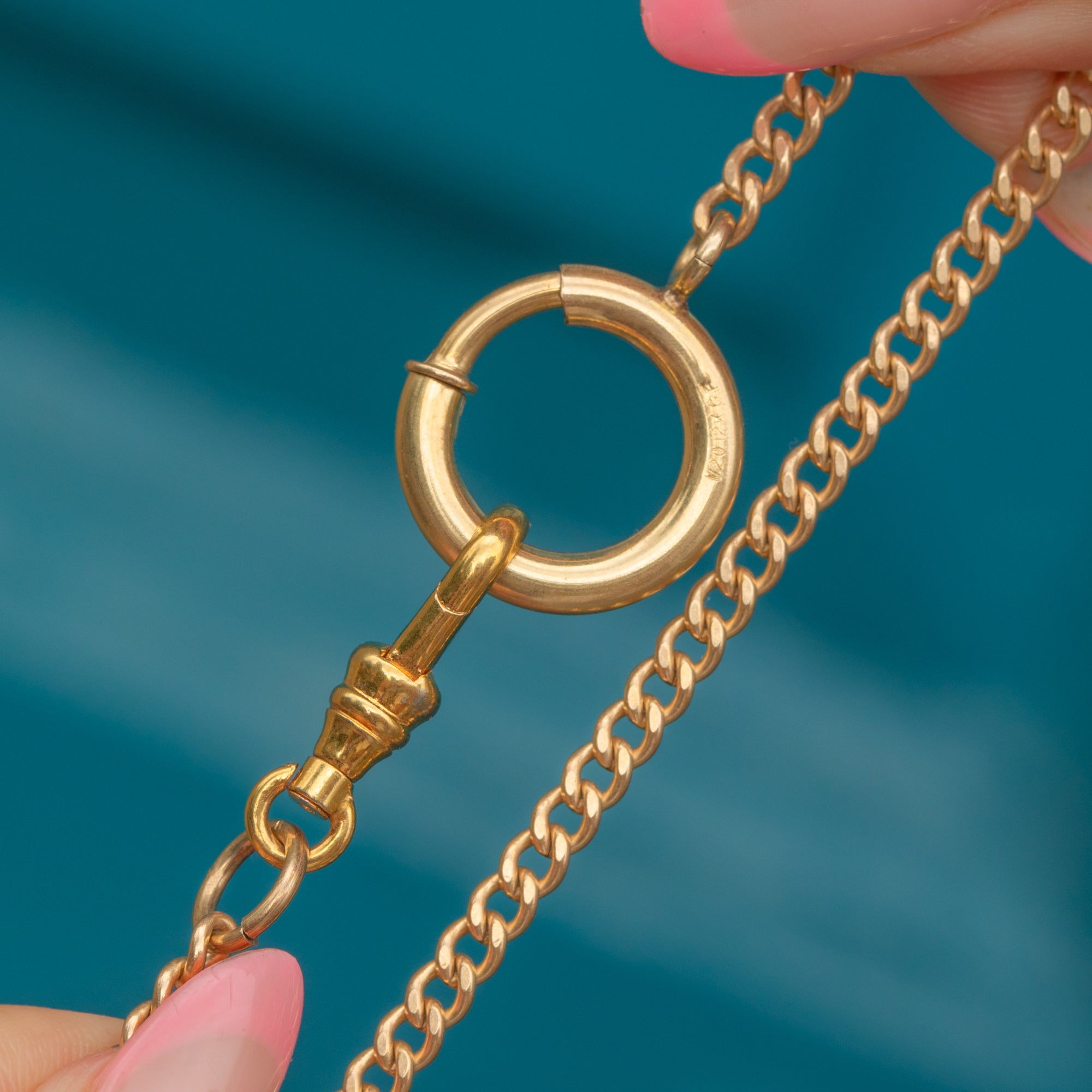 We love the versatility of this vintage Gold chain; you can wear her alone, incorporate her into a necklace stack, or add charms to her large bolt-ring for a personal touch. Complete with a much-coveted dog-clip, you will never tire of this vintage curb chain being part of your antique jewellery collection!