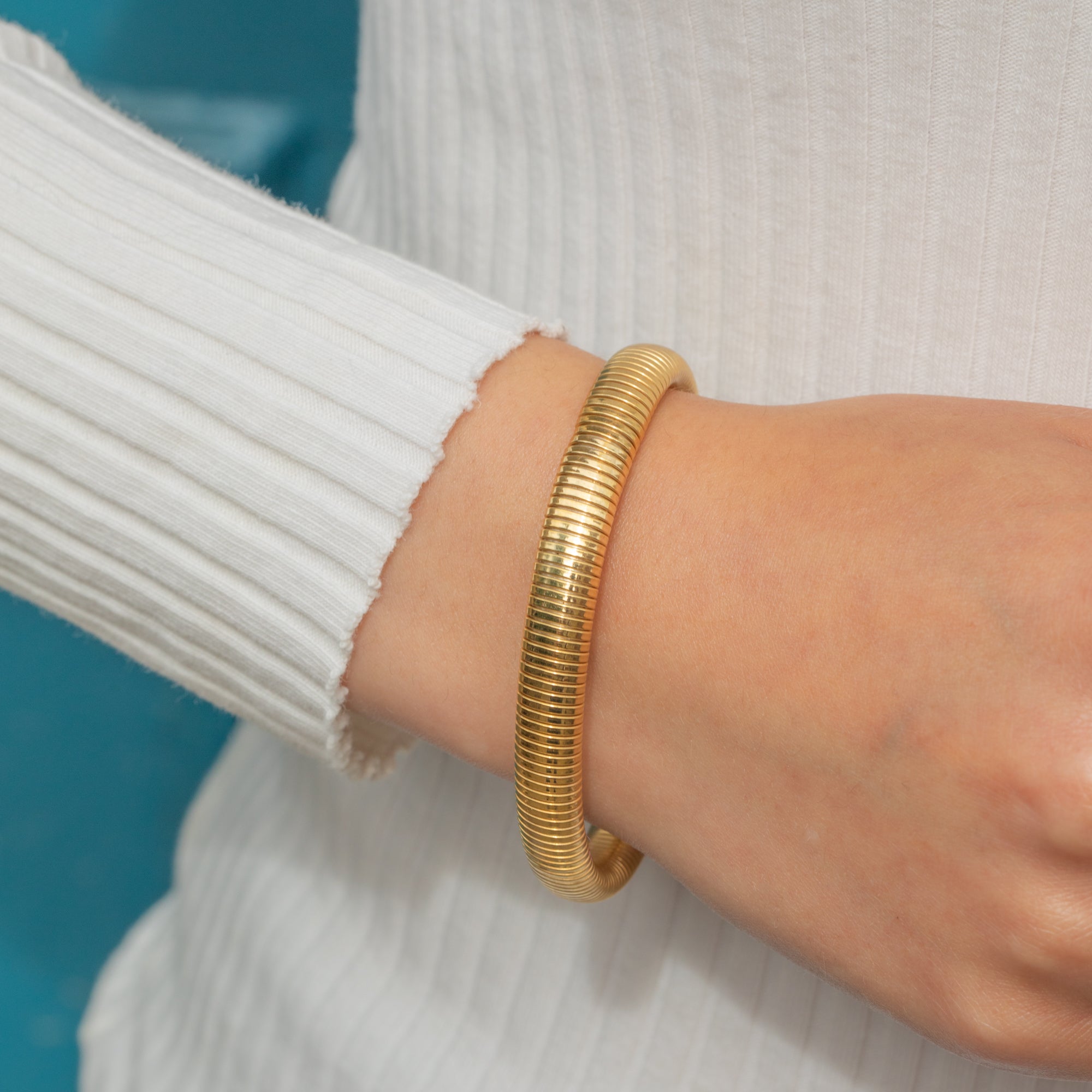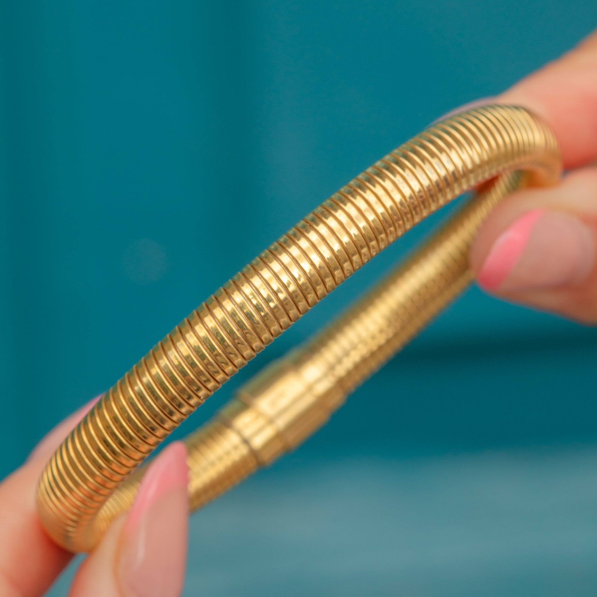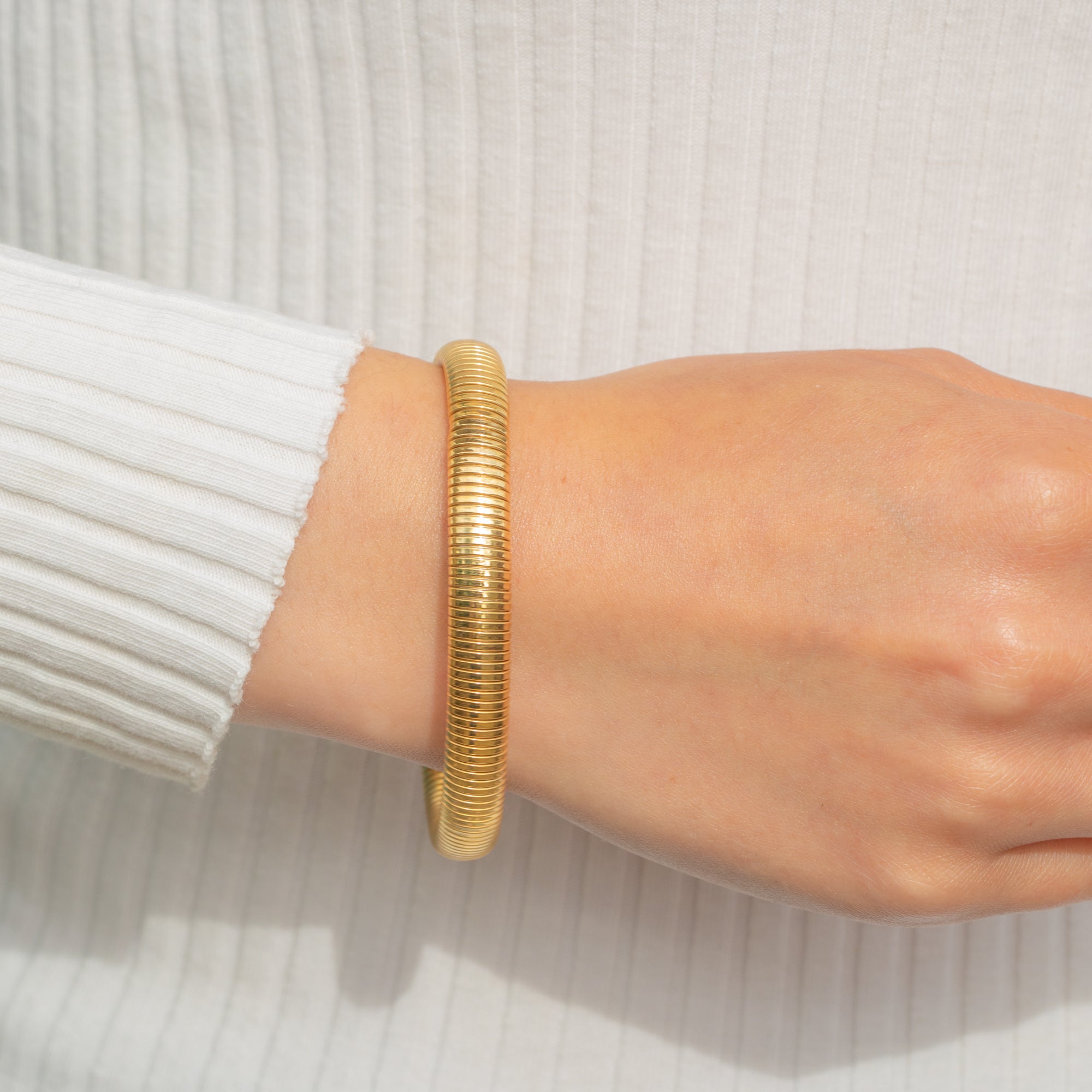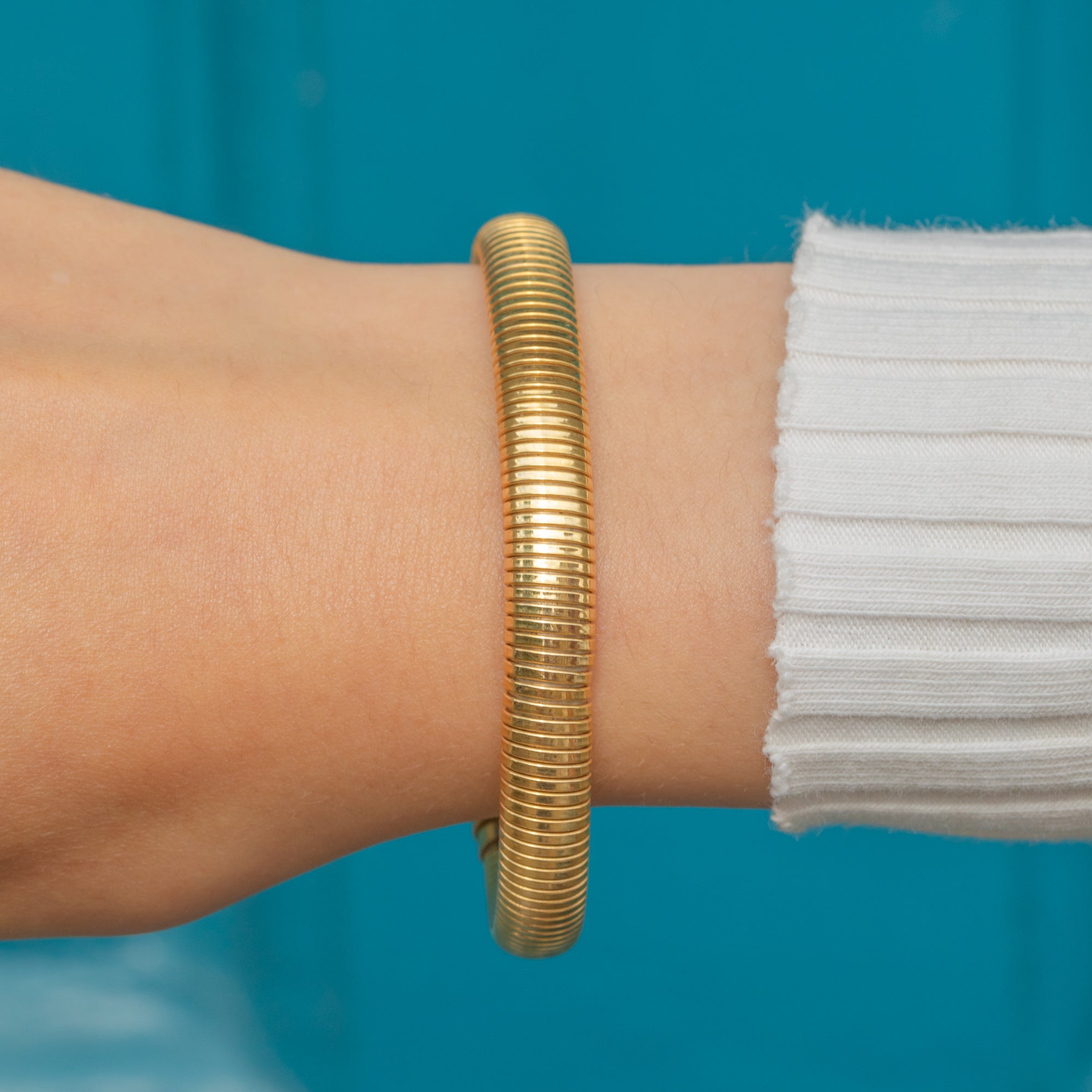 Add a touch of glossy Gold to your wrist with this striking 12ct Gold filled gas pipe bracelet!