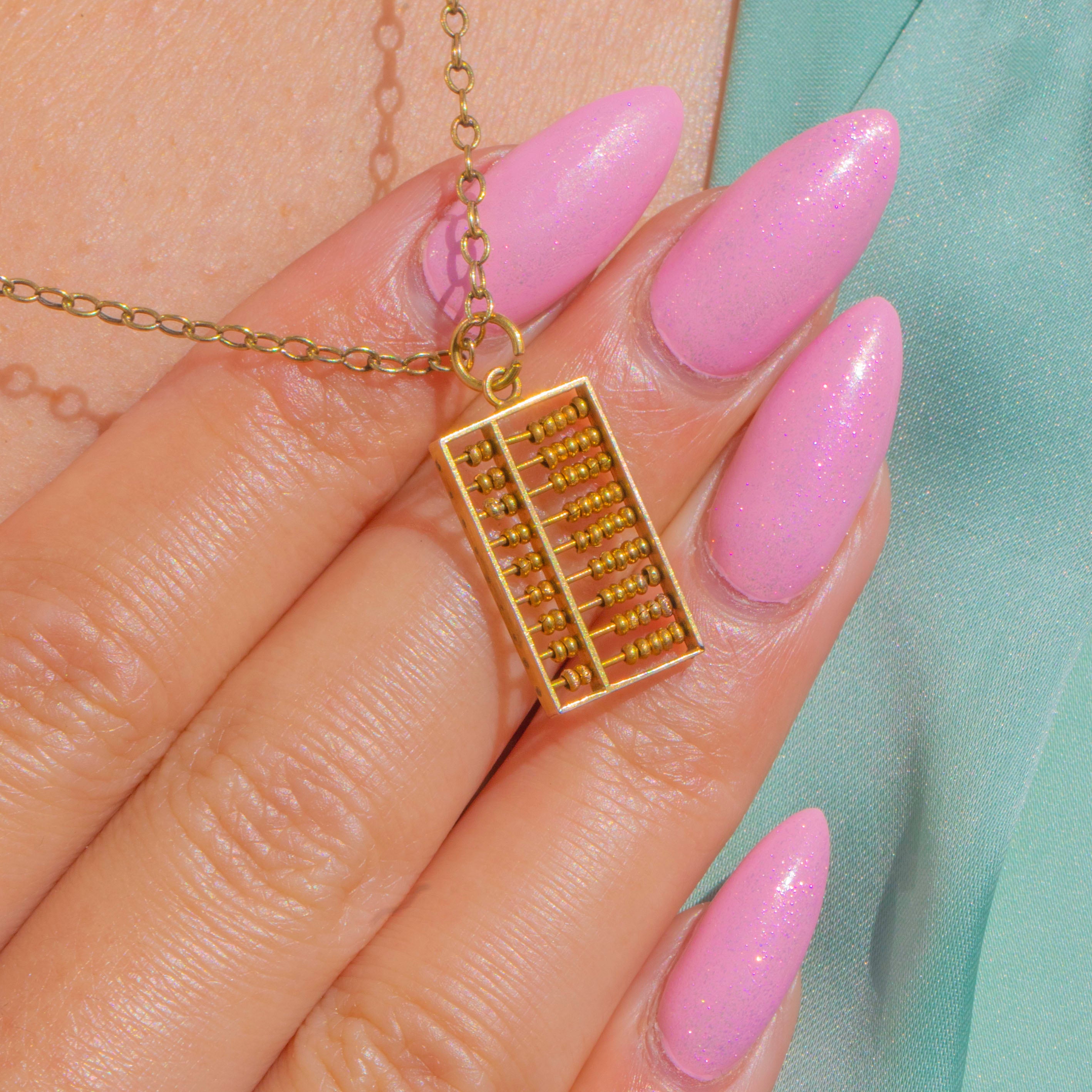 A delightful Mid-Century treasure, this petite 14ct Gold abacus charm marries whimsy with refined craftsmanship. Its warm golden glow and crisp silhouette make a chic statement in miniature, perfect worn solo on a fine chain or added to a curated charm bracelet.