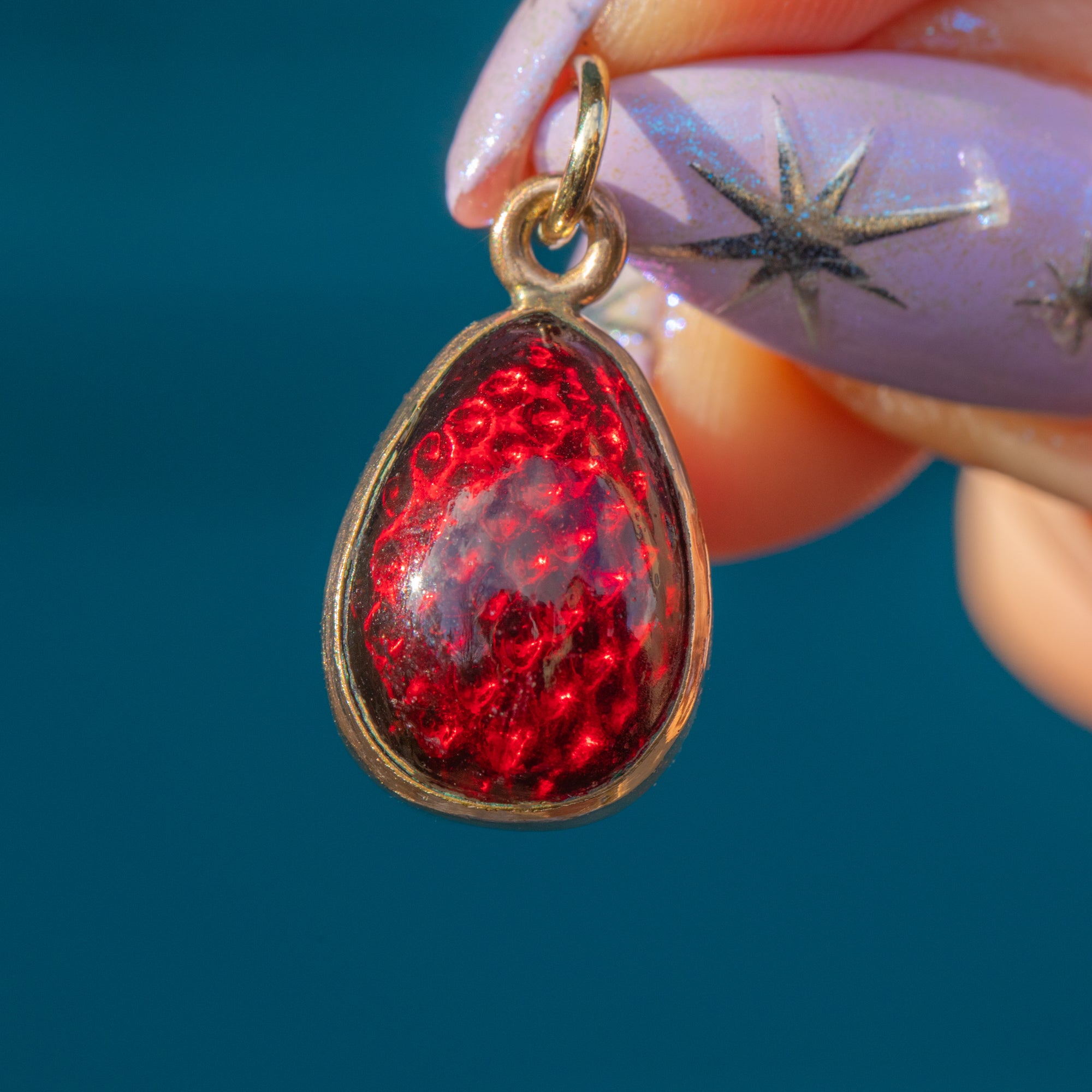 This 14ct Gold Enamel egg pendant is a unique little treasure! Formed from solid 14ct Gold, this sweet egg charm has been inlaid with decorative Enamel on both sides and showcases exceptional craftsmanship.