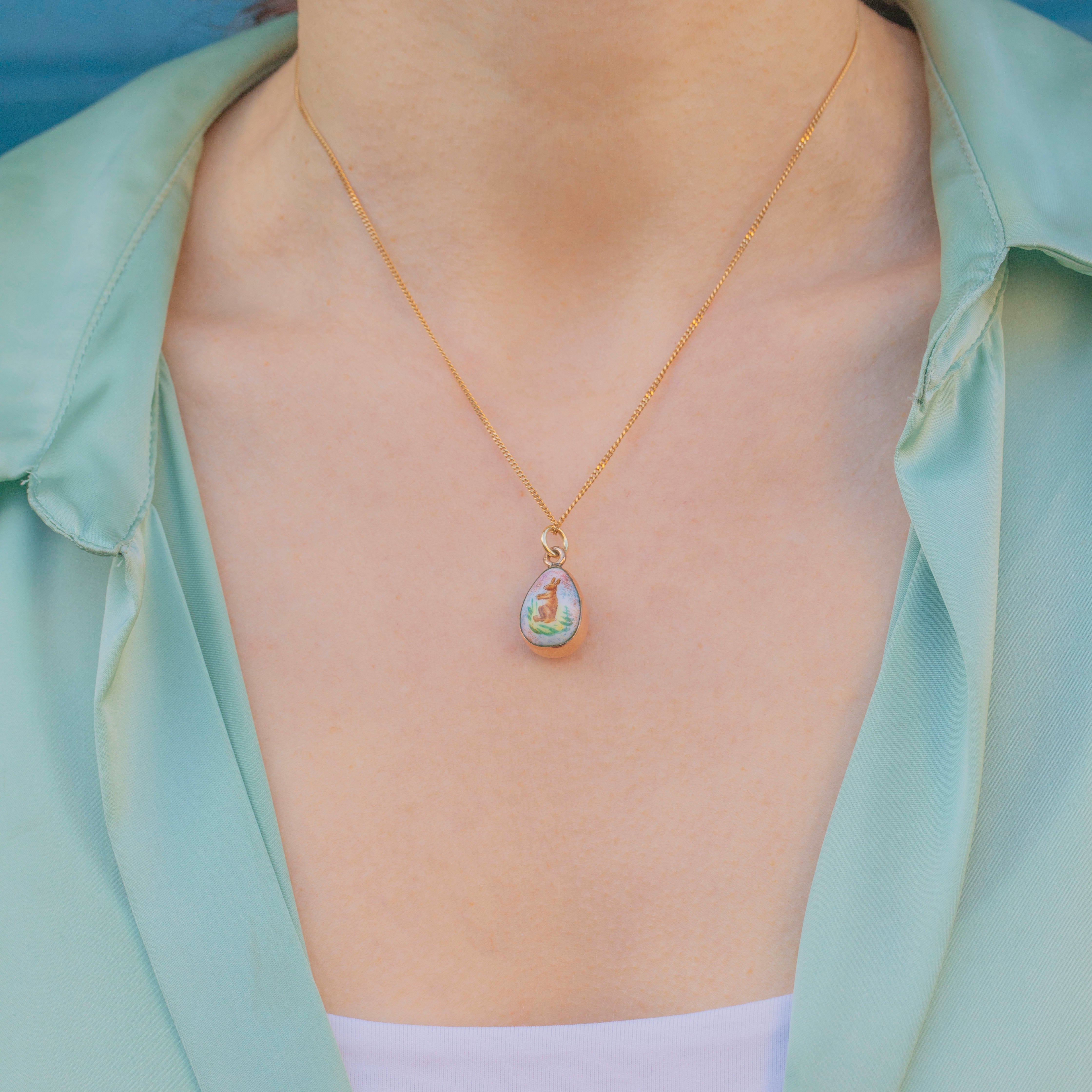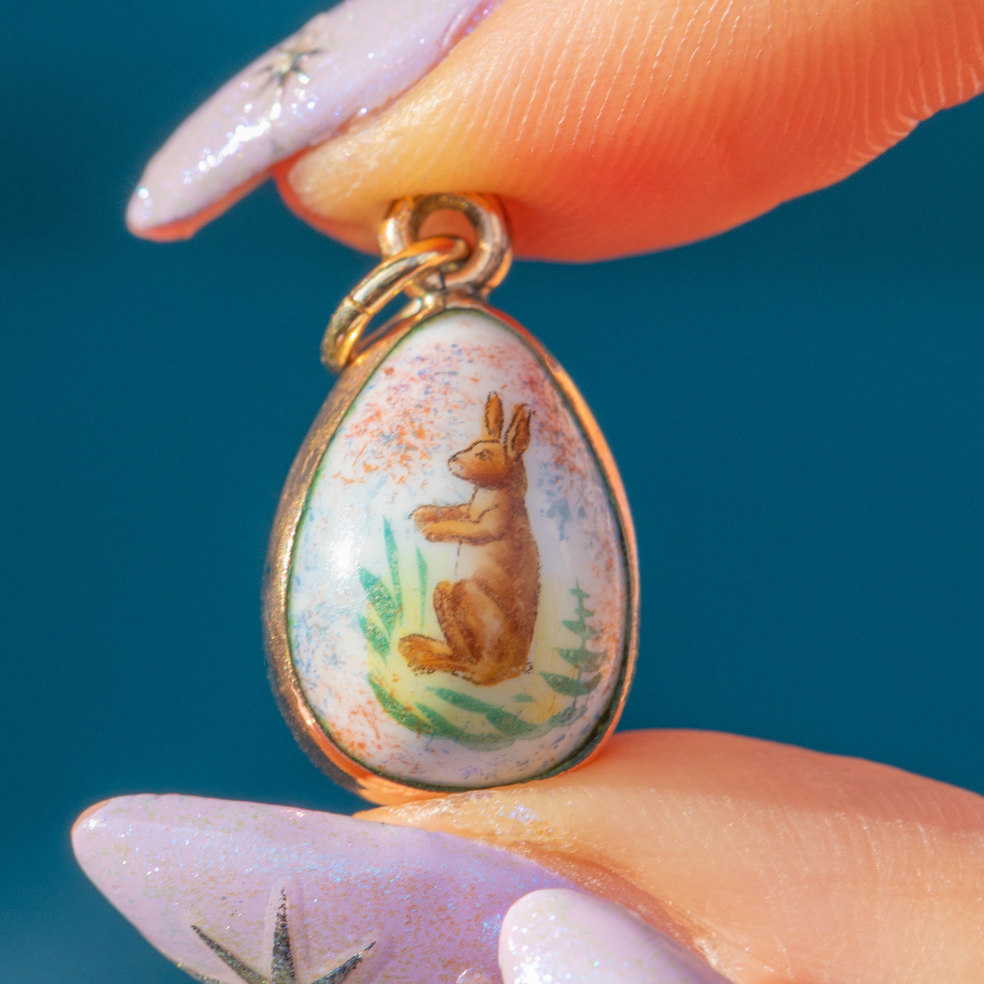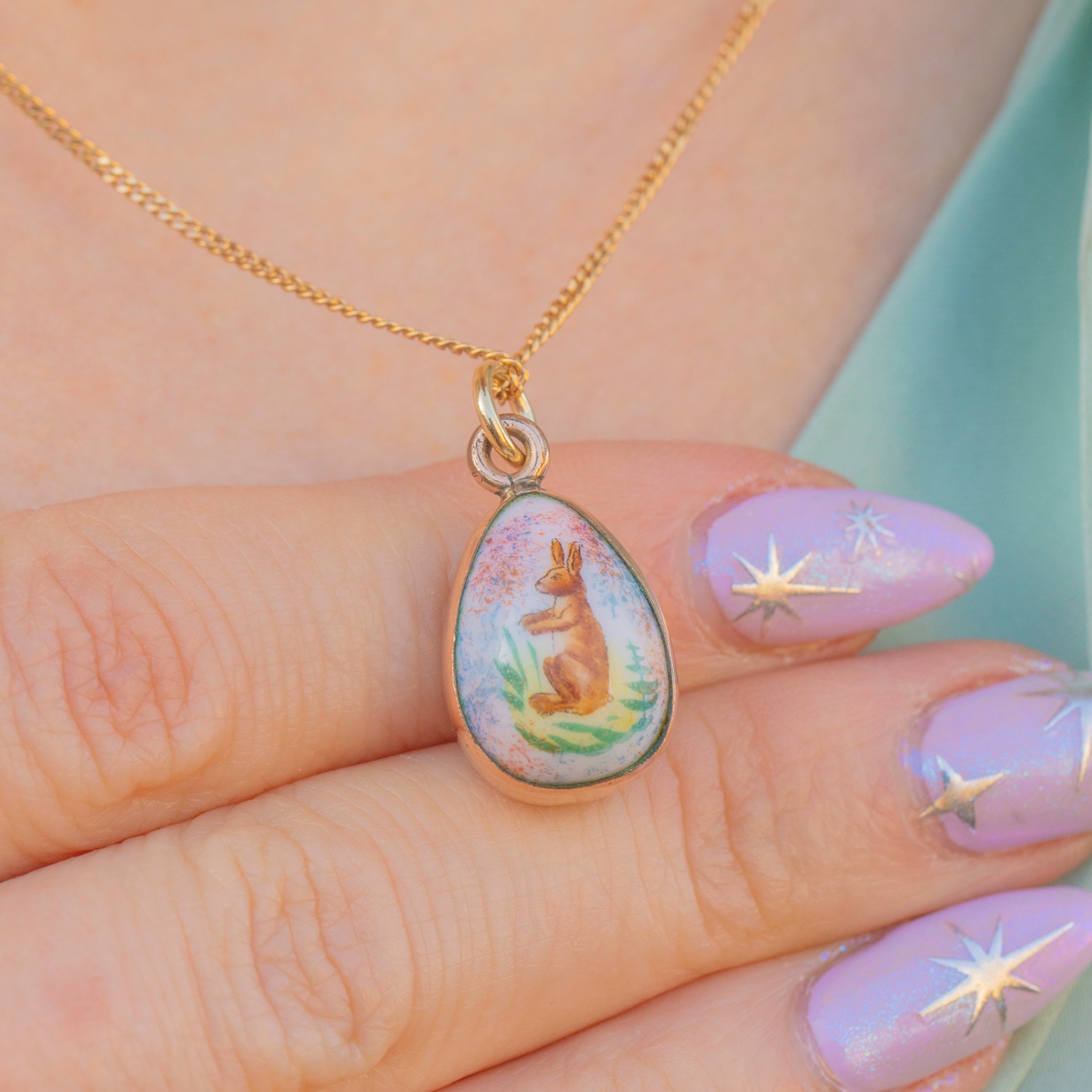 14ct Gold Enamel Egg Pendant, Bunny Motif