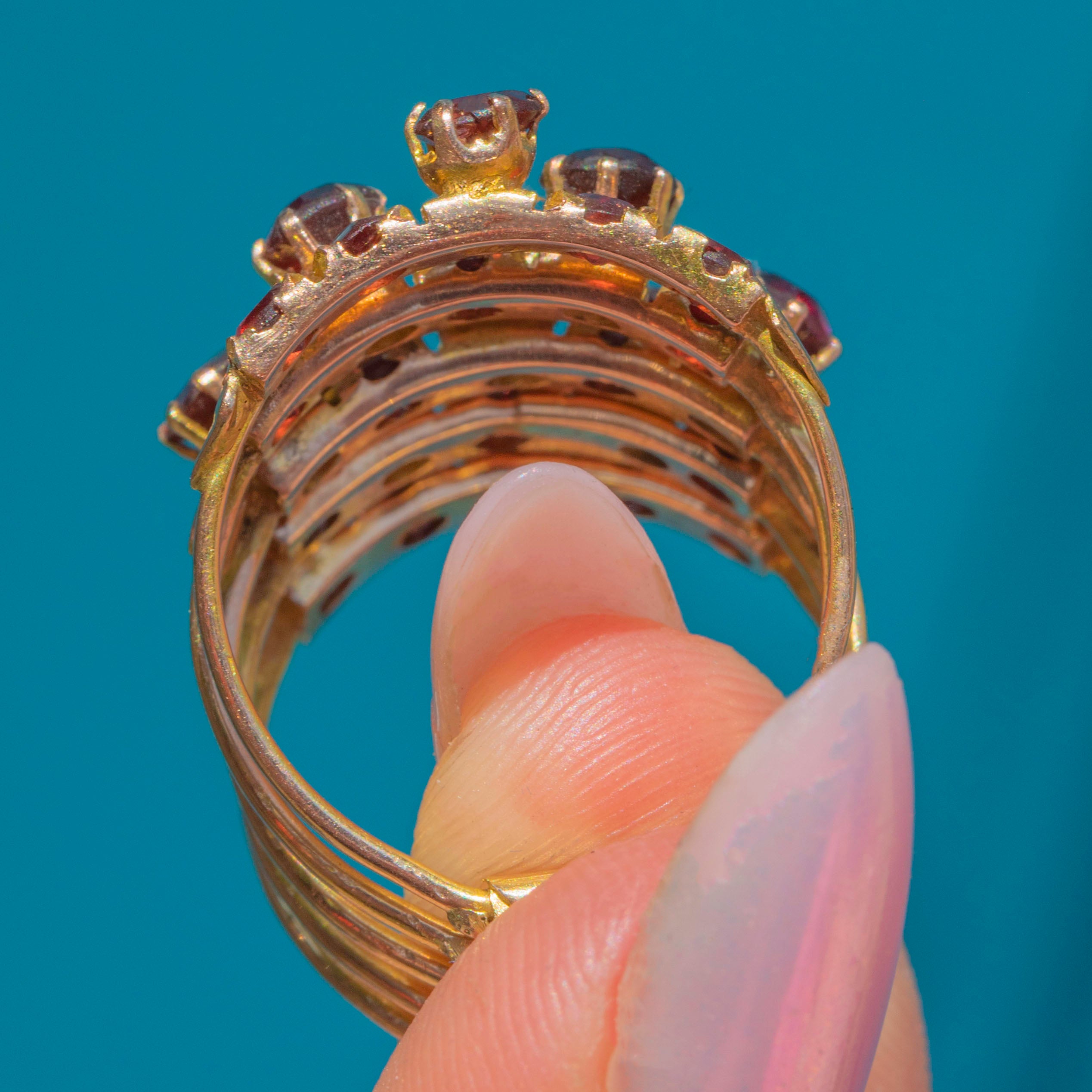 A stunning Victorian Harem ring with a generous helping of saturated Garnets, each one possessing a marvellous magenta hue!