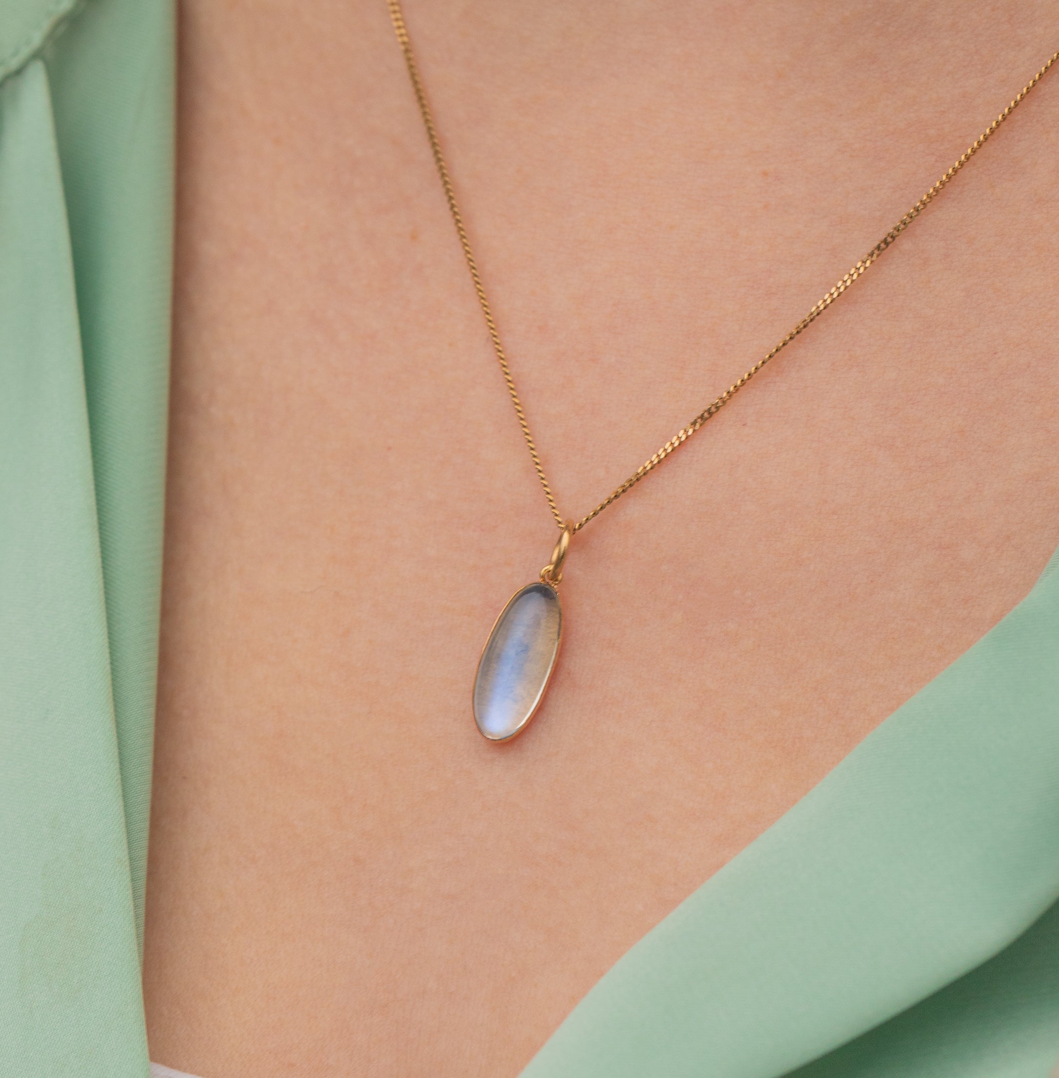 You will instantly become entranced by this 14ct Gold Moonstone pendant! The silver schiller of her Moonstone glistens softly against the buttery backdrop of her 14ct Gold bezel setting, like a moonlit sky on a clear winter's night.