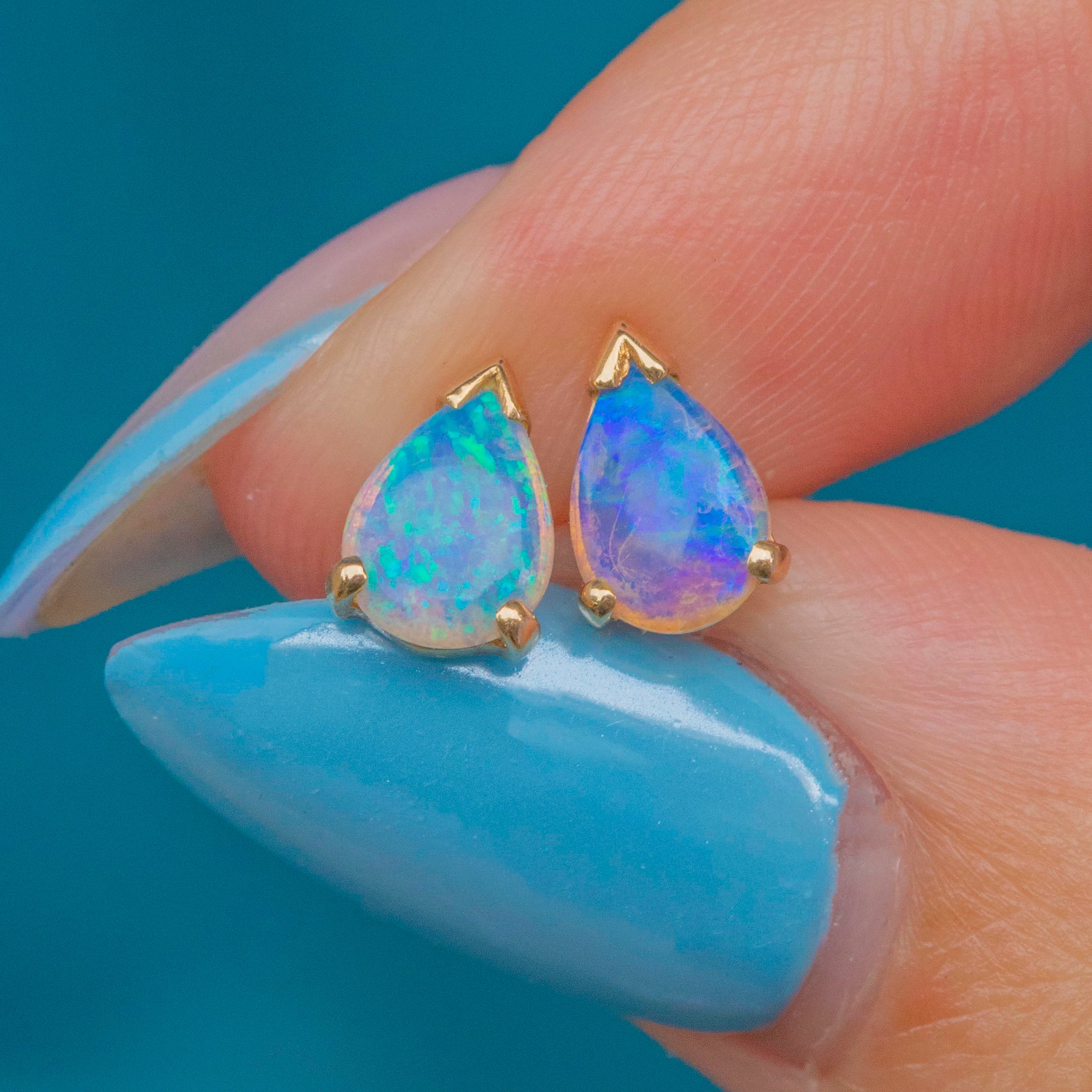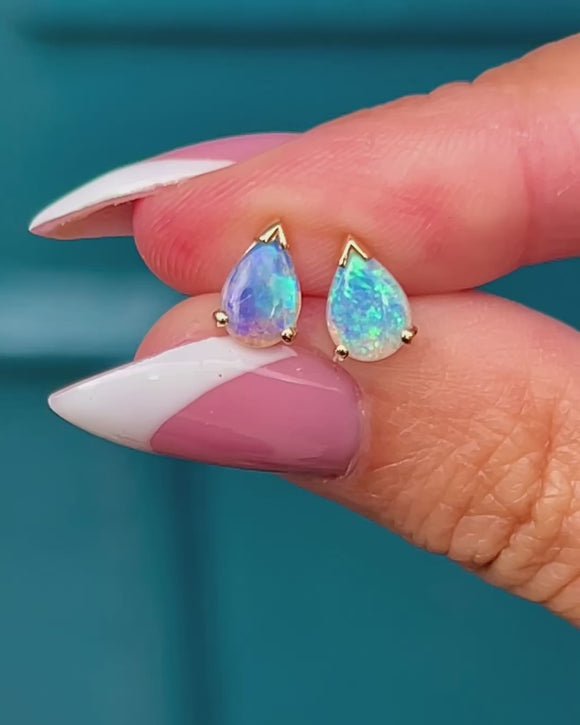 Opals are 12.5mm long x 9mm wide, weighing approx. 1.85ct combined.