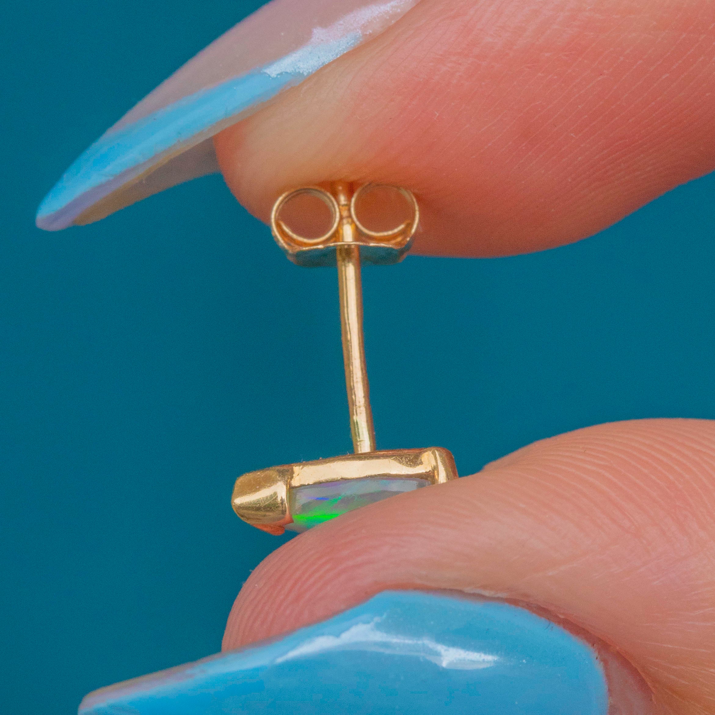 A delicate vintage design, these stud earrings look elegant on the lobes and are a great wearable size. The perfect everyday pair, these vintage natural Opal earrings will add a gorgeous finishing touch to any outfit!