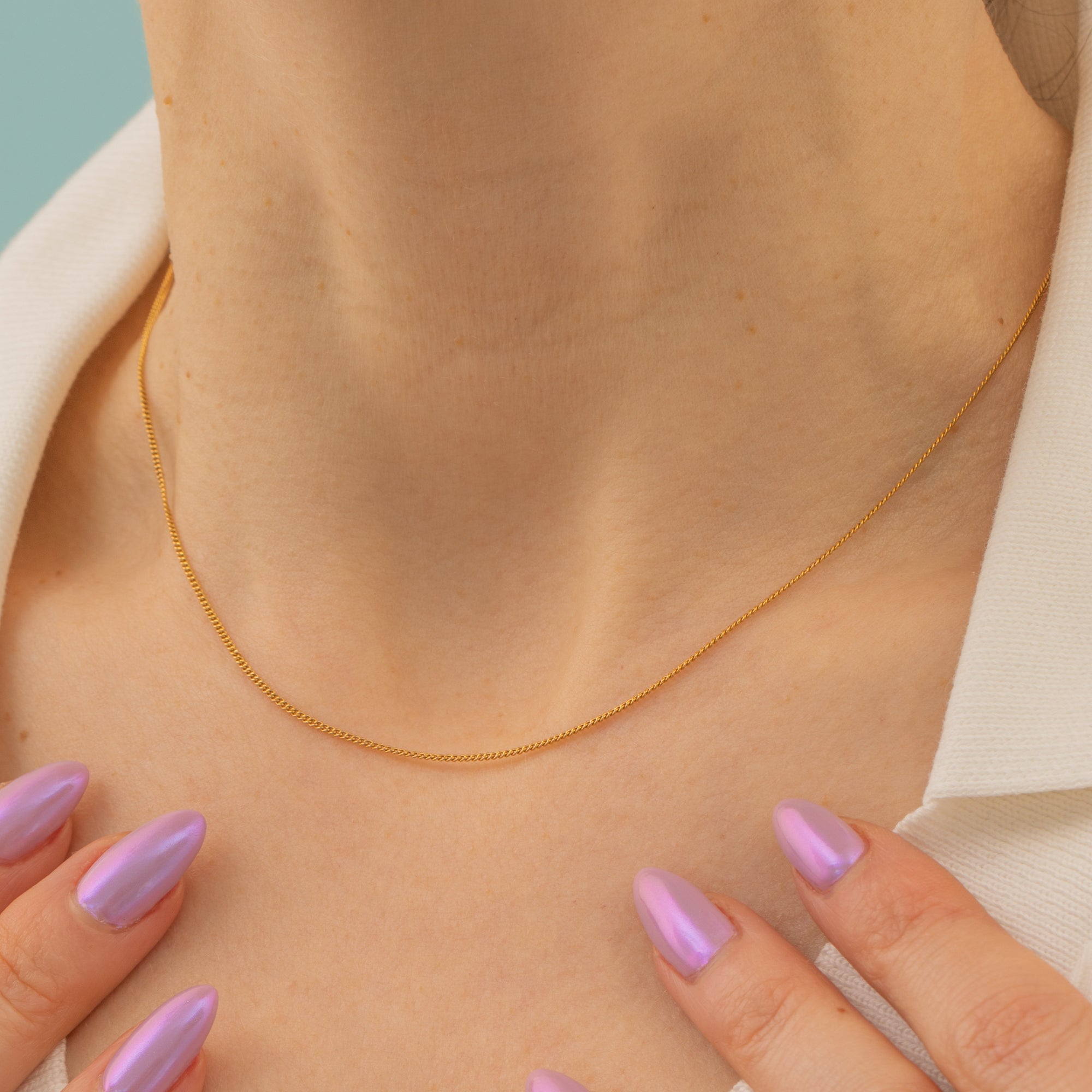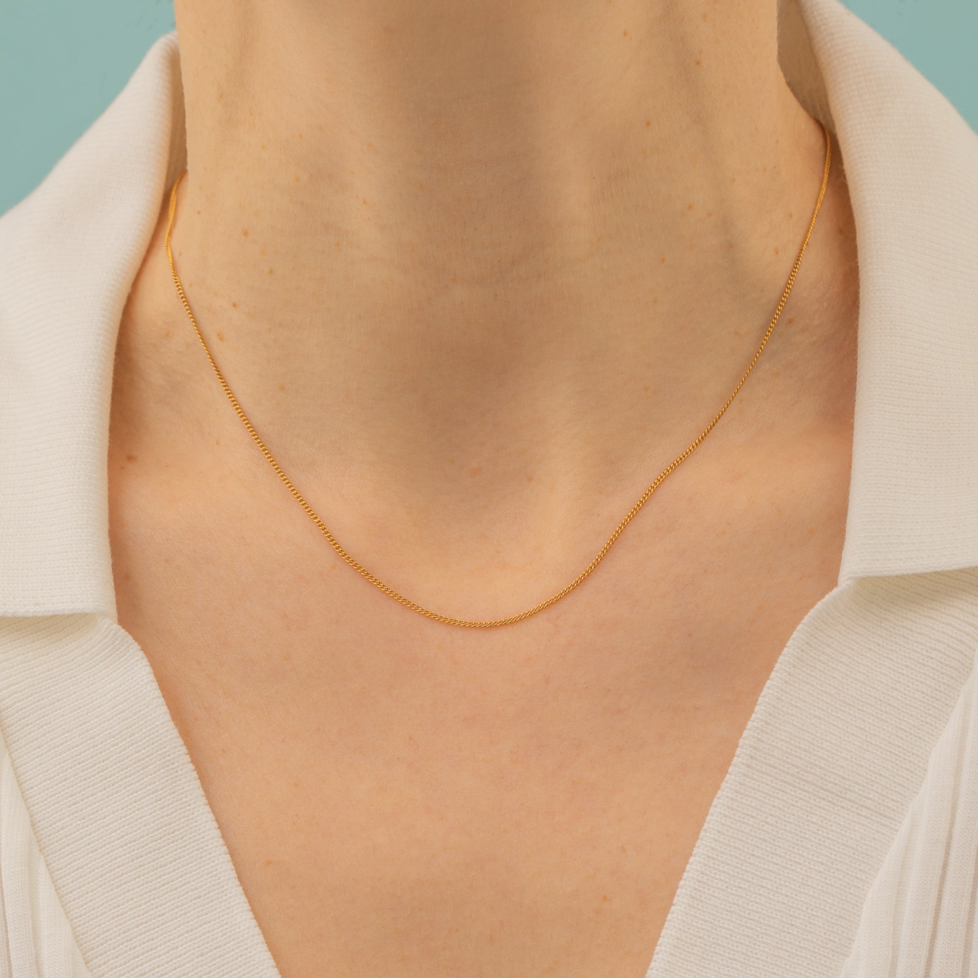 Lightweight and at a desirable length of 15.5", this 18ct Gold curb chain is great for suspending charms or a pendant and for layering with other pieces on your necklace stack!