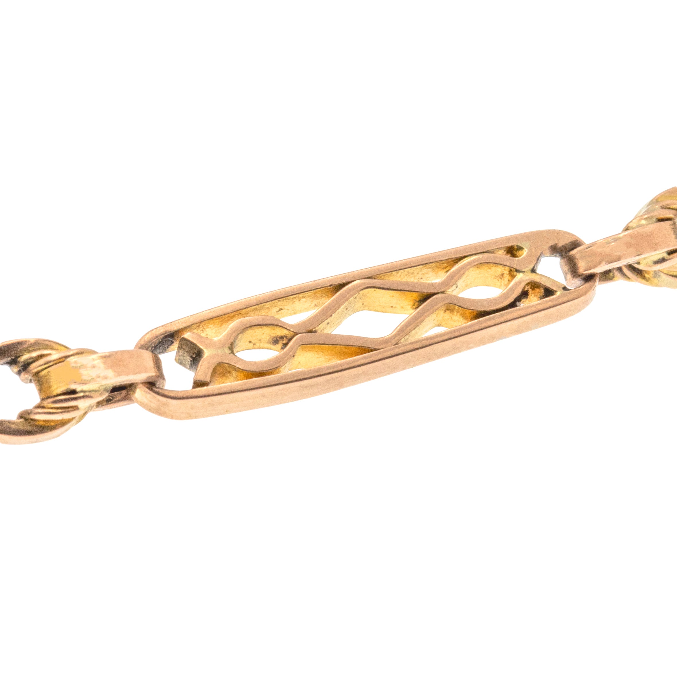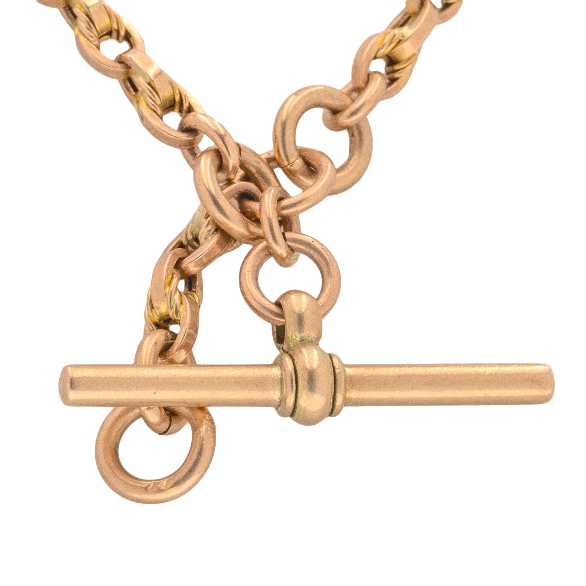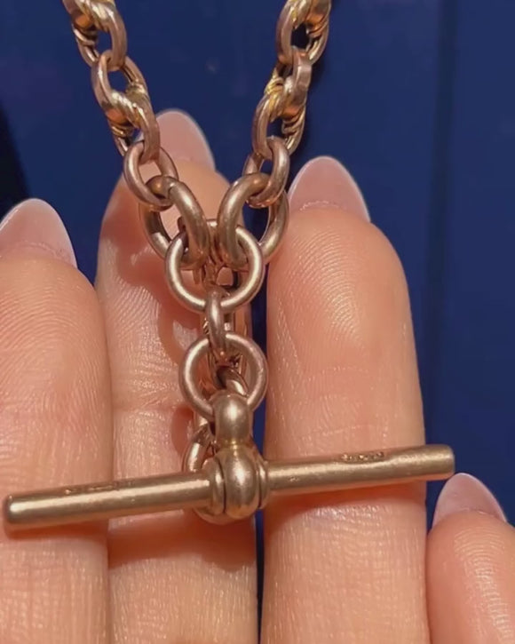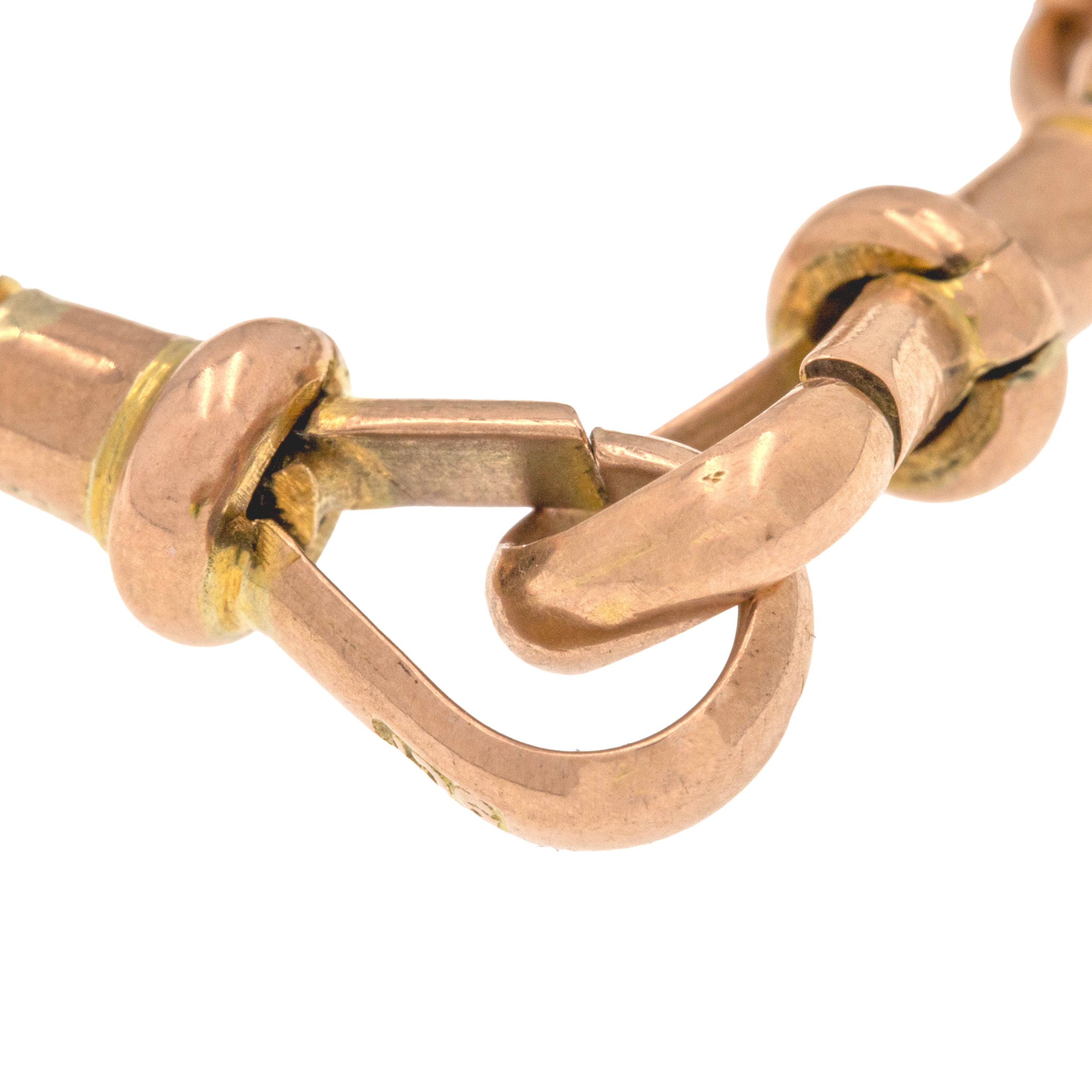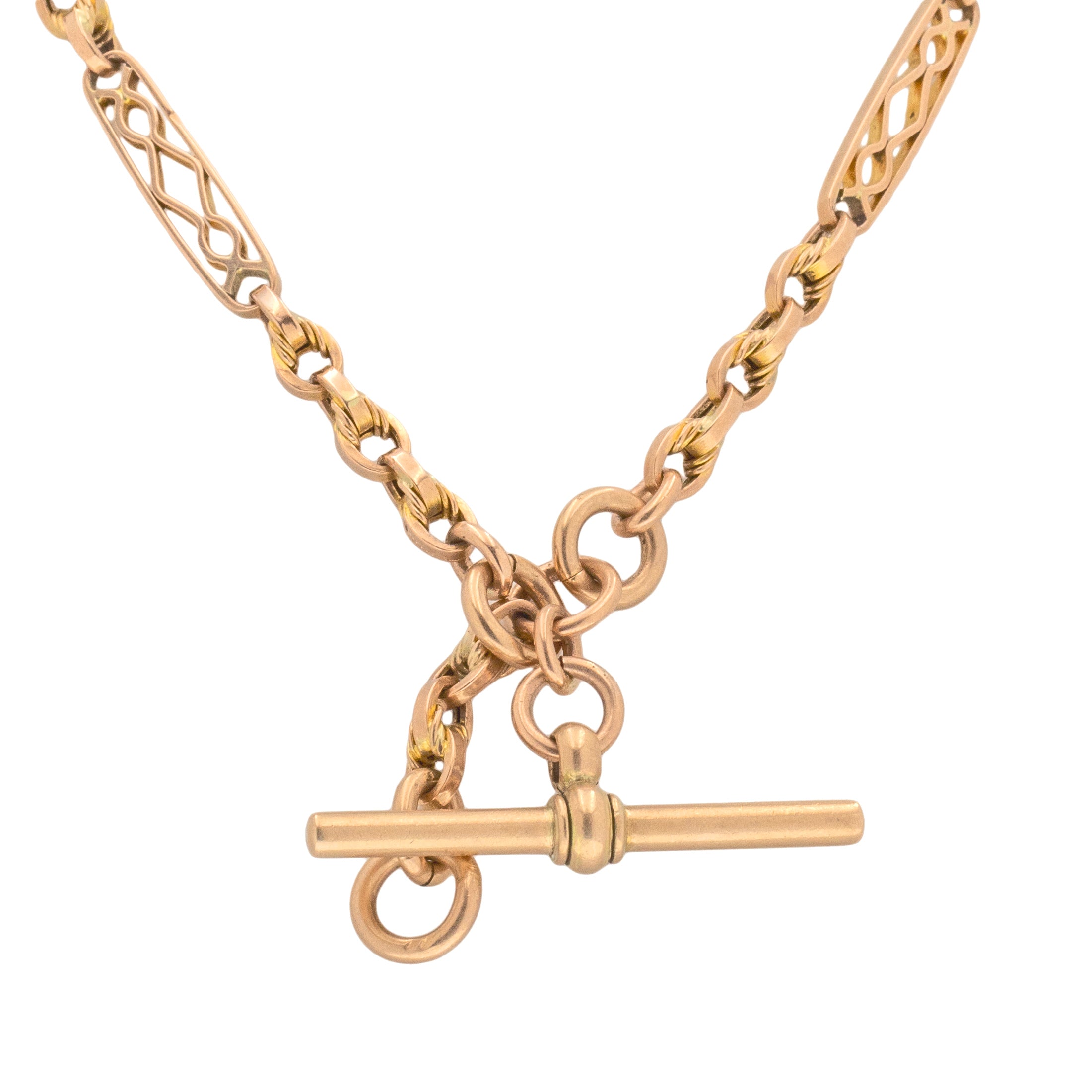 Chaîne Albert ancienne en or 9 carats de 15,5" avec maillons nœud d'amoureux fantaisie, clips pour chien assortis, 19g