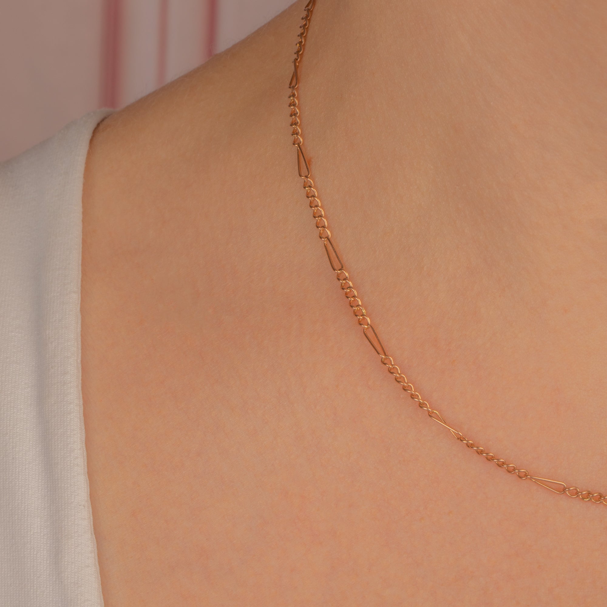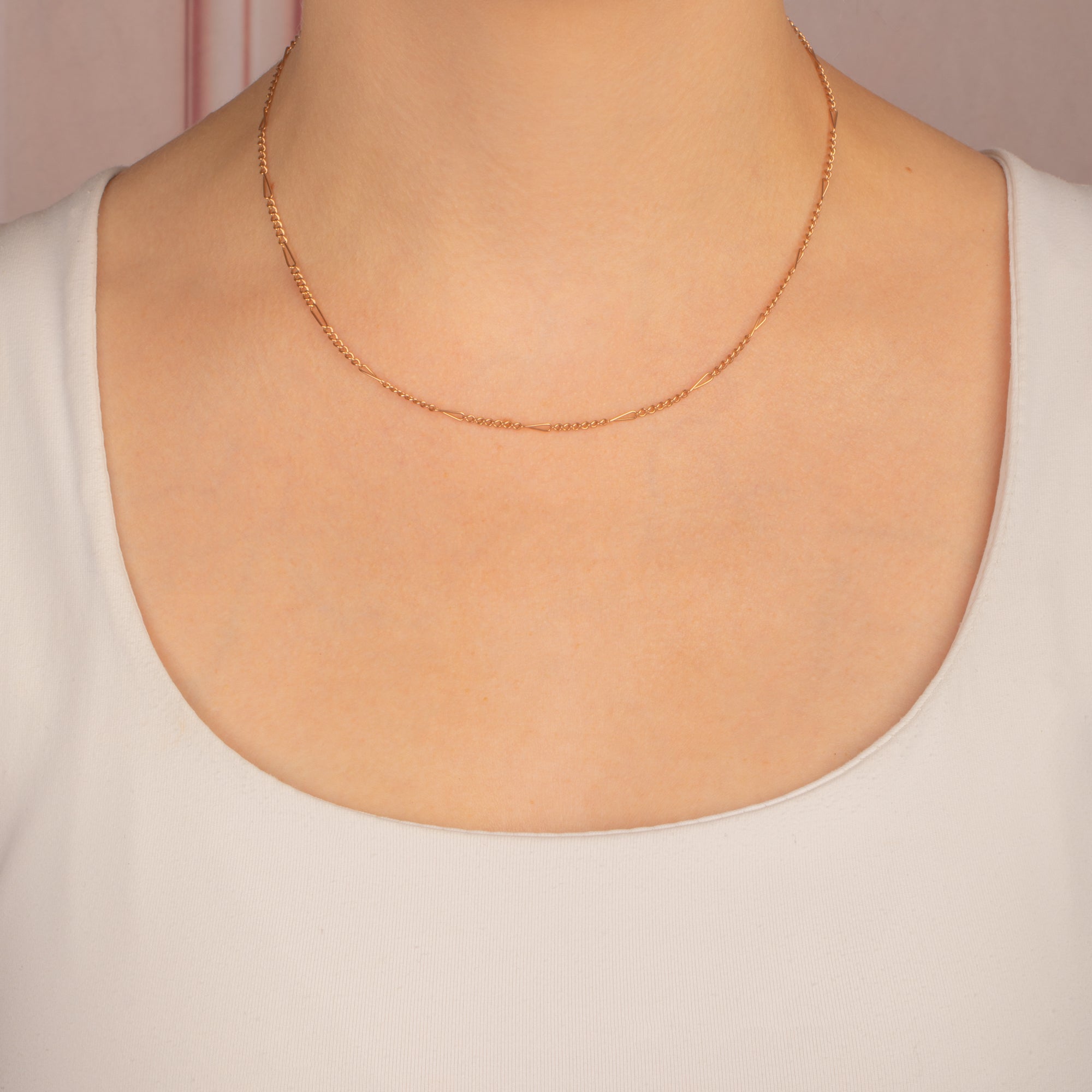 A splendorous 15.5" antique 9ct Gold Figaro chain to add to your repertoire! Crafted from buttery and saturated 9ct Gold, she features alternating longer and shorter curb links making her that highly desirable Figaro chain.