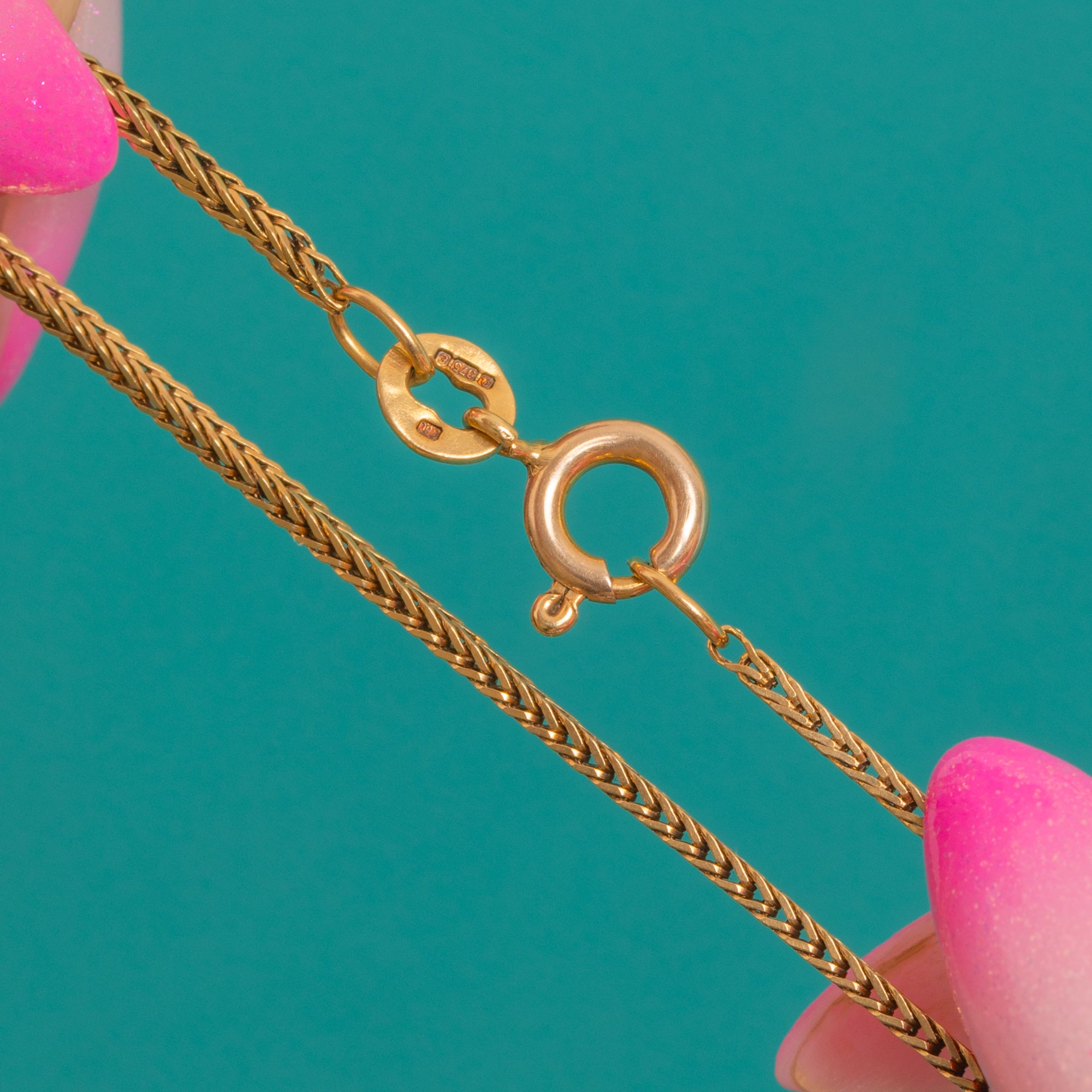 Understated and oh‑so elegant, this Vintage 9ct Gold woven chain is a forever classic. The finely braided wheat (spiga) links have a beautiful, fluid drape and a bright polished glow that elevates any look with ease.