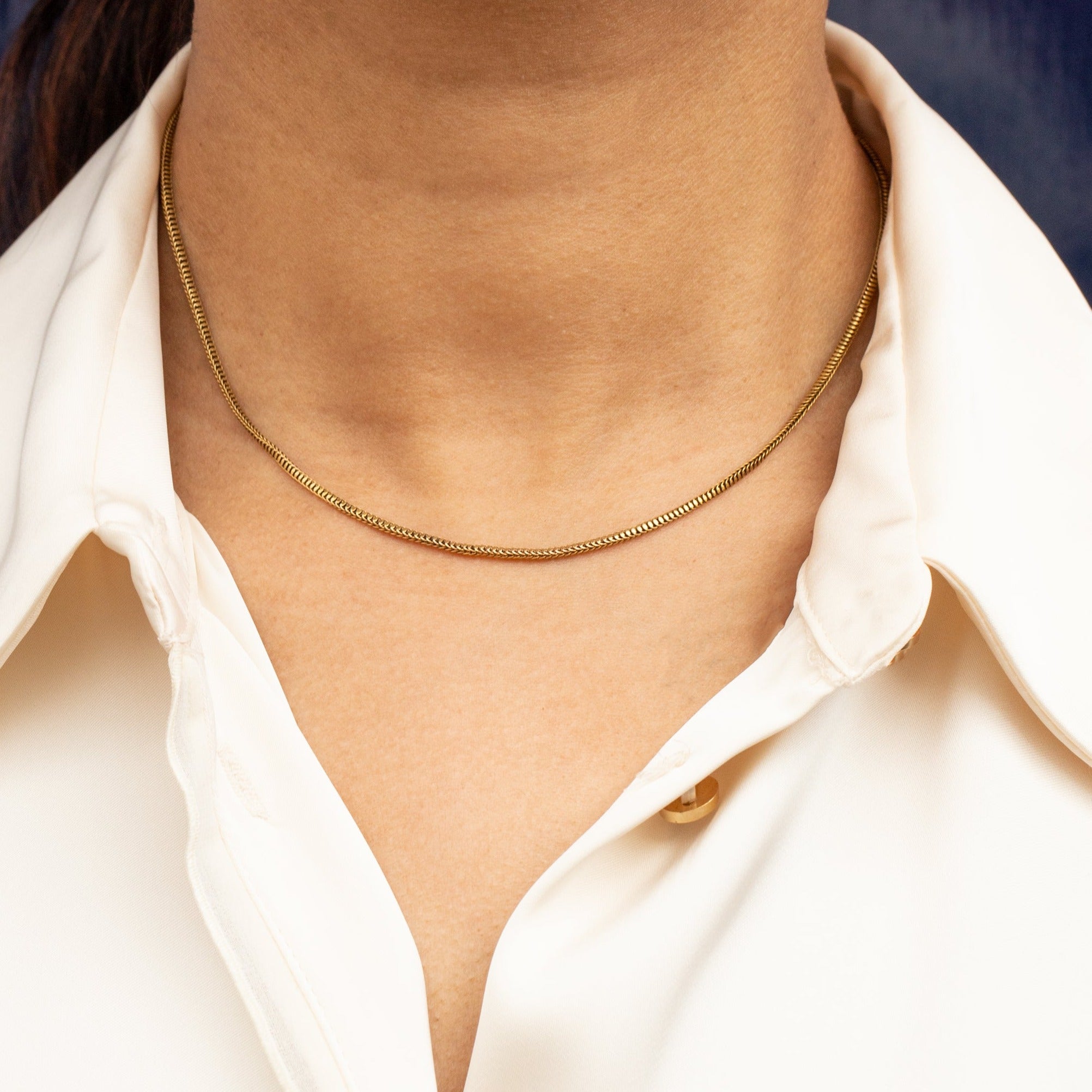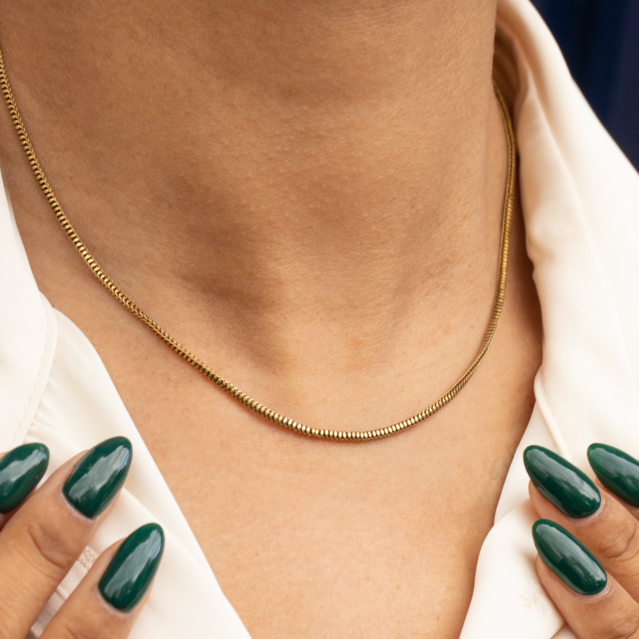Chaîne serpent antique 15" en or 15 carats - Fermoir barillet original