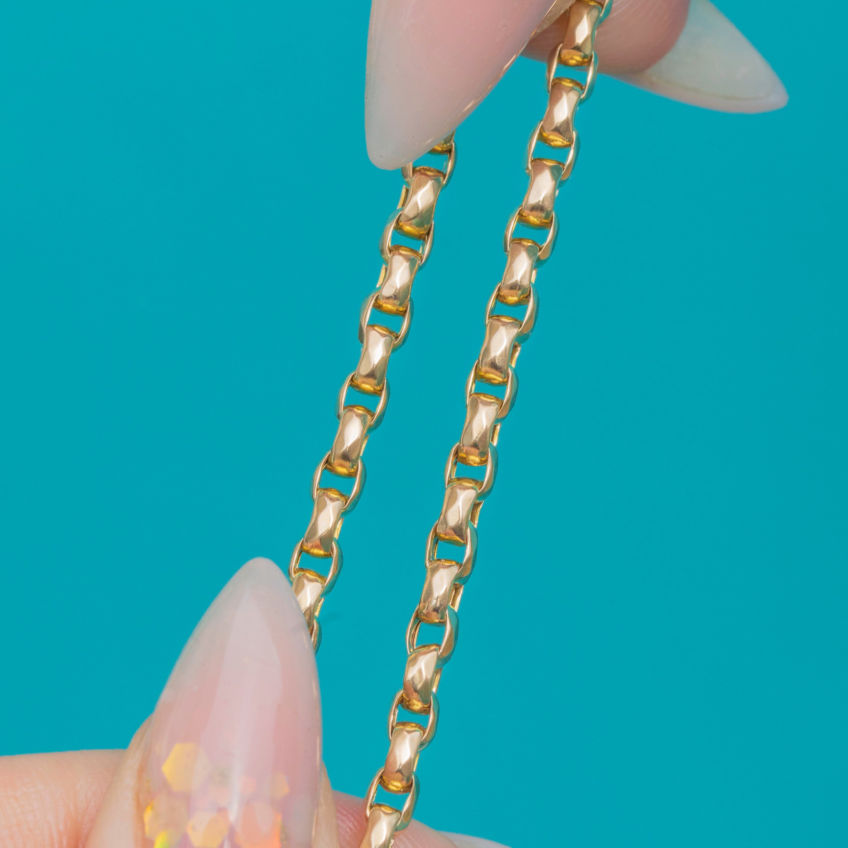 Weighing 10.2g, this antique chain is a fine example of Victorian craftsmanship, with a warm Gold hue and timeless design that remains effortlessly wearable today.