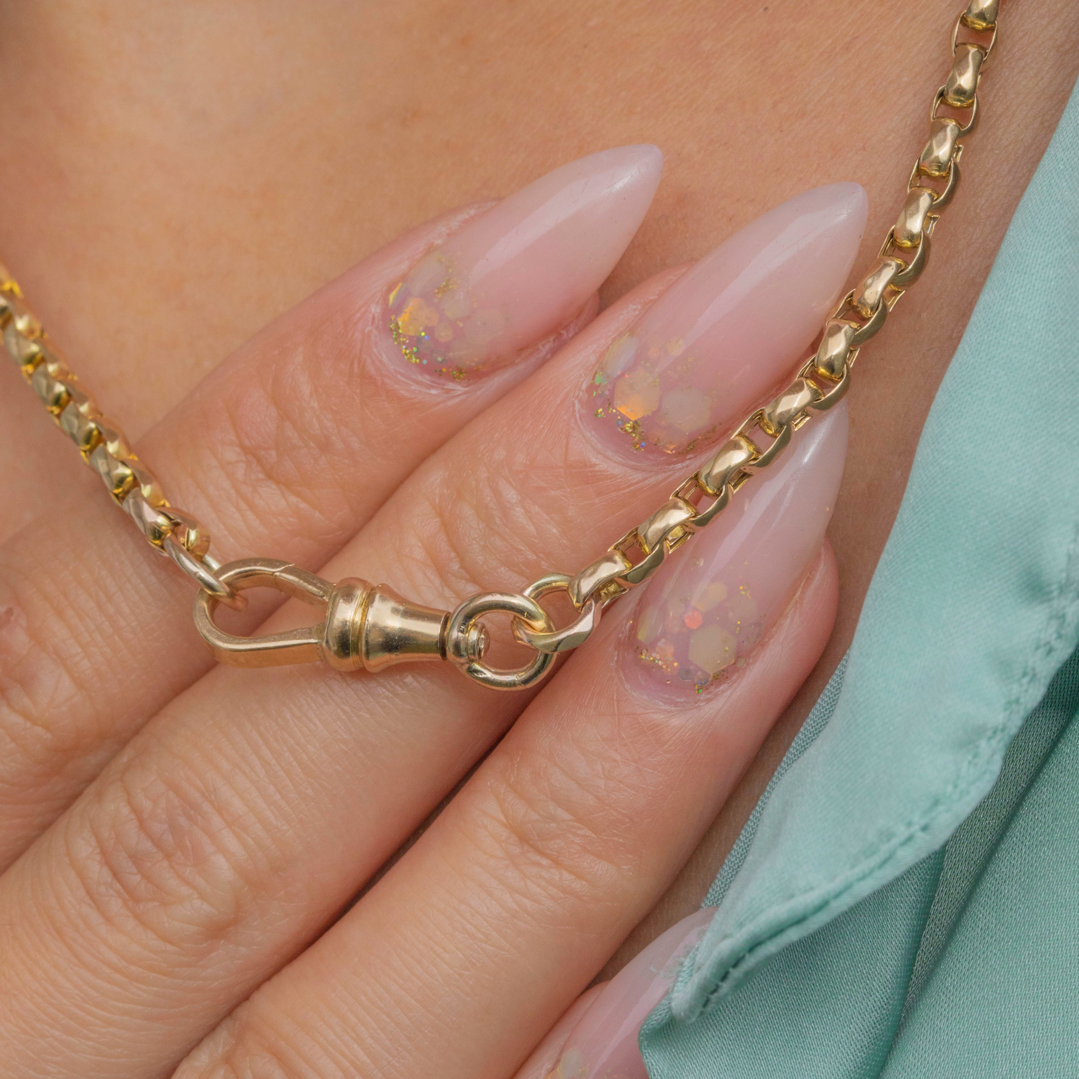EXCELLENT: The faceted links are crisp, strong and well-preserved, showing only minimal wear. The dog-clip clasp is original, secure and in perfect working order. A superb Victorian chain ready for everyday wear or layering.