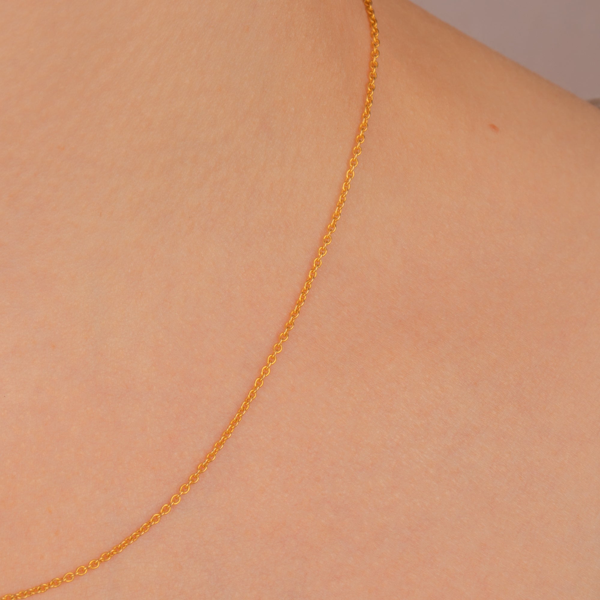 A 16.5" antique 15ct Gold skinny pendant chain is a staple for any jewellery box. Her dainty links are crafted from some of the most sumptuous 15ct Gold, perfect for adding a subtle flash of splendour to any attire.