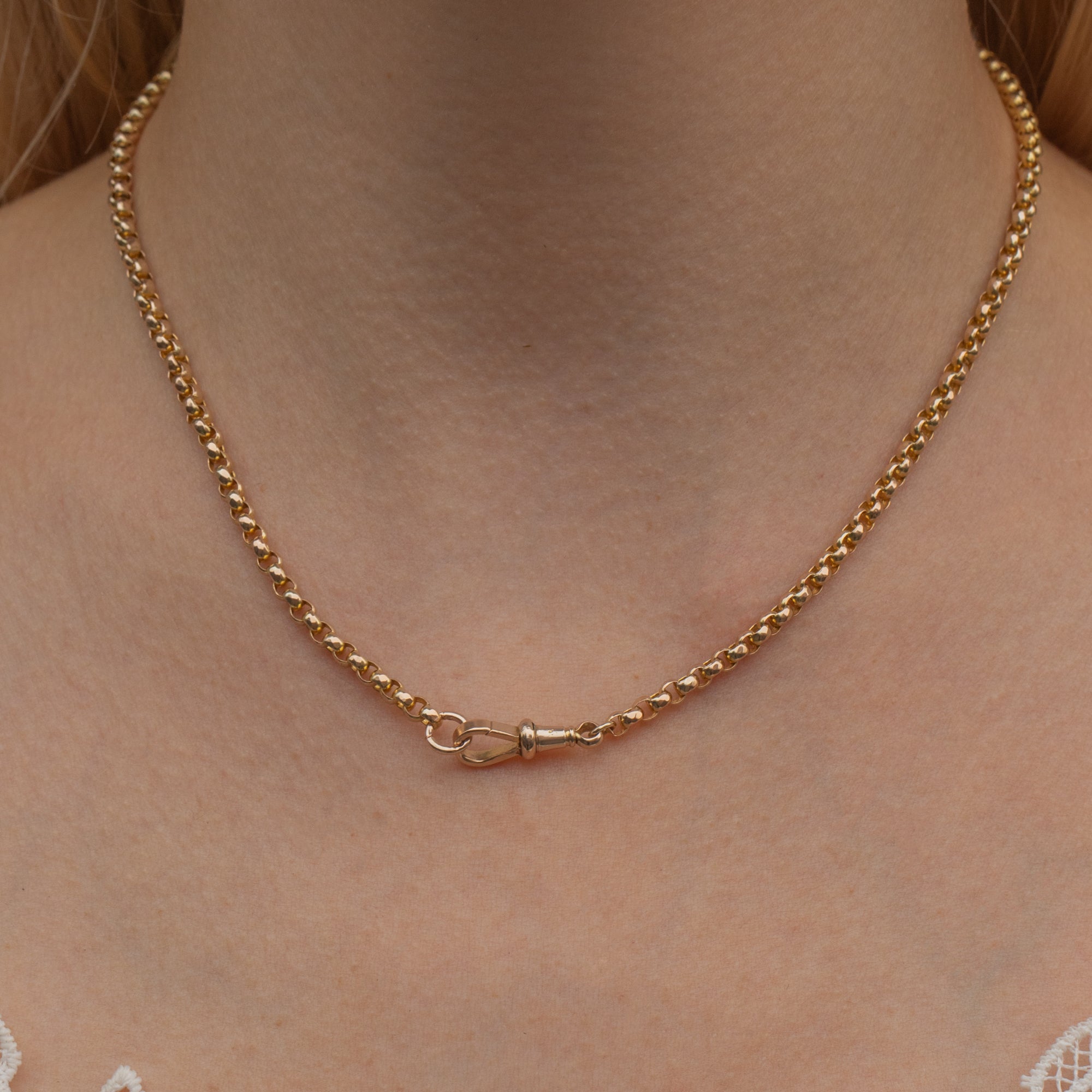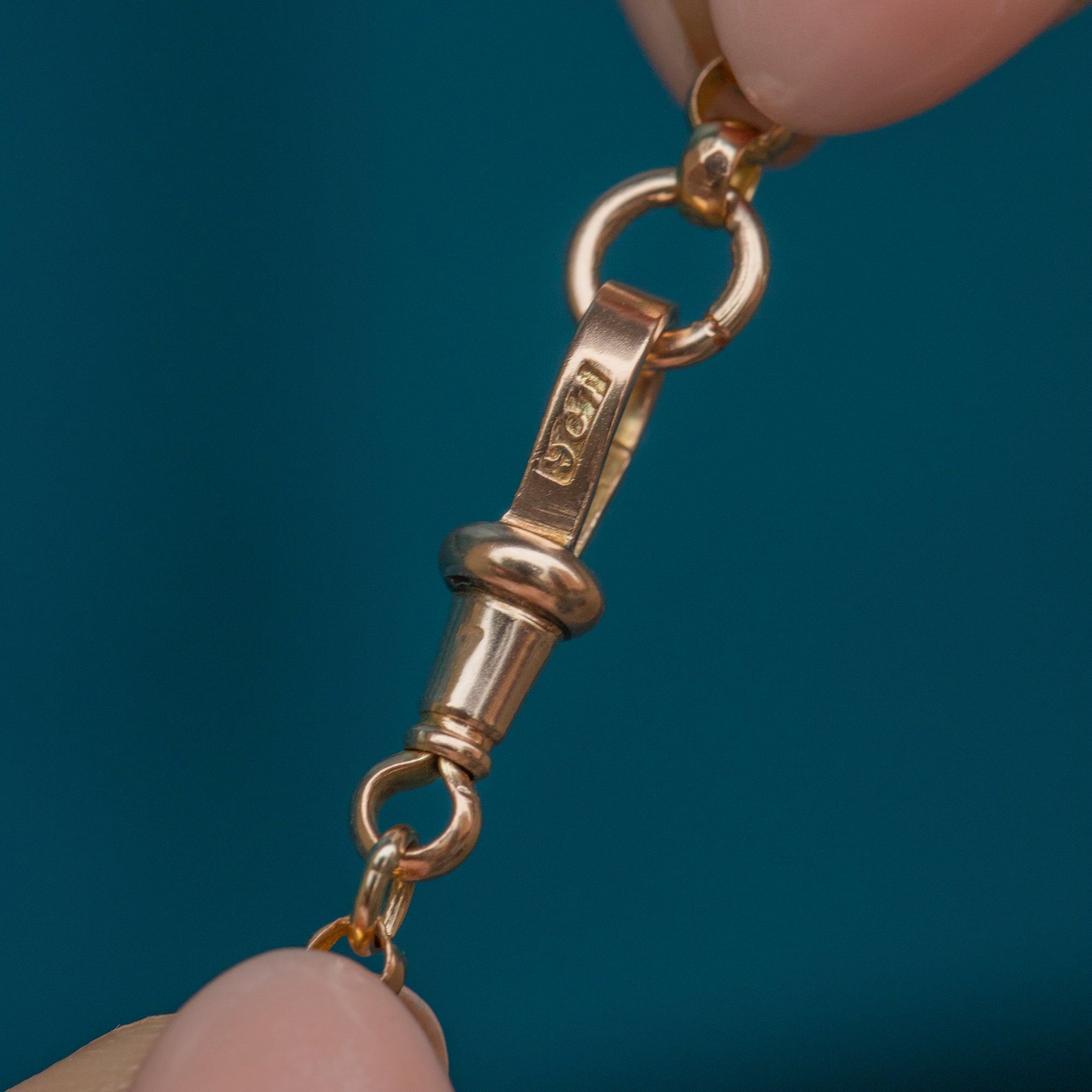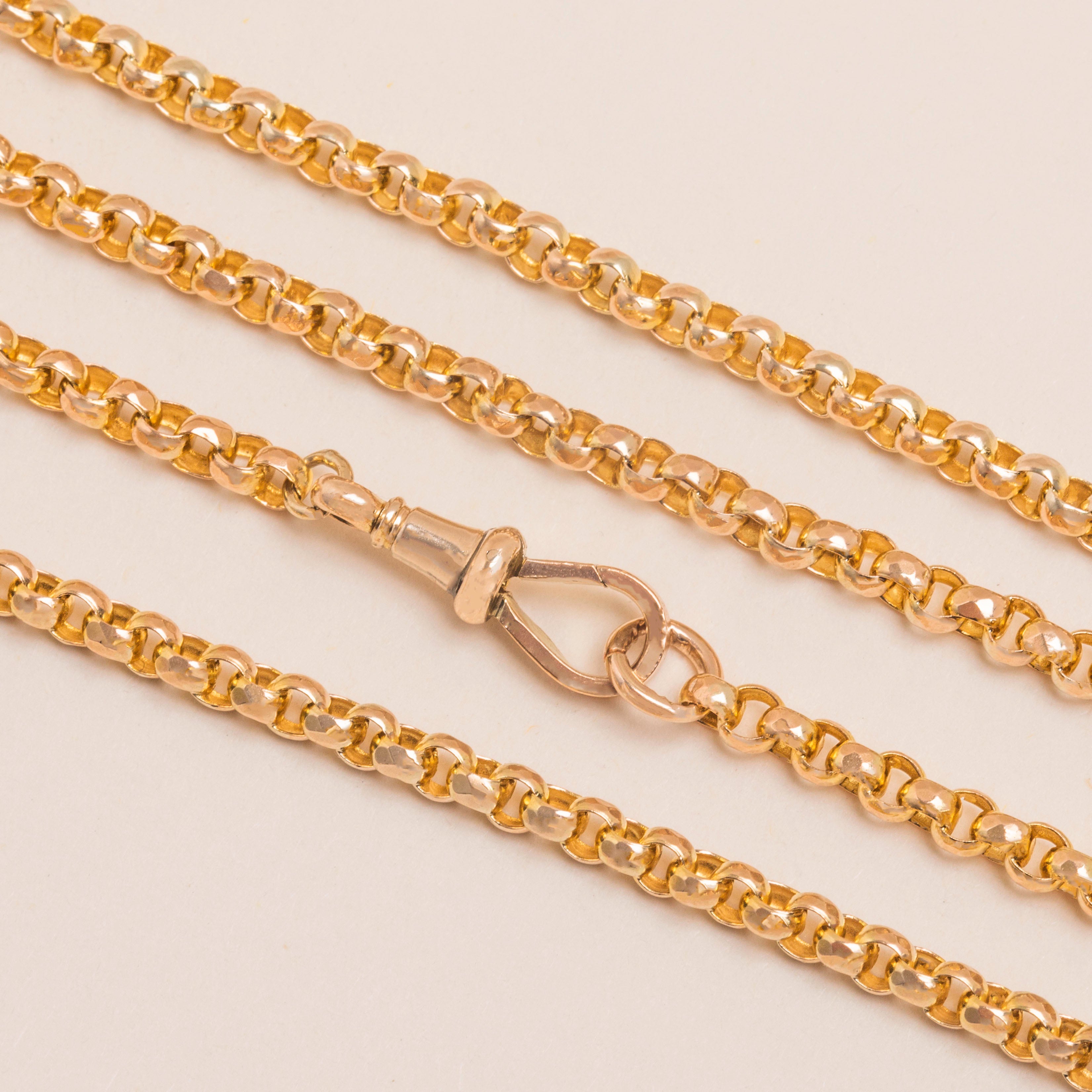 This Victorian 9ct Gold chain has wonderful faceted belcher links and is fastened with a much-desired dog-clip clasp from which you could suspend a pendant or charm. Once in your possession, you'll never want to take her off!