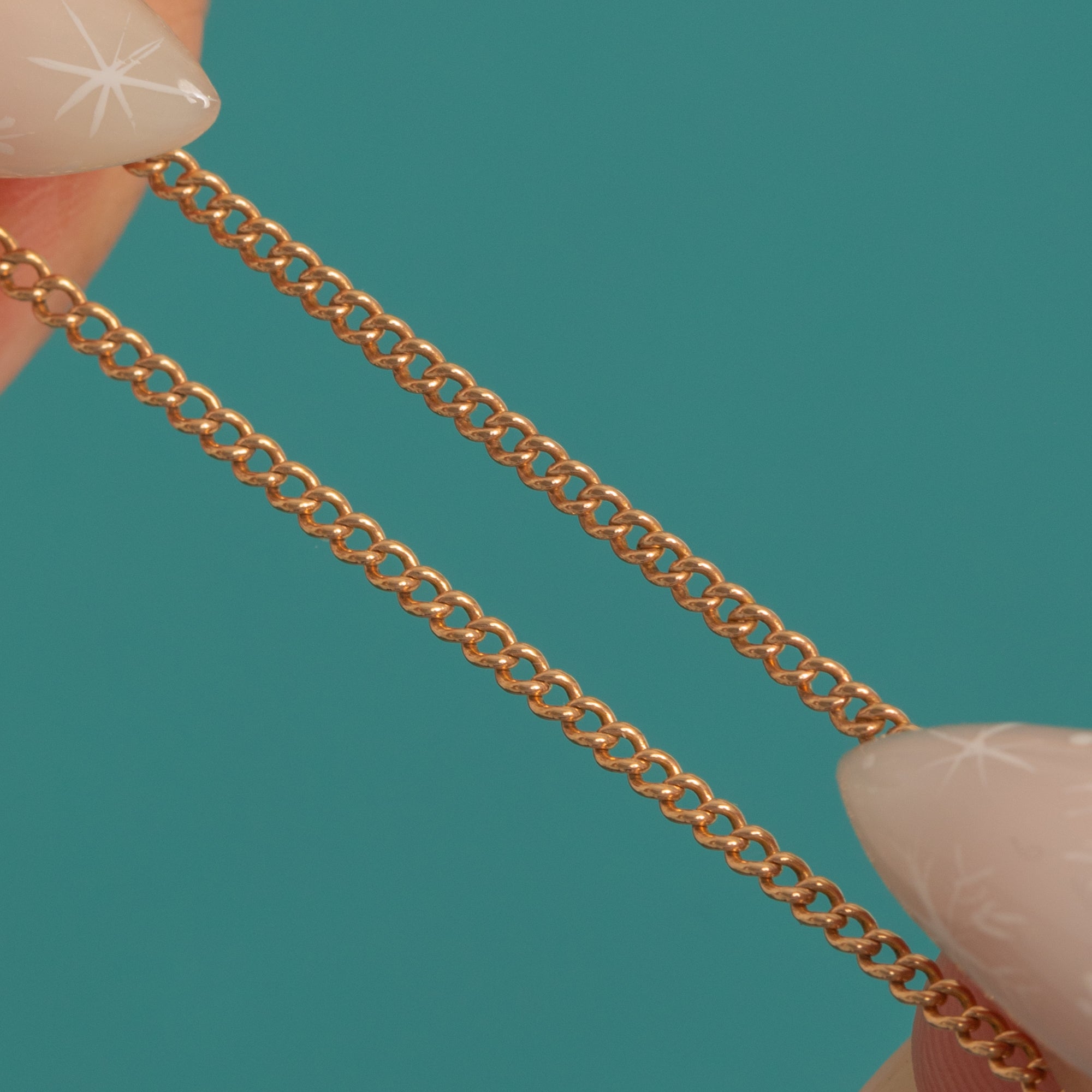 A refined Victorian 9ct Gold pendant chain with delicately proportioned curb links that glimmer with a warm, slightly rosy hue. Minimal and elegant, it wears beautifully alone or as the perfect companion for your favourite pendant.