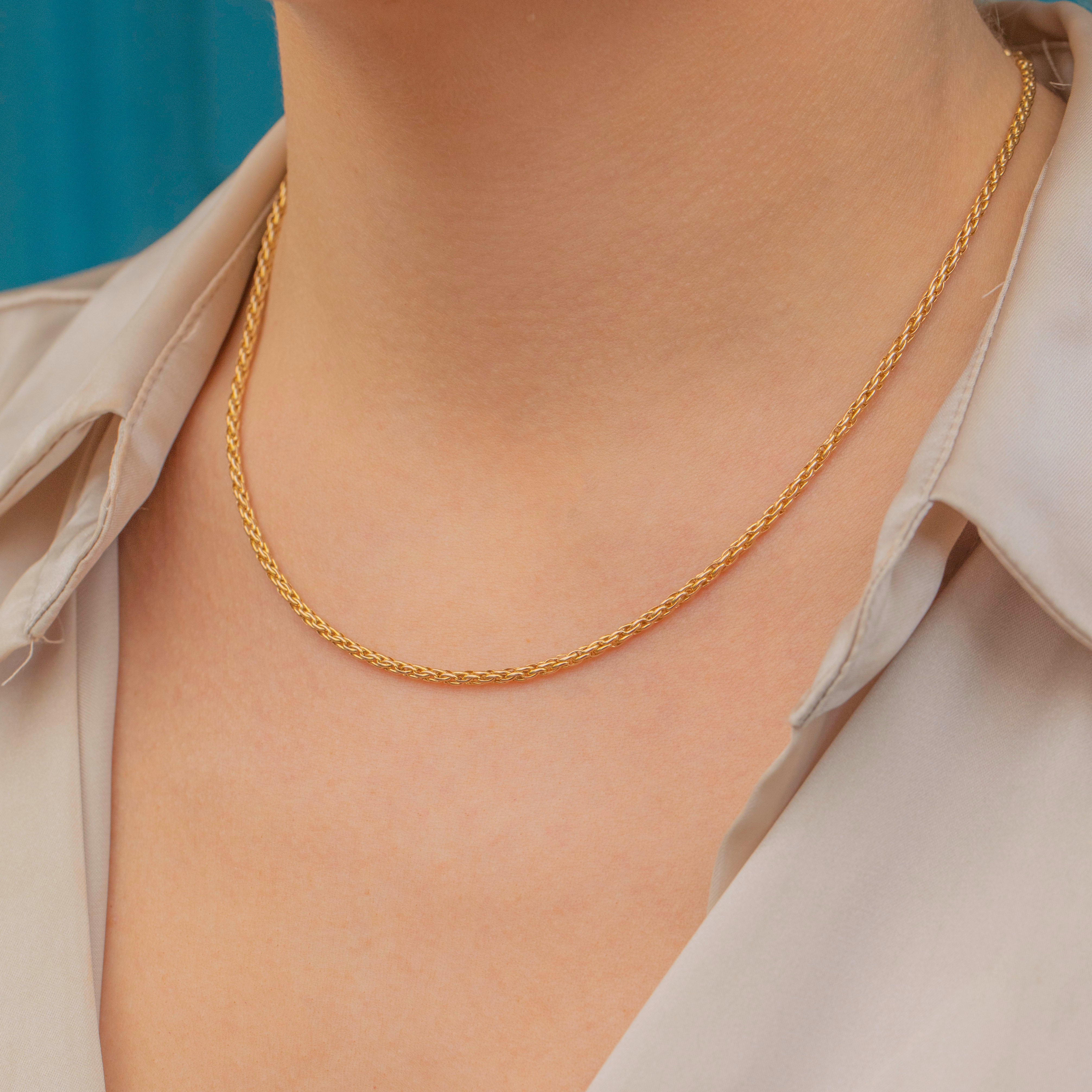 EXCELLENT. This antique 15ct Gold fancy double belcher link chain is in excellent condition. The links are uniform and securely connected, with an even buttery hue trickling through each one. The later added 18ct Gold bolt-ring is in perfect working condition and has been soldered for safety and security.