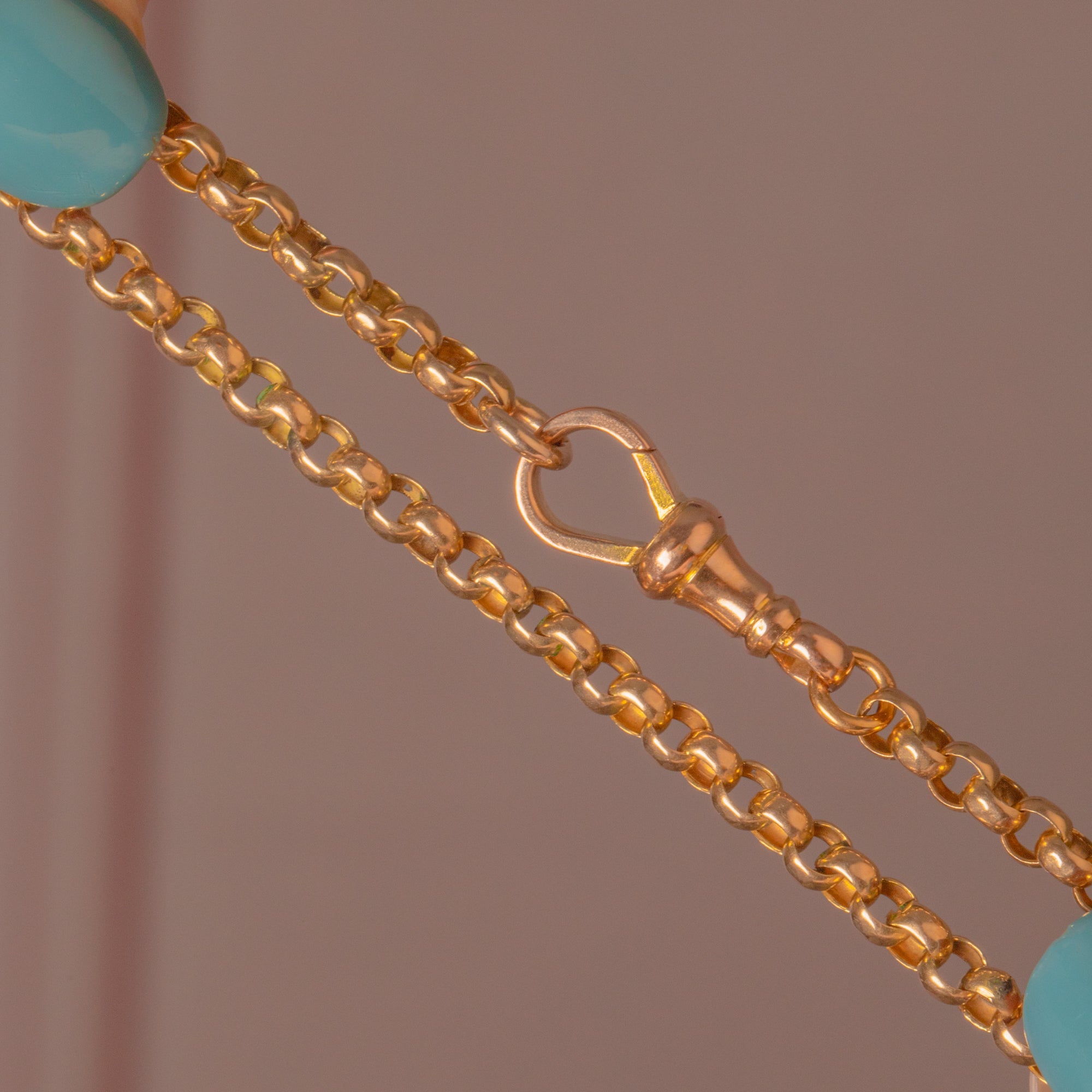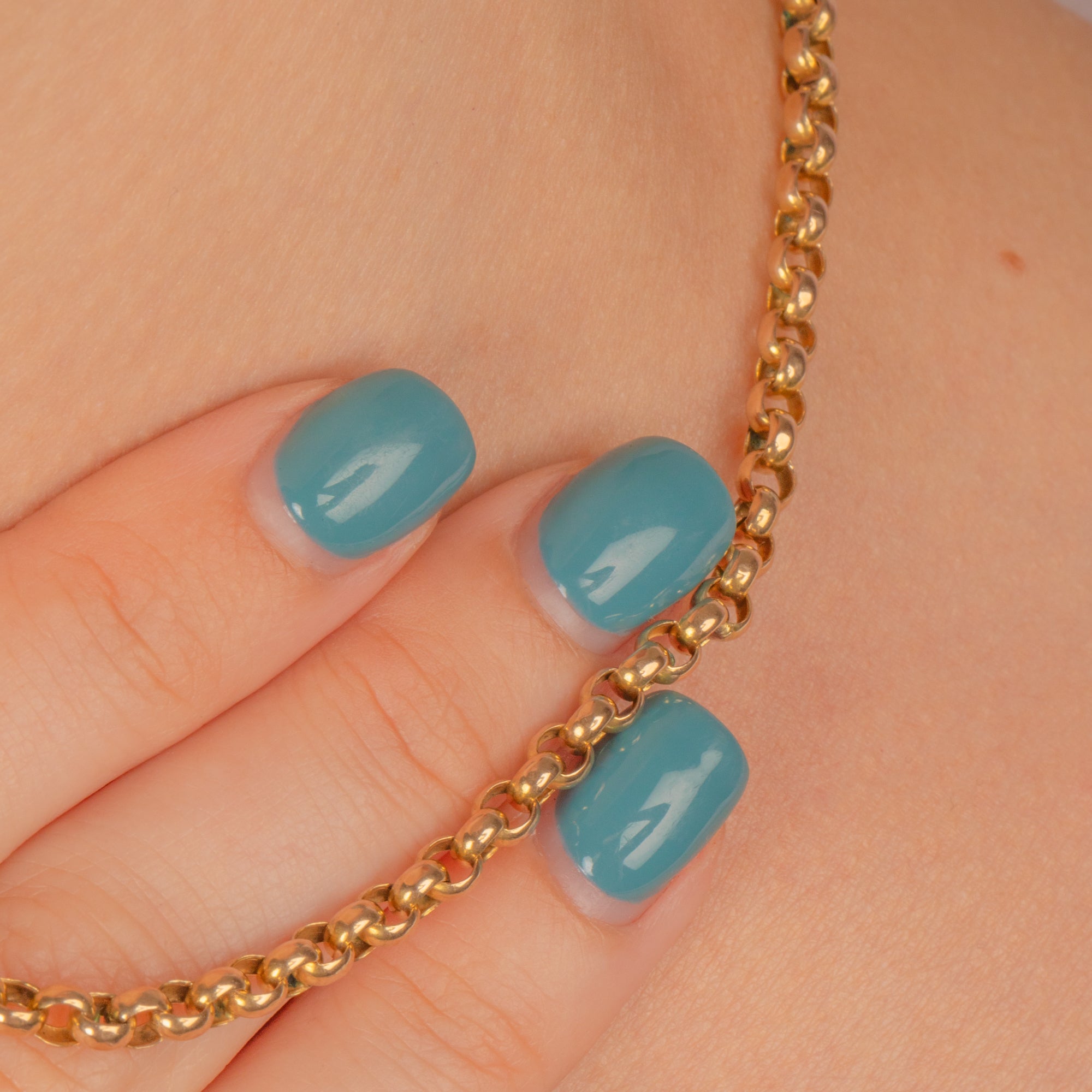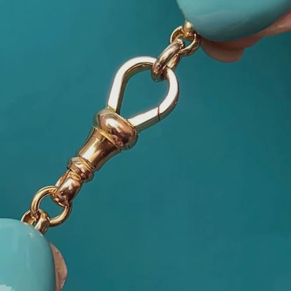 The colour of this Victorian Gold chain is delightful. Akin to fresh honey, the richness of these belcher links is difficult to find in contemporary jewellery. This Victorian Gold chain comes complete with an antique dog clip, so she can become the star of the show attending to all of your charm-holding needs!