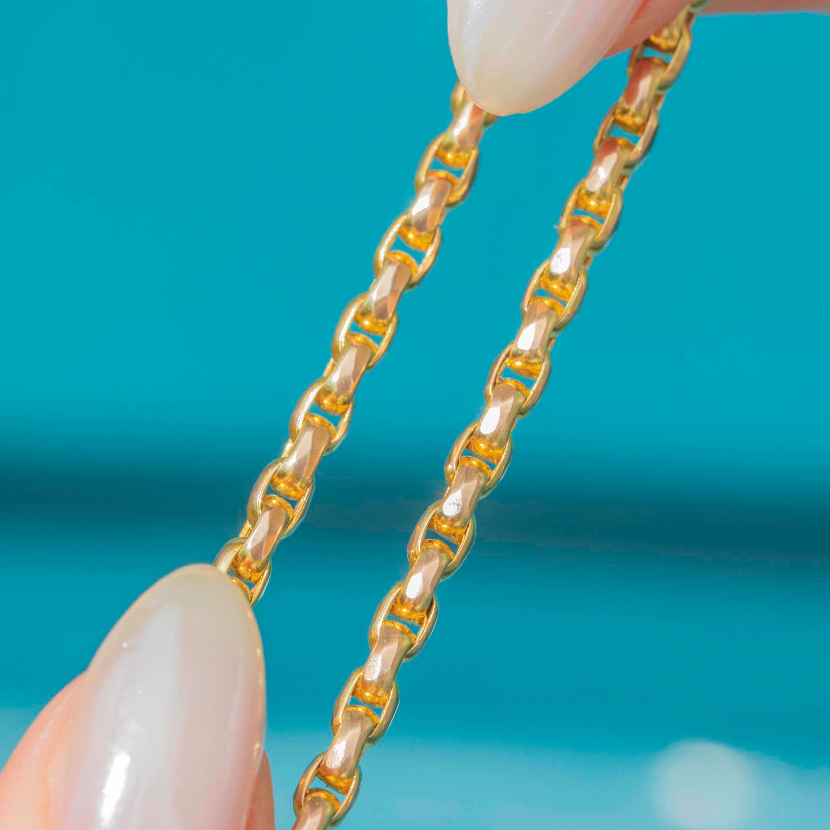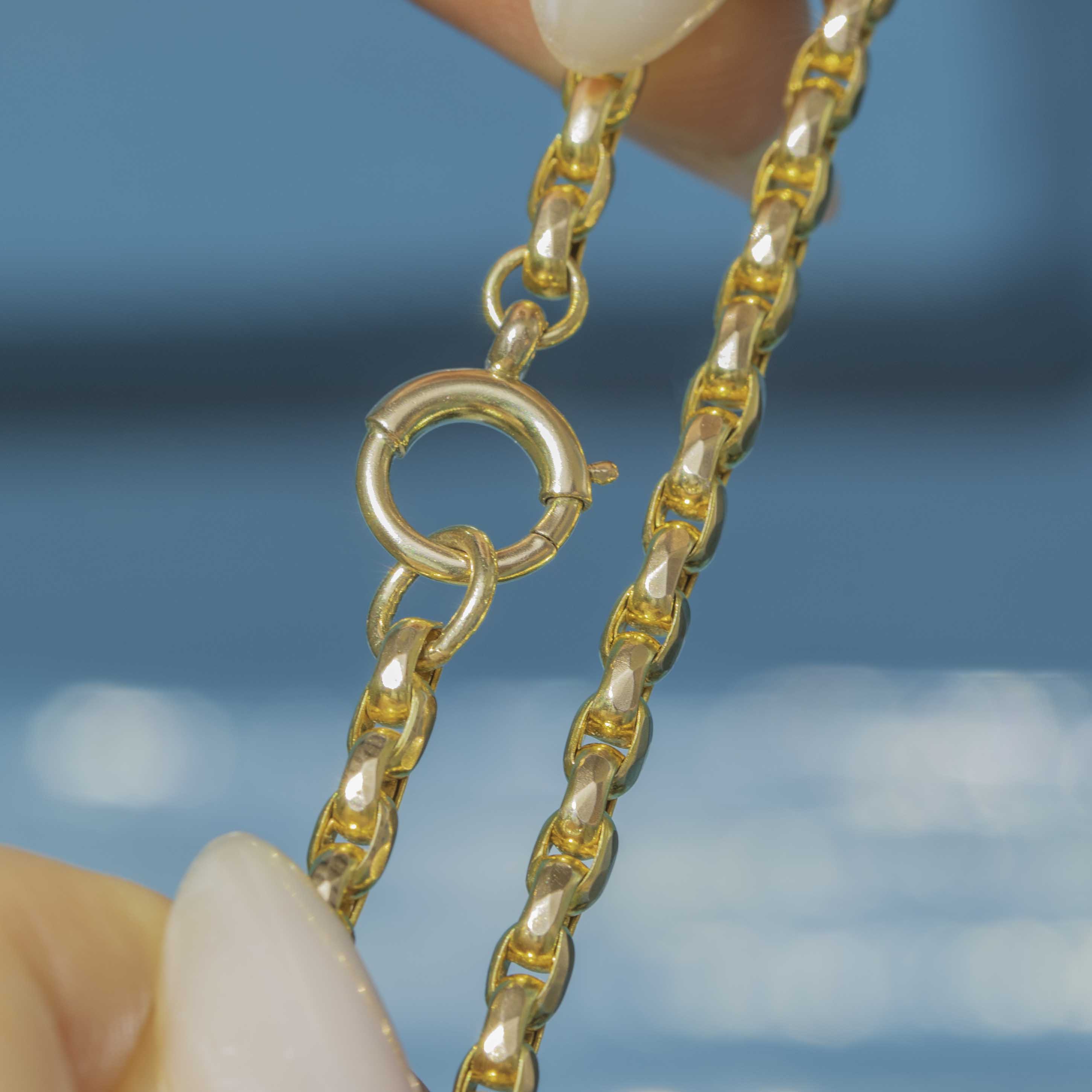 Bring some summer sunshine to your wardrobe with this Victorian belcher chain, crafted from over 10 grams of solid Gold! The 16" length is made up of faceted belcher links that will send Golden shimmers cascading across your décolletage.