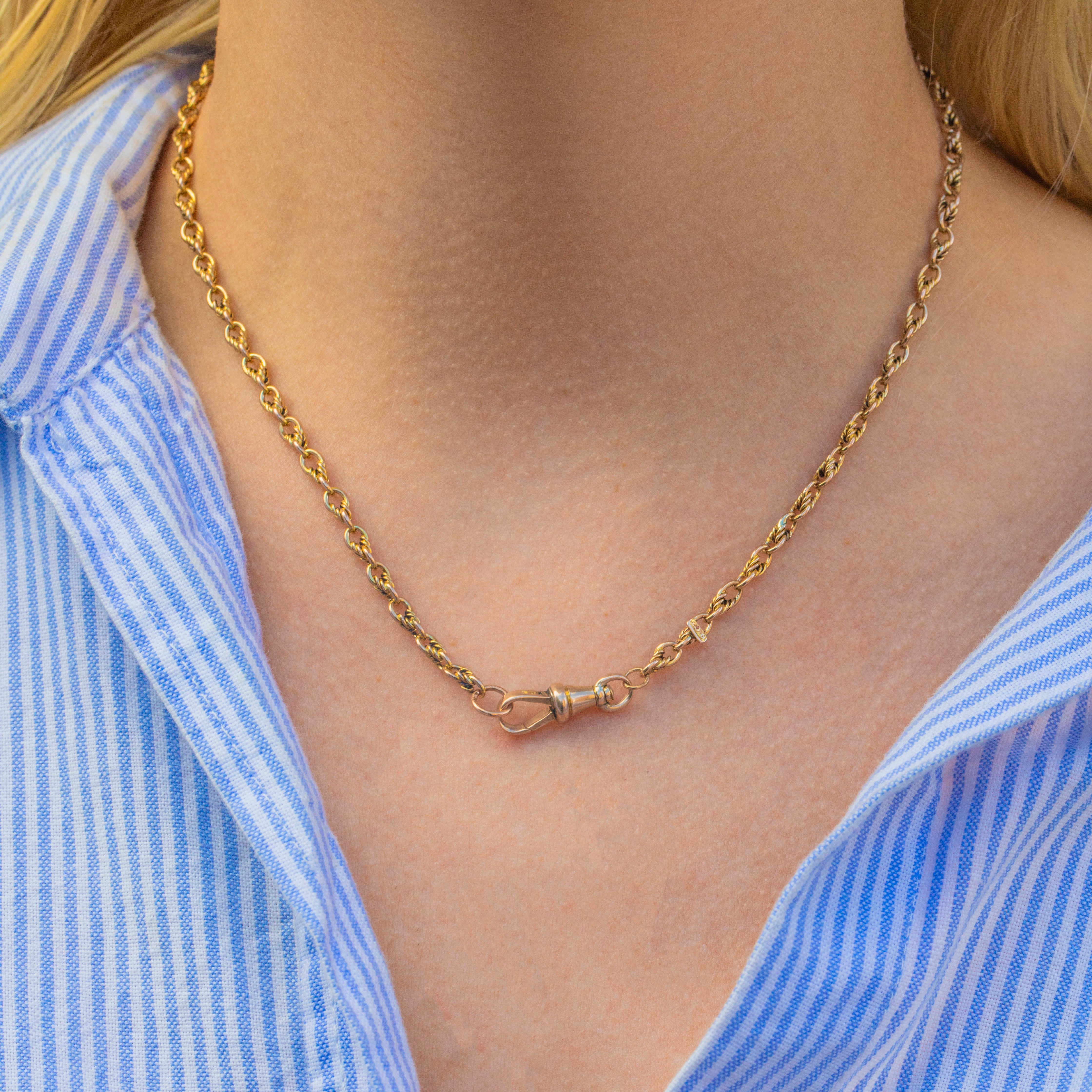 The Gold has a lovely buttery rosy hue that will bring subtle warmth to every outfit and the authentic antique dog-clip is ready to attend to all your charm-holding needs. With a 9CT stamp on the dog-clip and a 9CT tag on the chain, this is a high-quality piece of Victorian jewellery and would make the perfect heirloom!