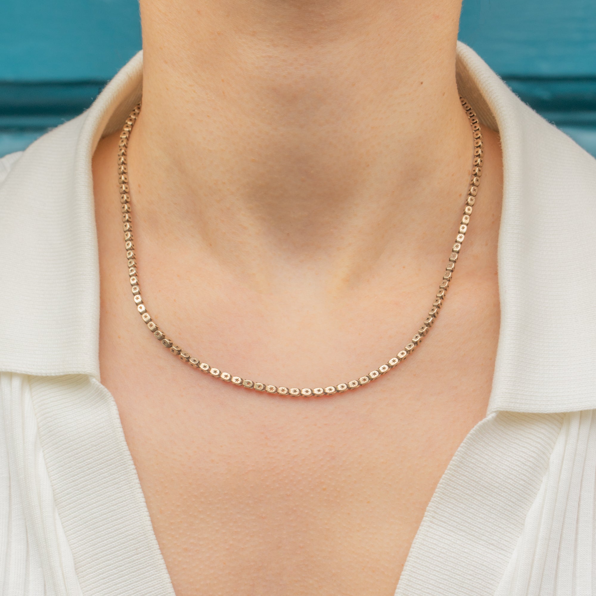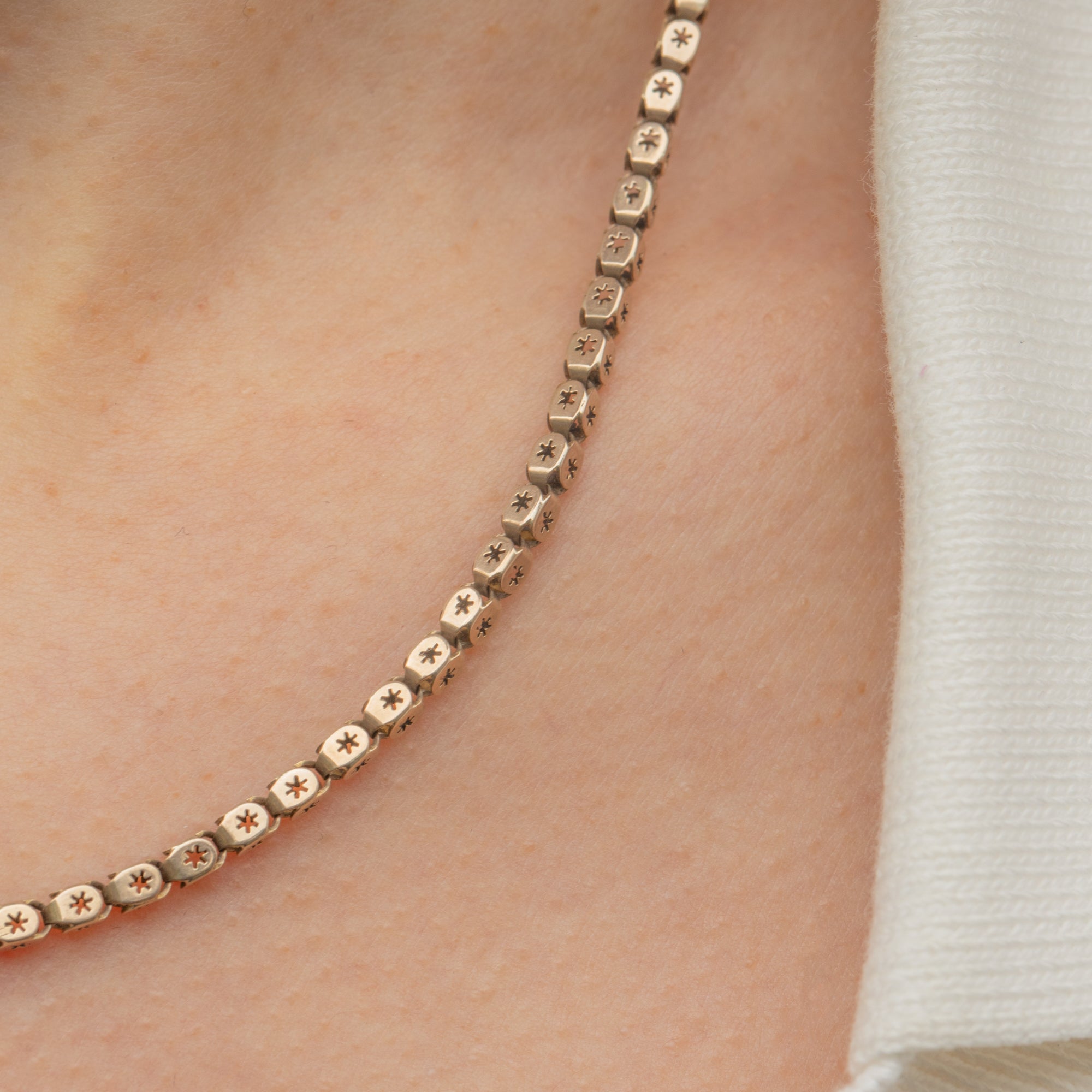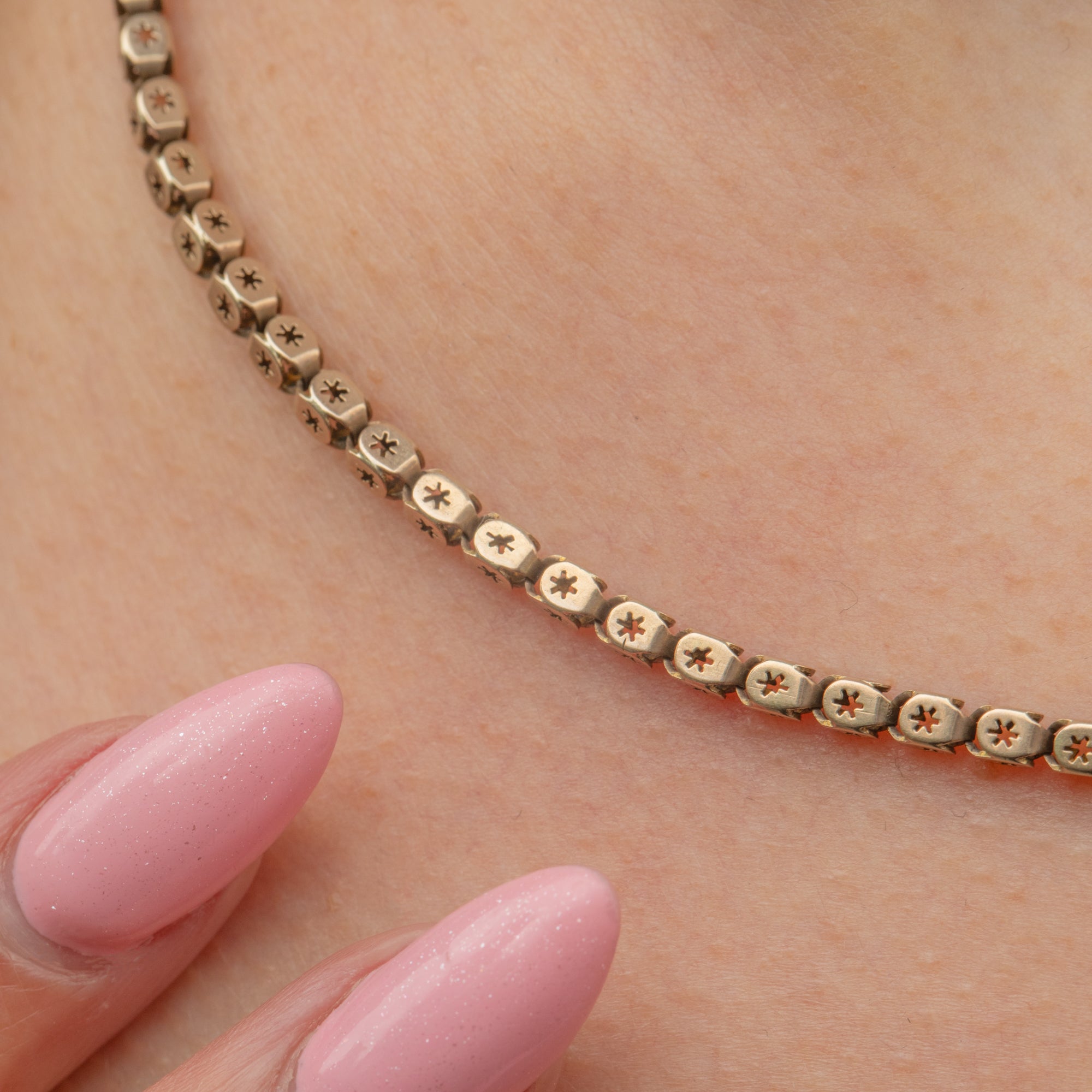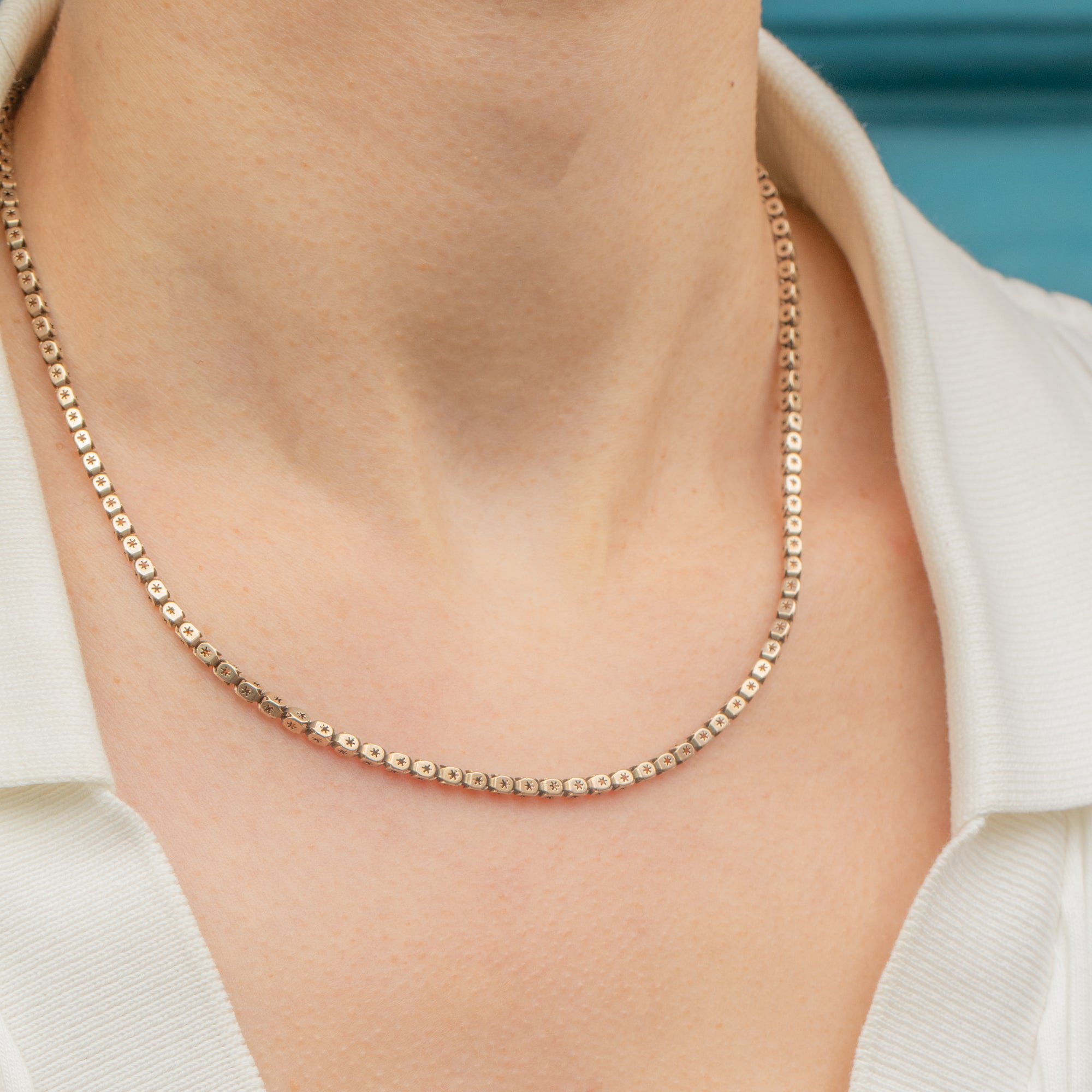 Pierced chains are one of the most sought-after styles of Victorian chains, and you can certainly see why! Promising texture, elegance and something a little different, this antique star pierced box chain will make an impressive addition to your necklace stack!