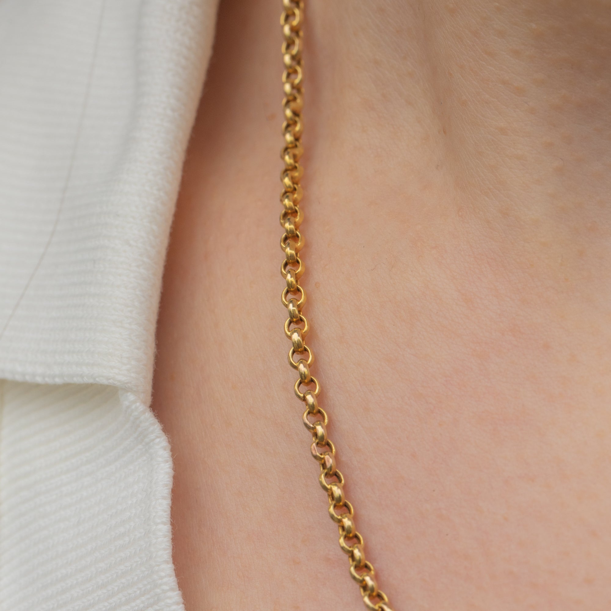 Victorian Gold chains are undeniably versatile, and this belcher chain is just that. The glossy belcher links are crafted from buttery 9ct yellow Gold, she is the ideal piece for suspending charms and pendants, or for layering with your other Golden goodies.