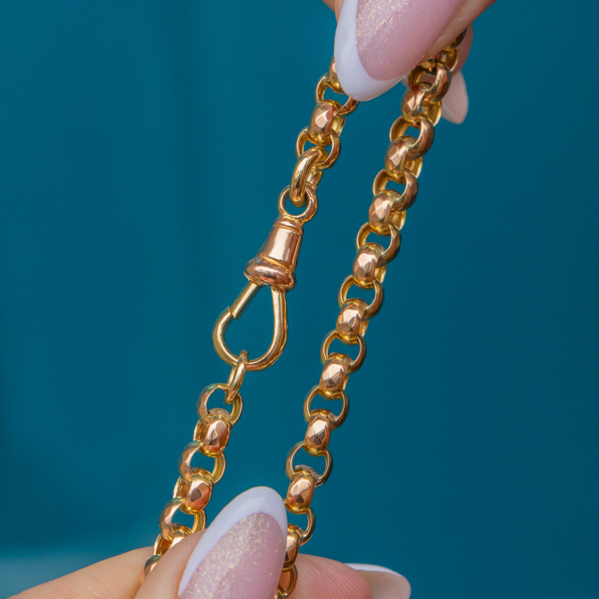 EXCELLENT: This chunky antique 9ct Gold belcher chain is in excellent condition. The links are uniform and secure, promising many more years of wear. With her dog-clip in perfect working order, this Victorian belcher chain is ready to be worn!