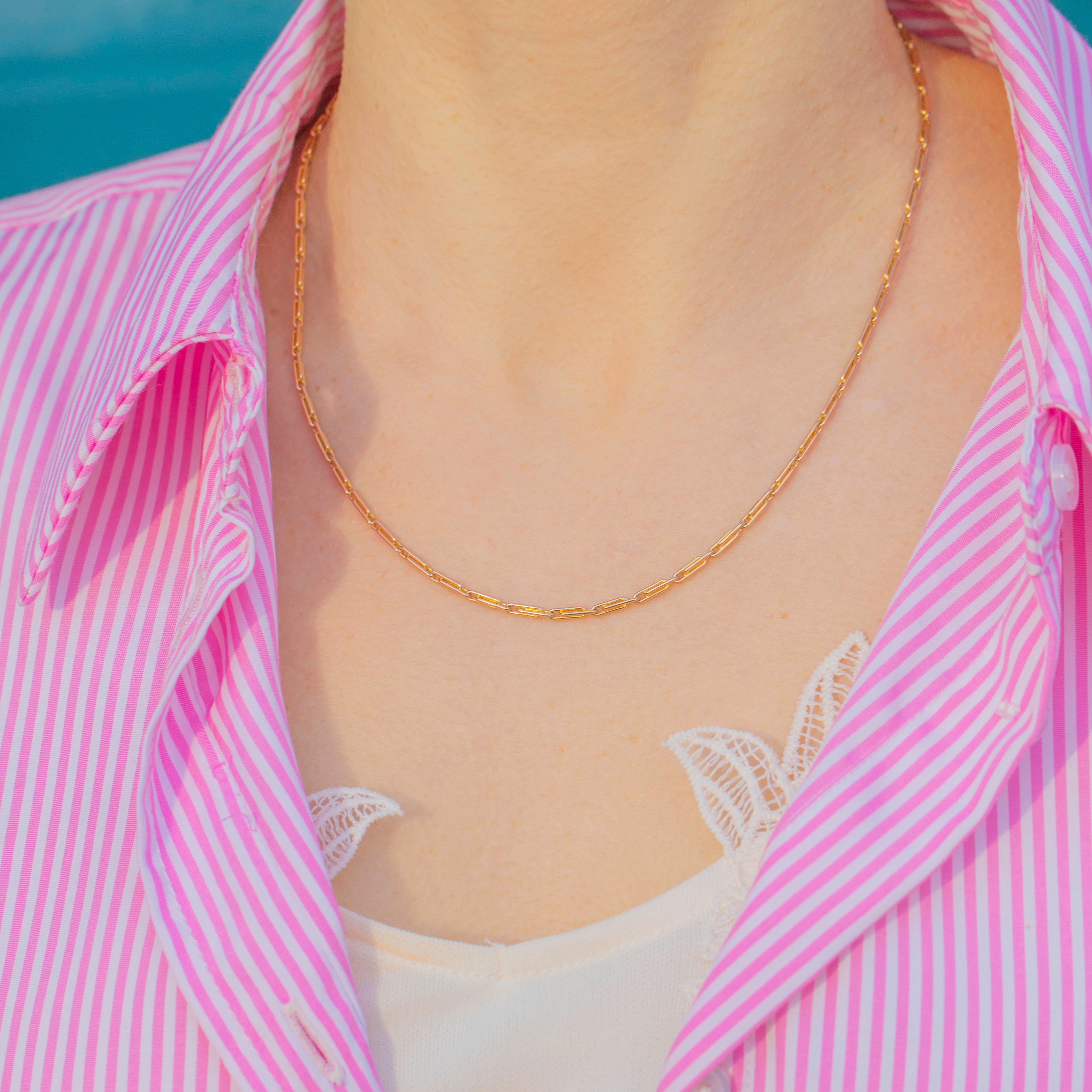 Add a luxurious flash of Gold to every outfit with this antique 15ct Gold paperclip link chain! Crafted from 10 grams of solid 15ct Gold and finished with an 18ct Gold bolt-ring, this Victorian chain will make a versatile addition to your collection.