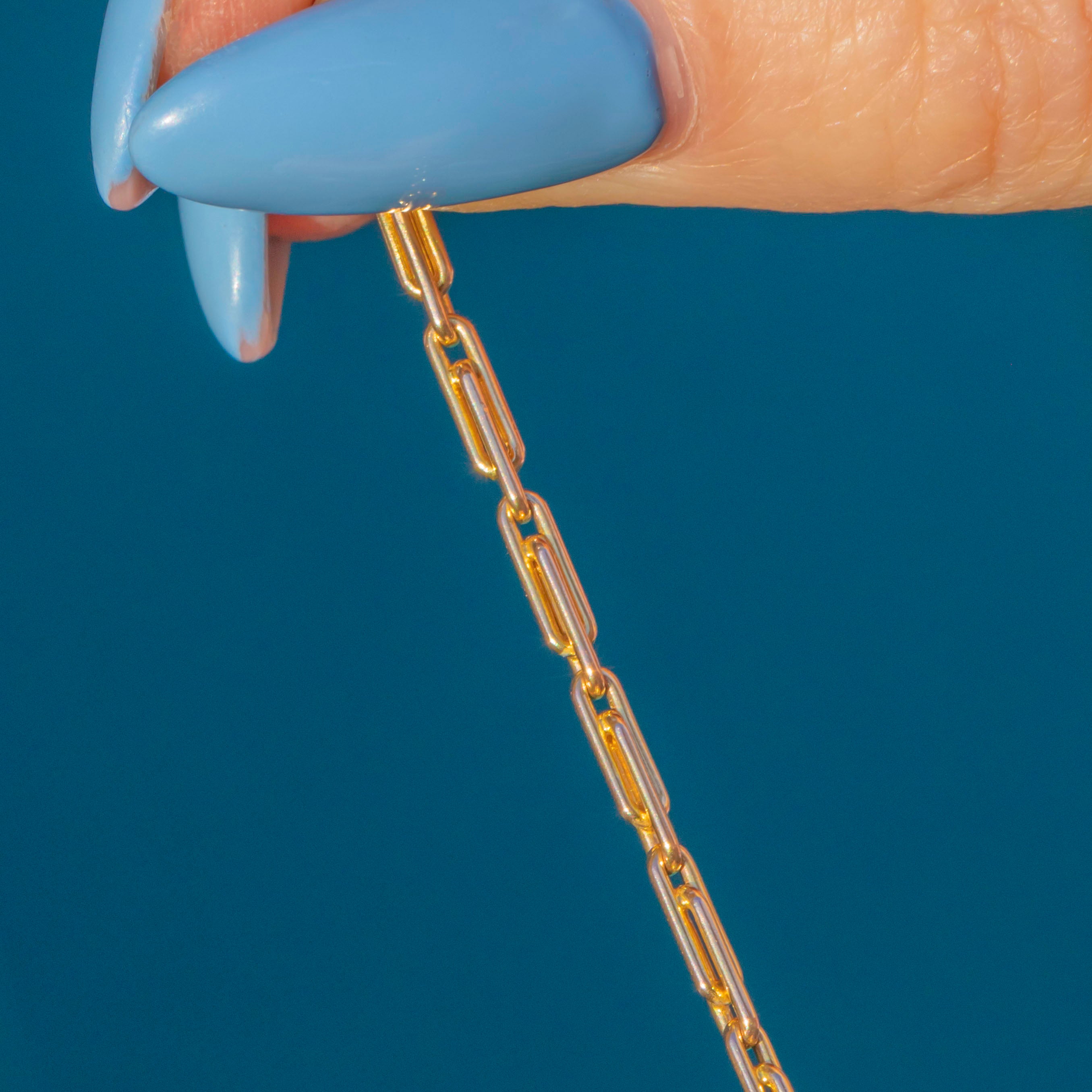 Exquisitely hand-crafted paperclip links make up the 18-inch length of this decorative chain, bringing texture and opulence to your décolletage. Whether you choose to style it as a standalone piece, suspend a charm from its bolt ring for a personal touch, or layer it with your other favourite chains, this Victorian 15ct Gold chain will become your go-to piece!