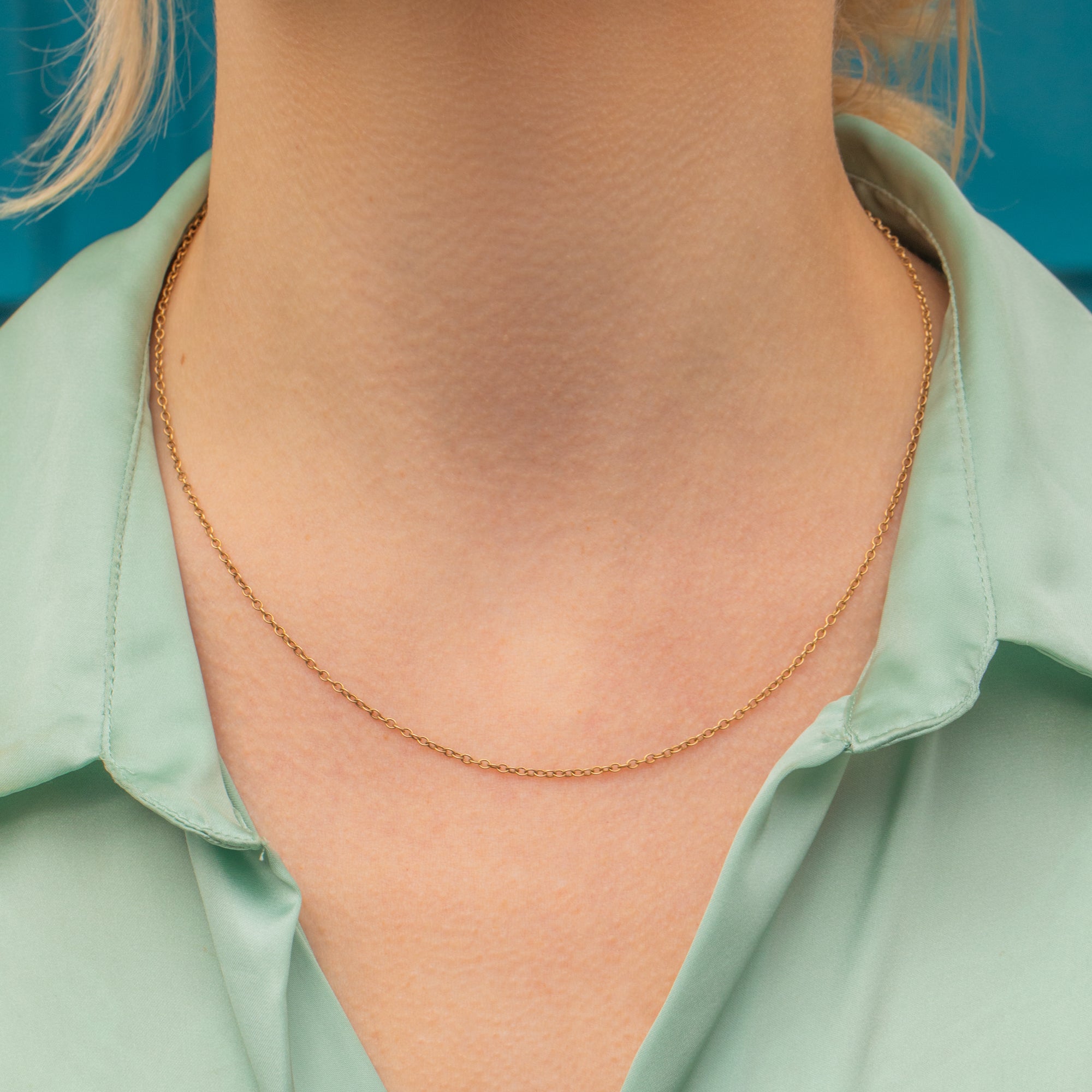 This 17.5" antique 9ct Gold skinny pendant chain is the ideal everyday item! Victorian Gold chains are undeniably versatile, and she is no exception. At a desirable length of 17.5", this Victorian Gold chain is the ideal go-to piece to suspend your daintier pendants.