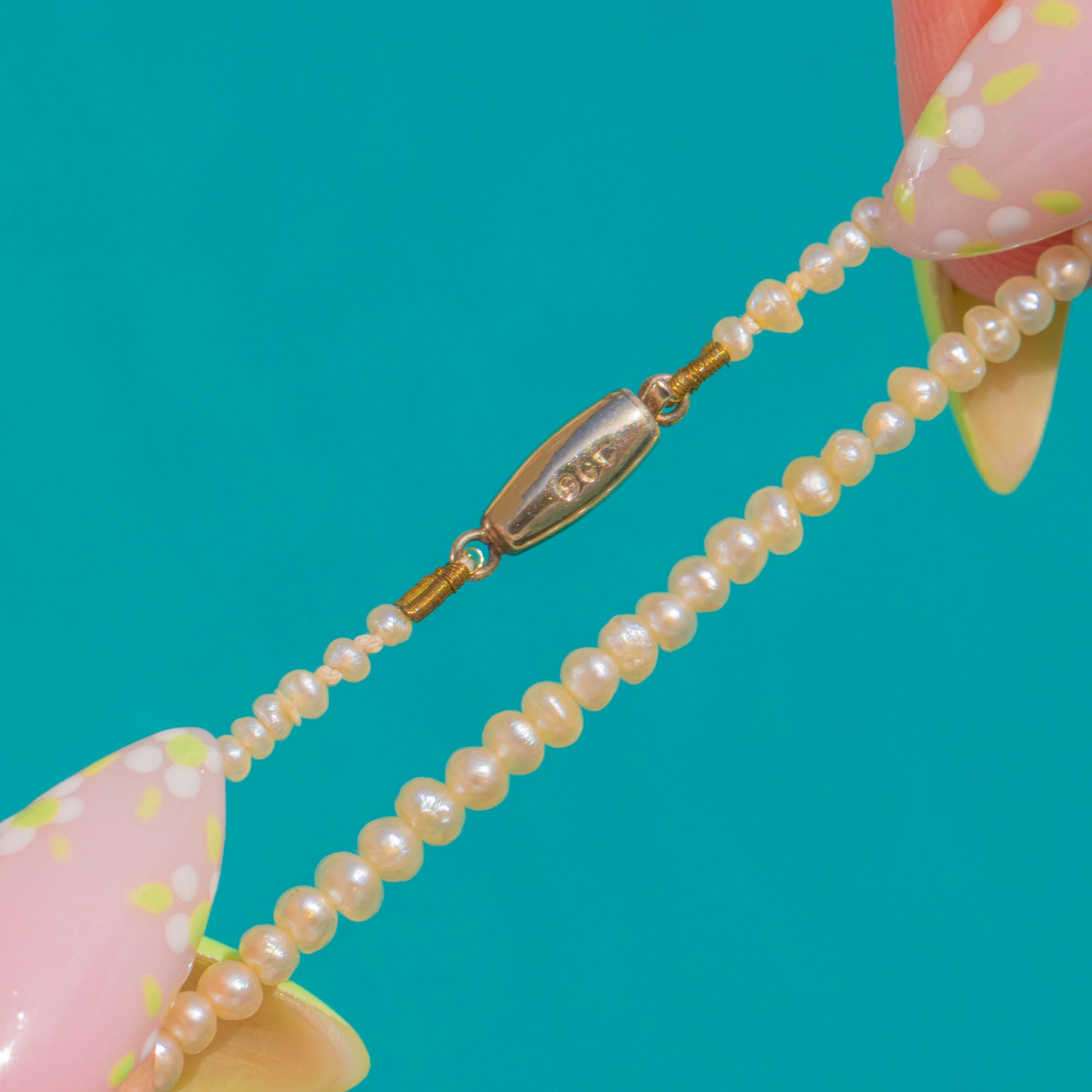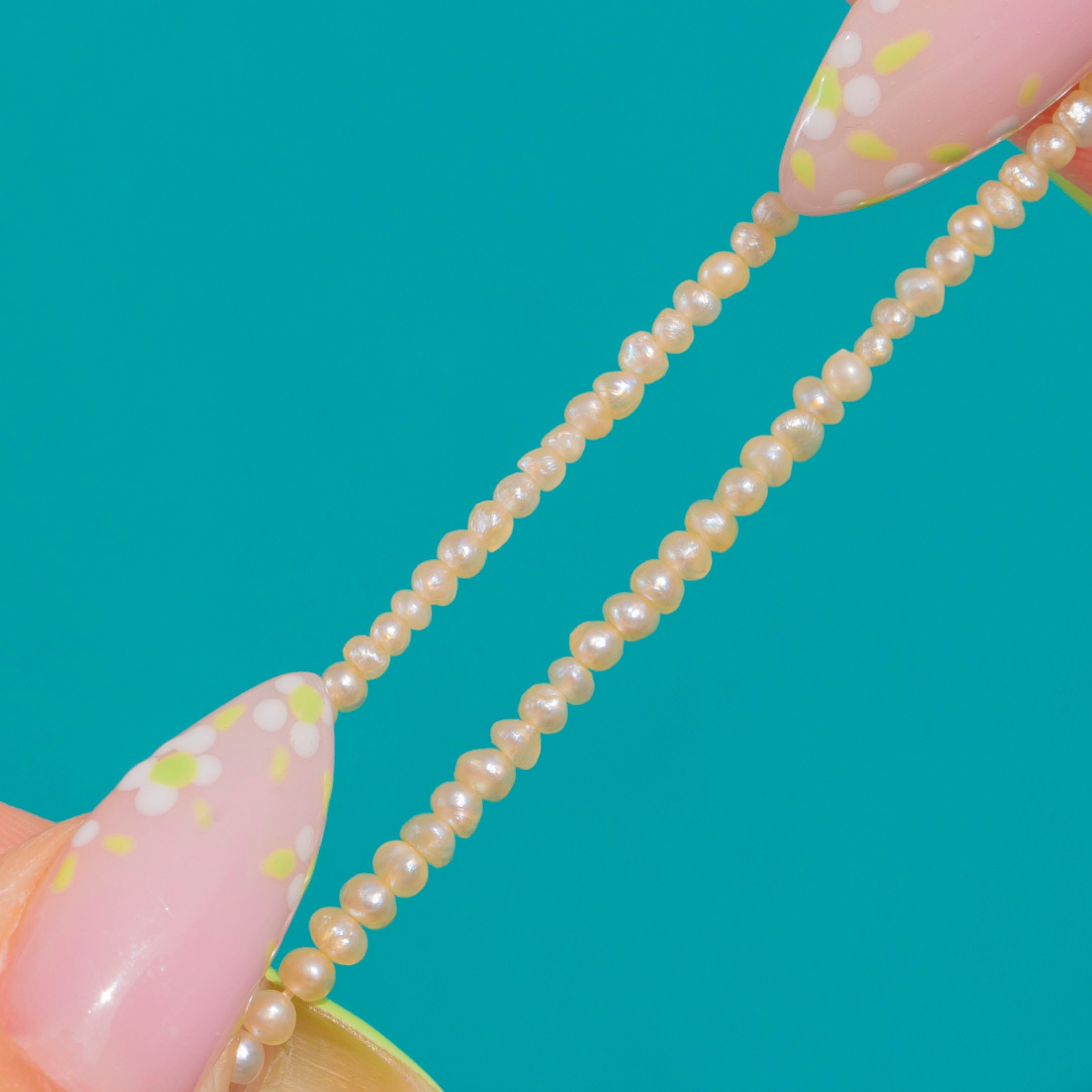 Delicate and refined, this Edwardian graduated strand showcases Natural Pearls that taper from petite seed sizes to softly rounded gems, creating a graceful, feminine line around the neck. Their warm cream tone with gentle rosé overtones and elegant lustre brings a whisper of light to any look, while the subtle organic nuances of each pearl add character and charm.