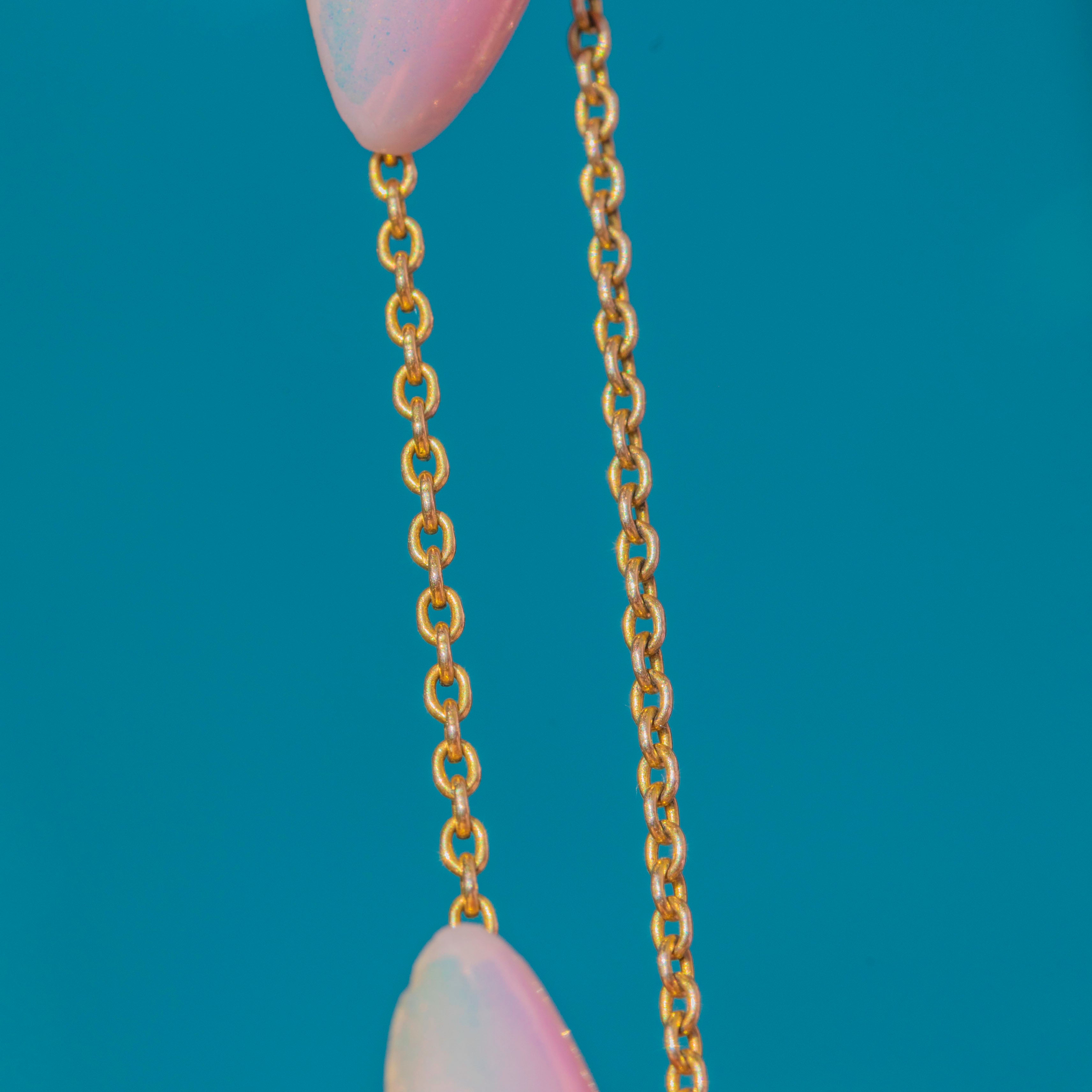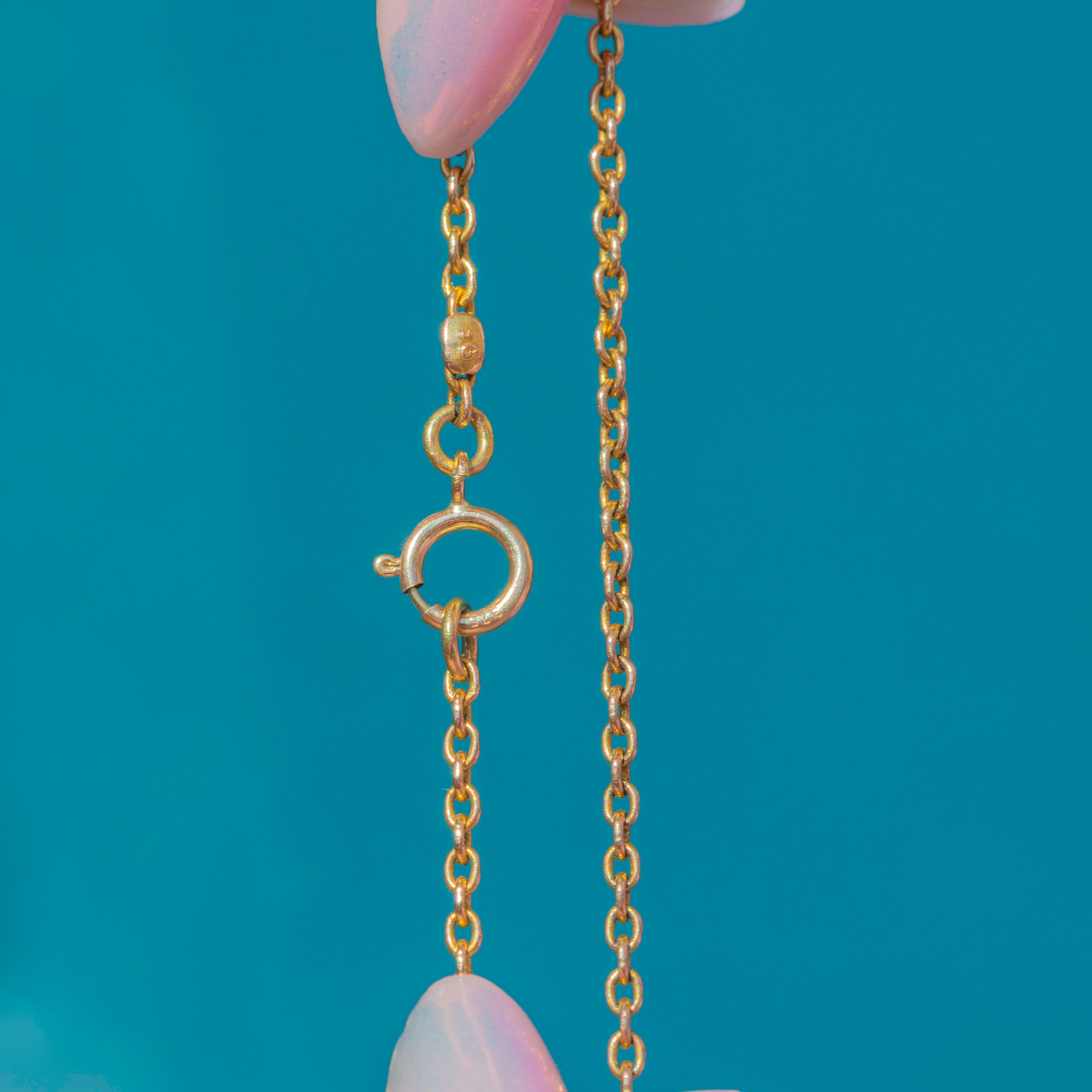 This antique pendant chain boasts saturated 9ct Gold links, radiating a lovely warmth as it drapes across your décolletage.