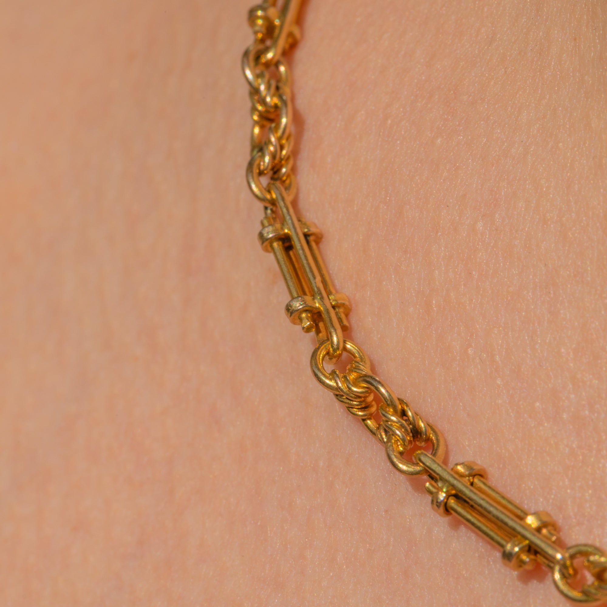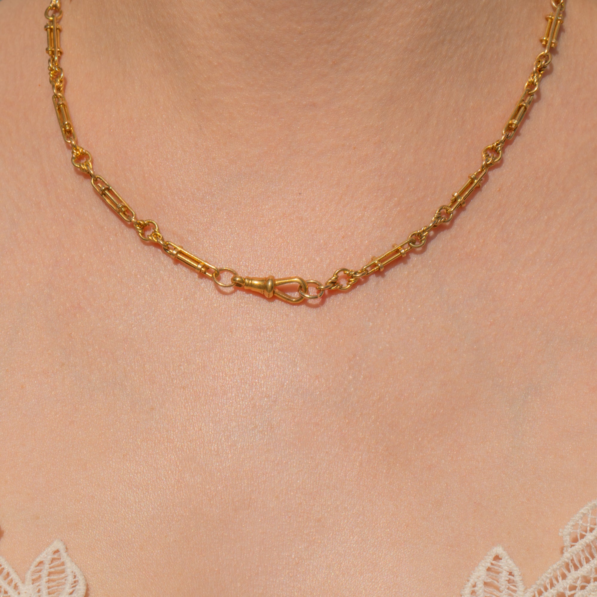 17" Antique 18ct Gold Lover's Knot Chain with Dog-Clip, 22.3g