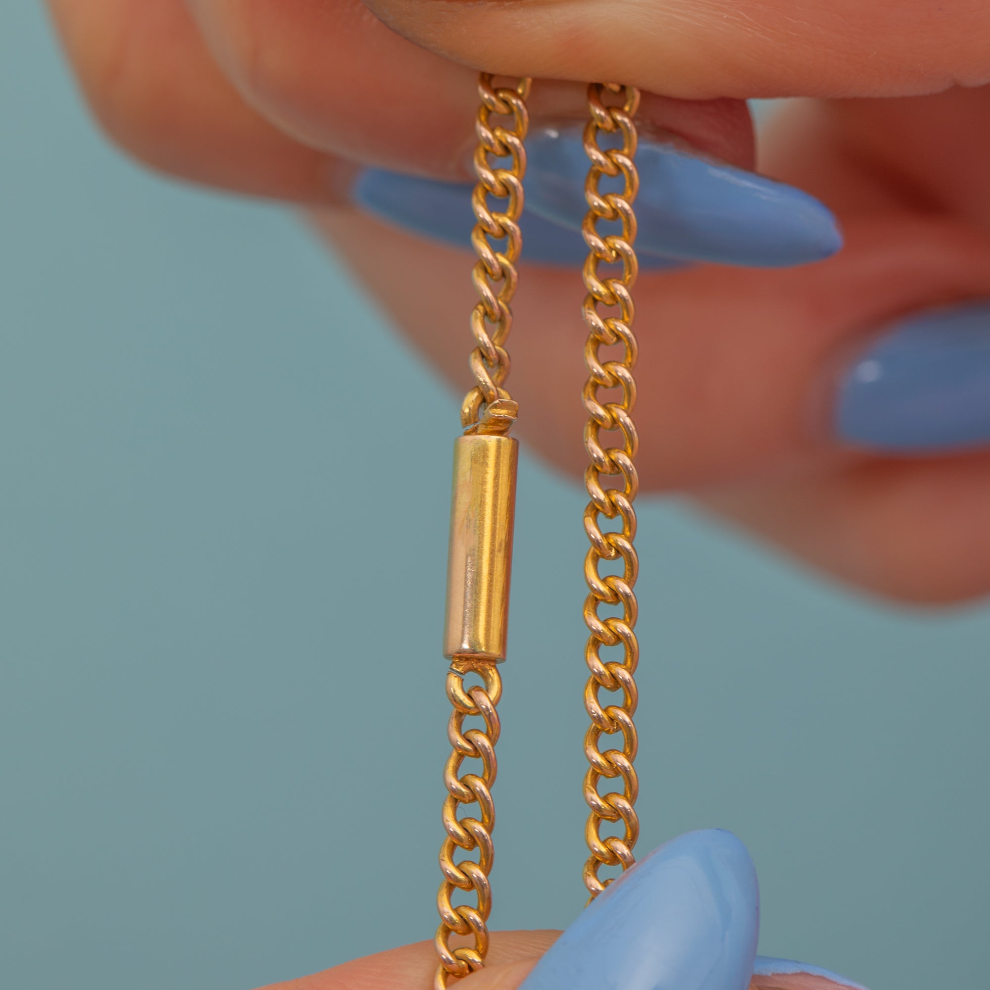 Each curb link is neatly connected, radiating warmth and flowing like liquid Gold as she adorns your neck. You will never tire of this Victorian Gold chain being part of your antique jewellery collection!