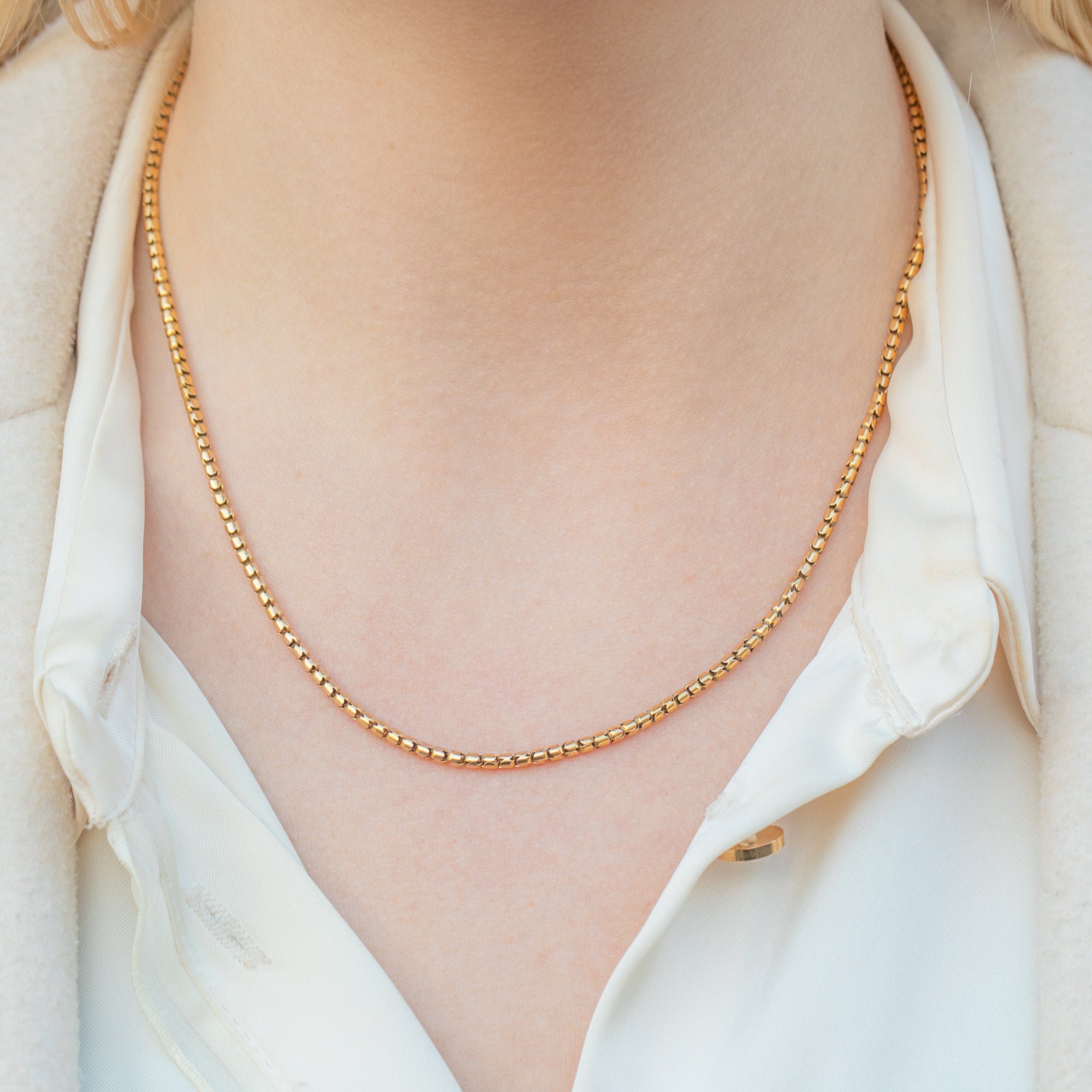 Wonderfully versatile, this antique snake chain is a glossy delight and can be worn as a standalone piece to add a satisfying flash of Gold to your attire, be stacked amongst your other favourite chains, or have a charm suspended from its authentic Victorian bolt ring for the ultimate antique look!