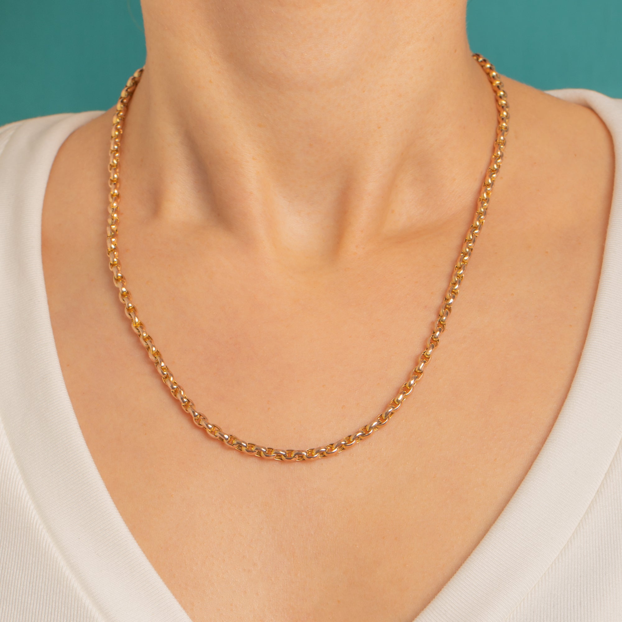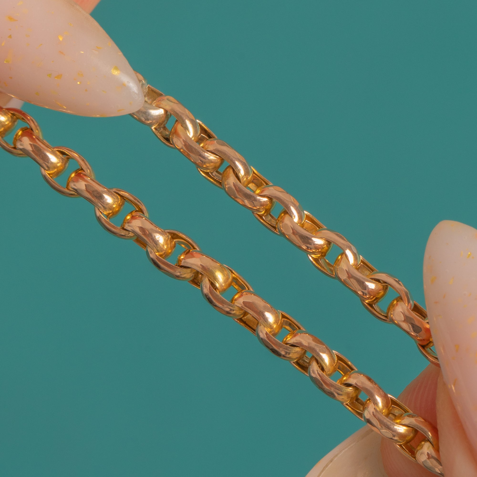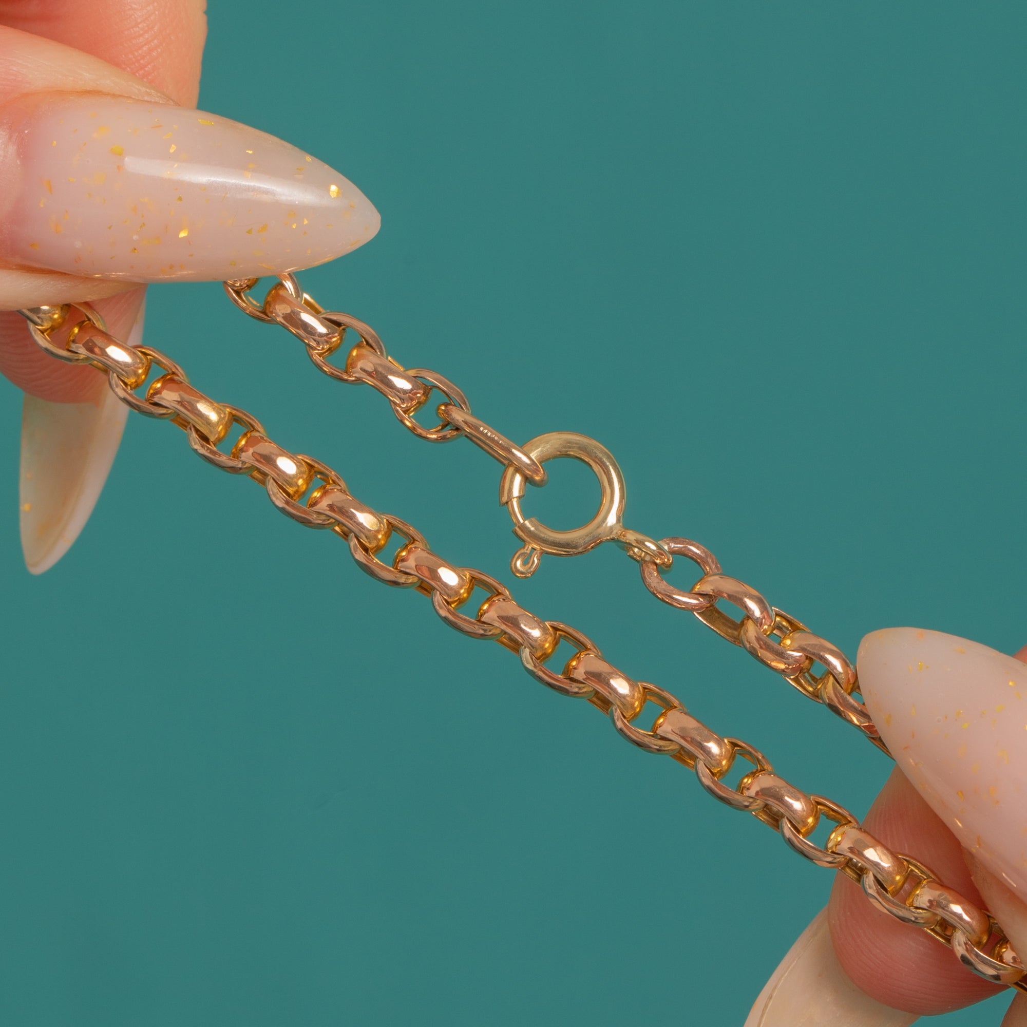 A timeless Victorian 9ct Gold Belcher chain, this 18" beauty showcases classic round links with a radiant high-polish glow. Understated yet luxurious, its sleek profile sits effortlessly at the collar and layers beautifully, fastening with a traditional Bolt ring clasp for that authentic period finish.