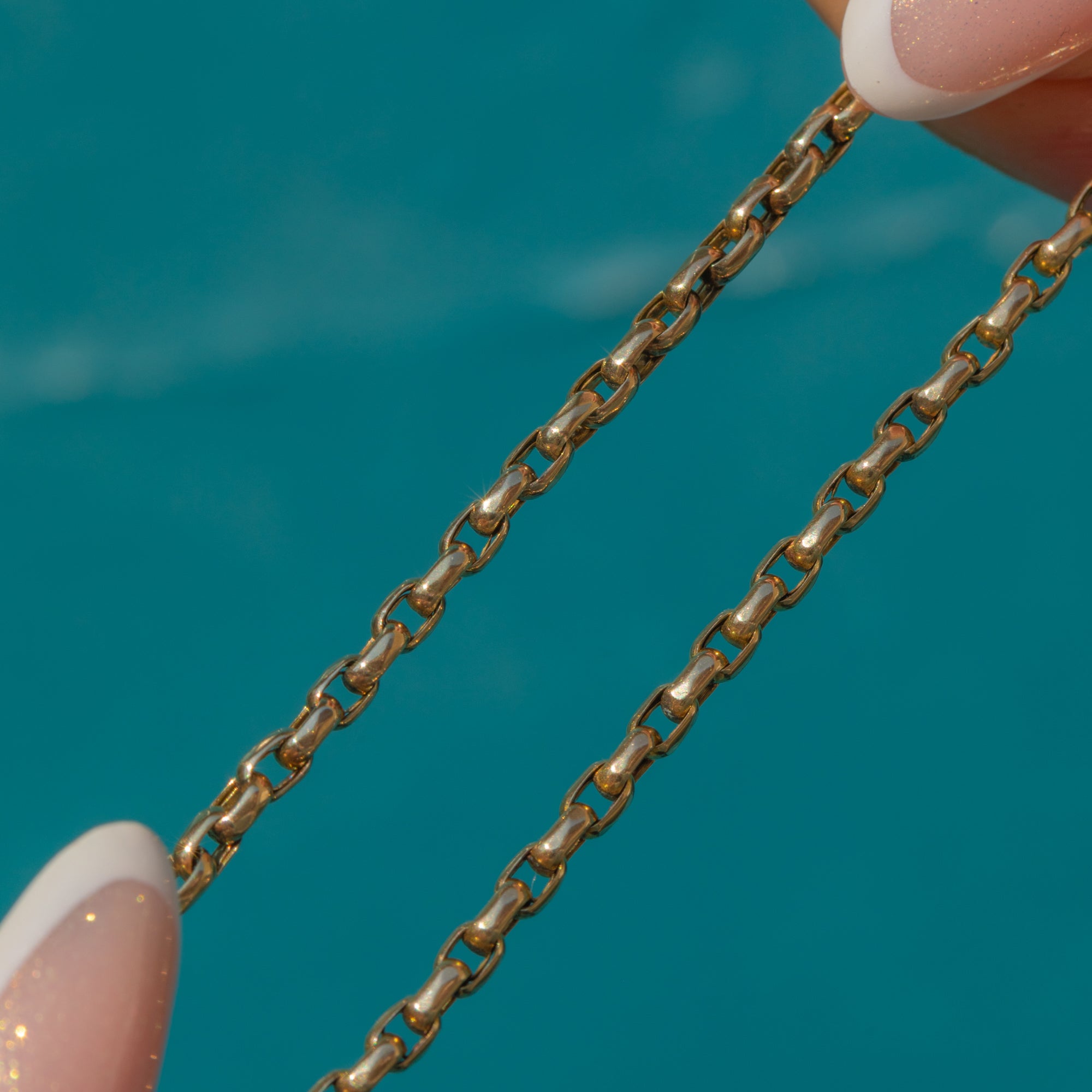 Add a slice of luxury to your attire with this 9ct Gold belcher chain! The rectangular belcher links allow this antique chain to drape elegantly across your décolletage, with the buttery Gold catching the light beautifully.