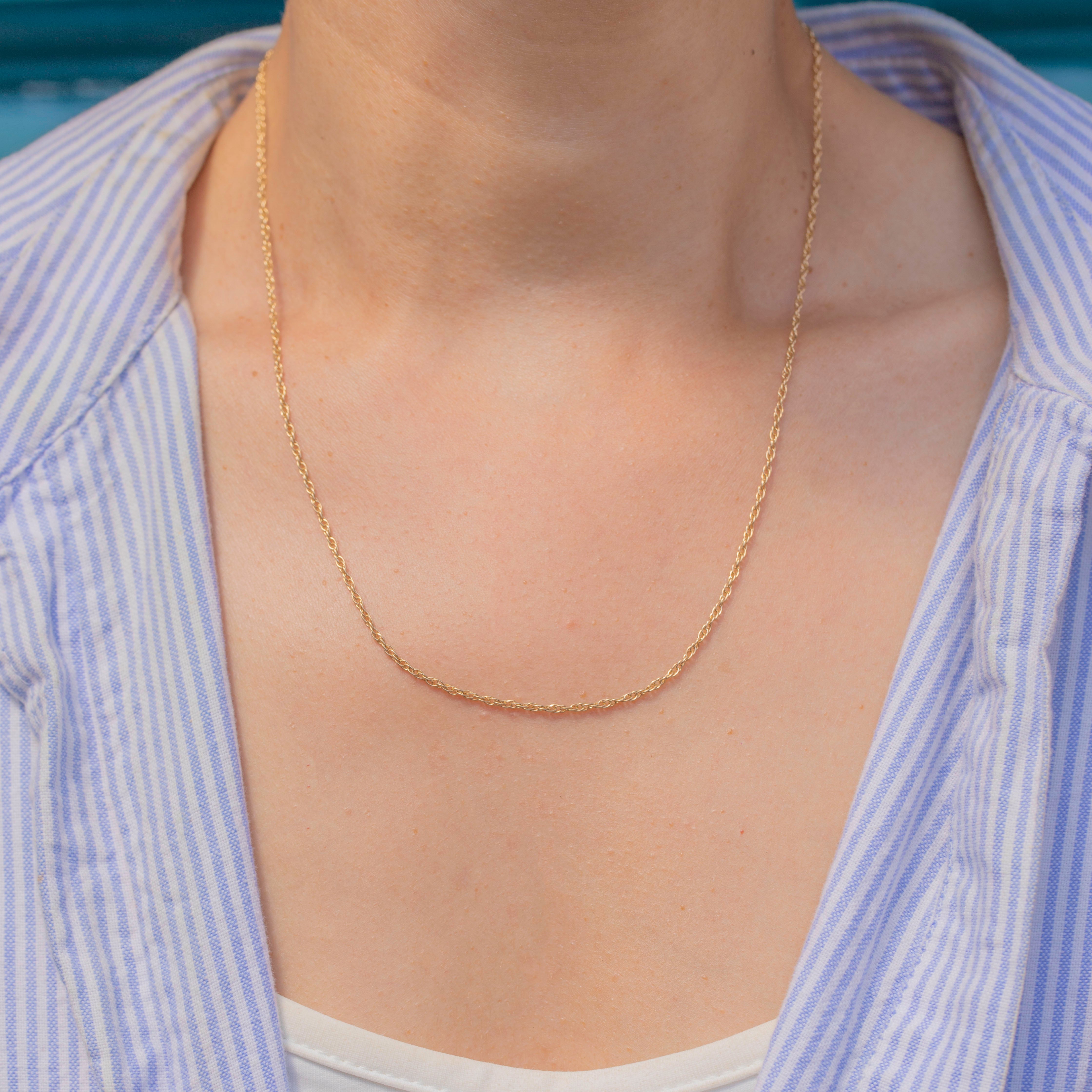 This splendid 18" 9ct Gold Prince of Wales chain is the perfect delicate addition to your neck stack; we simply love the way her twisted links glitter as the light hits them, shimmering with sunny hues!